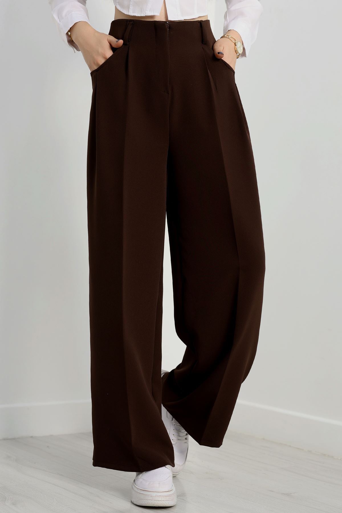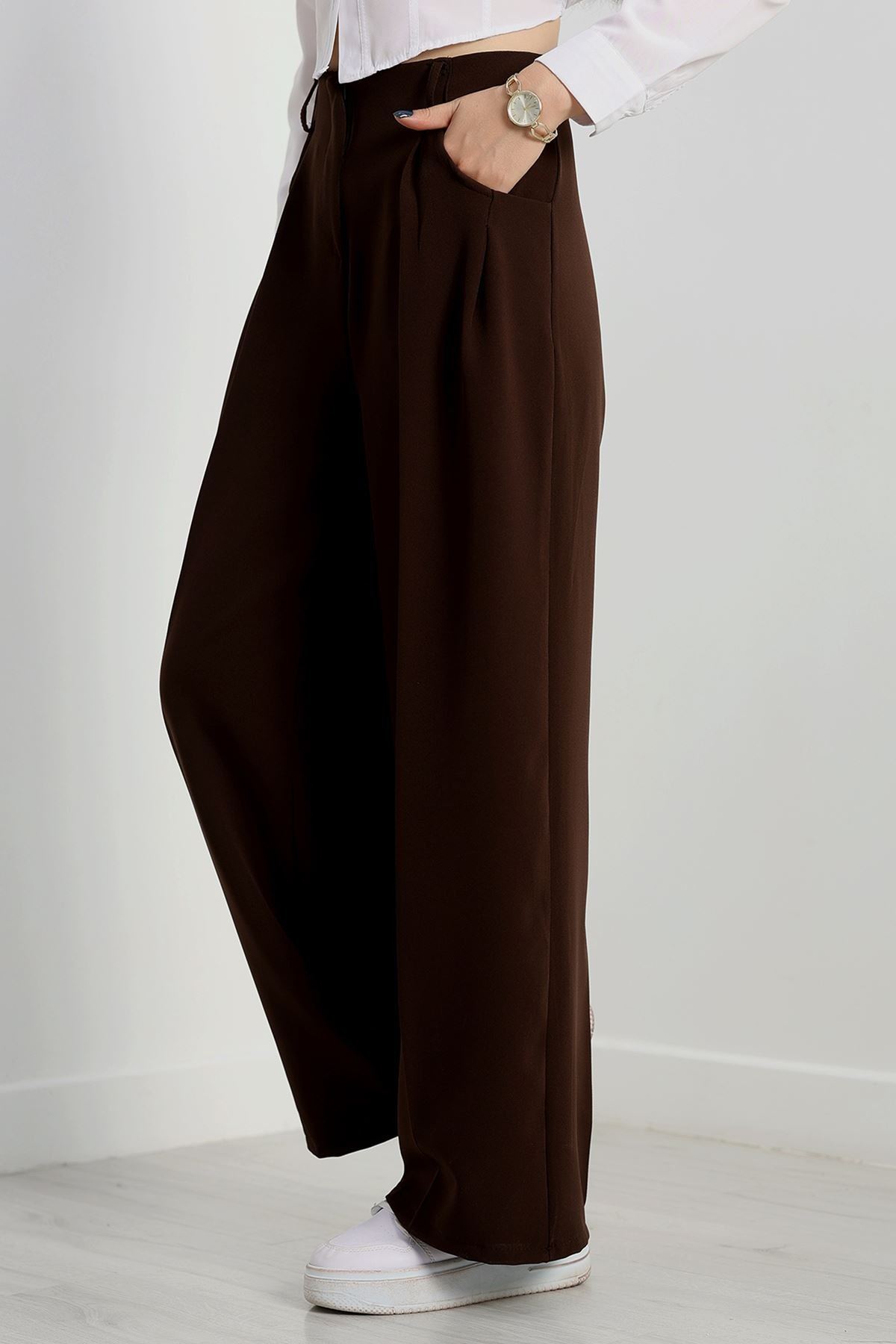 Cepten Pileli Palazzo Pantolon Koyukahve - 90113.1397.