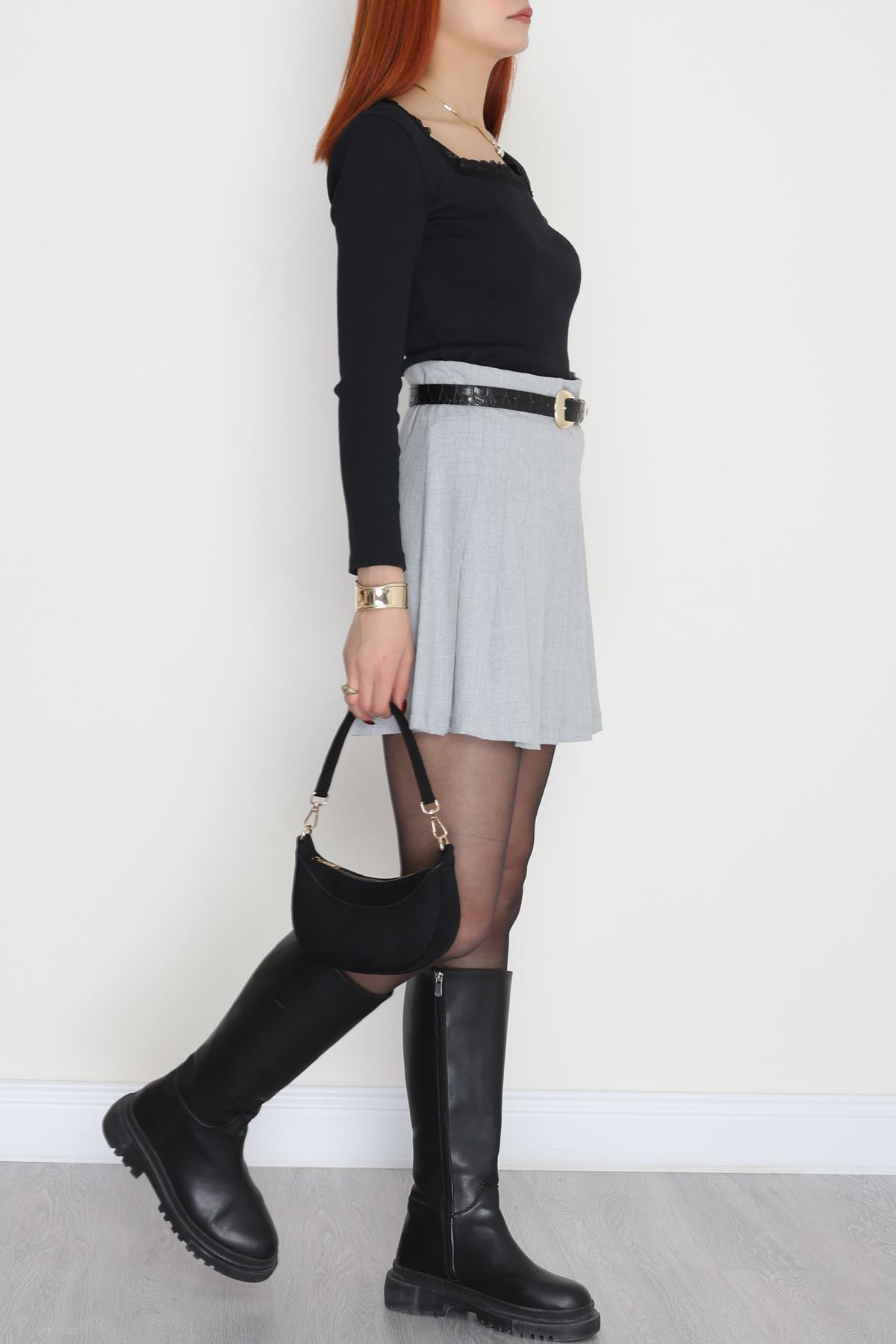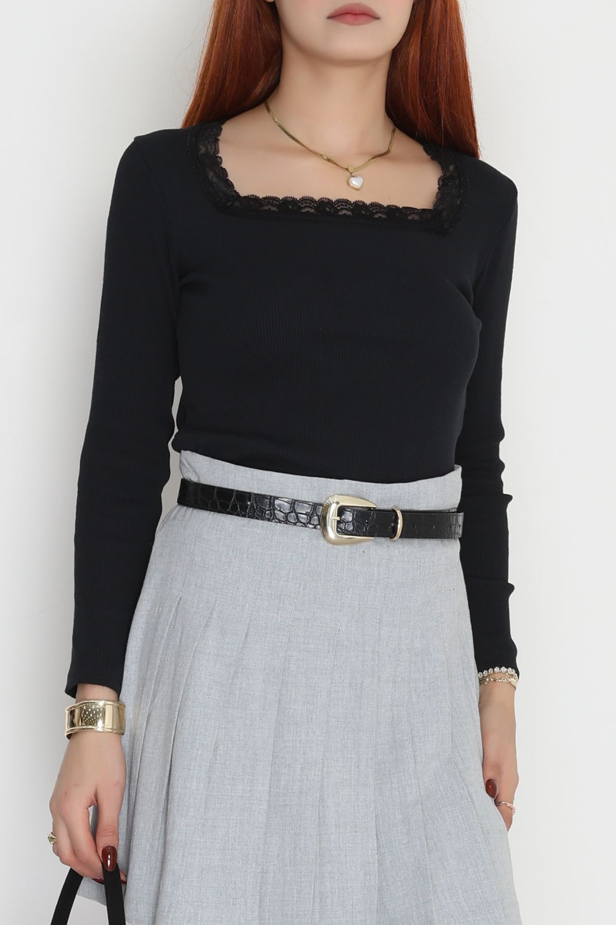Çerçeve Yaka Dantelli Kaşkorse Body Siyah - 70789.599.