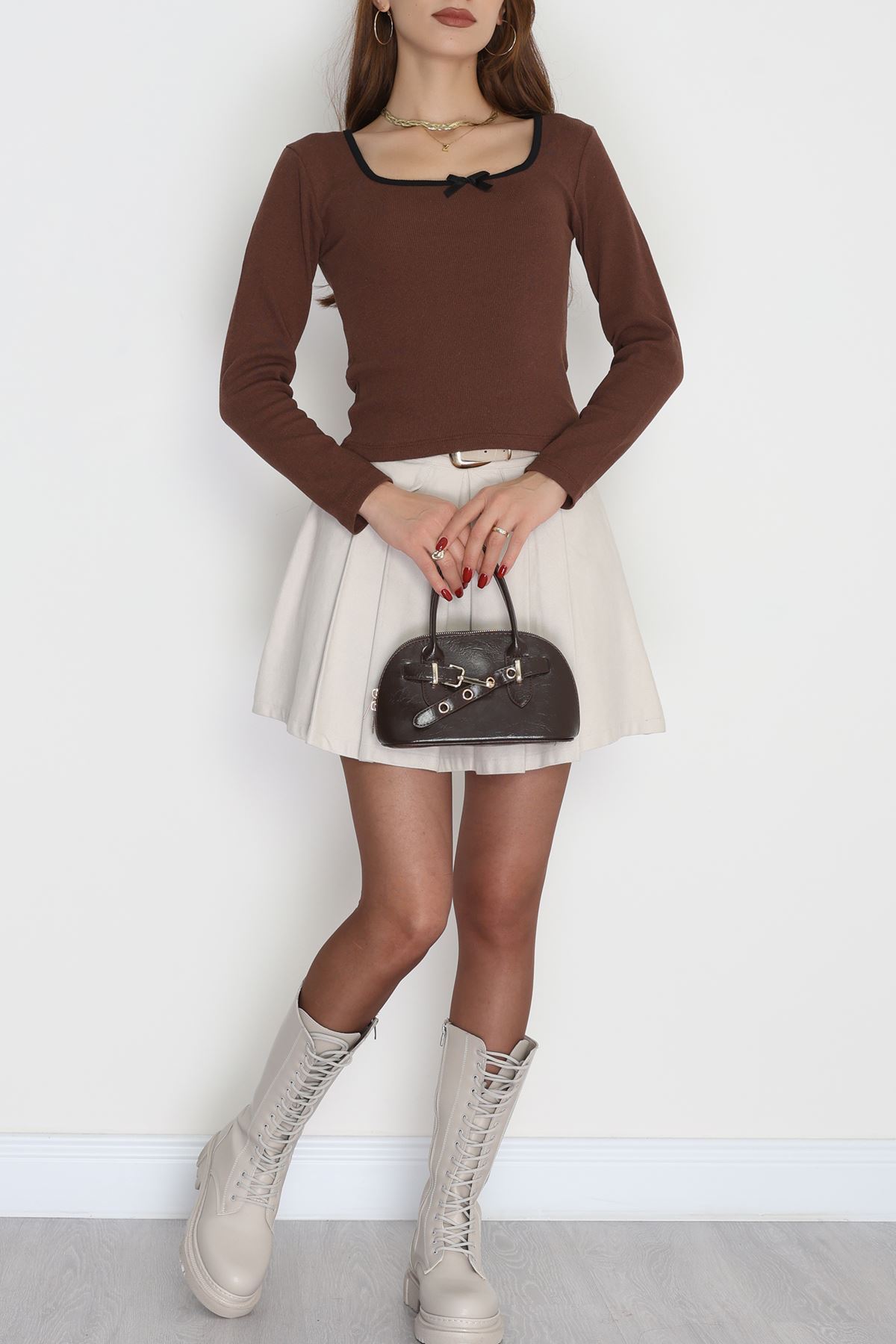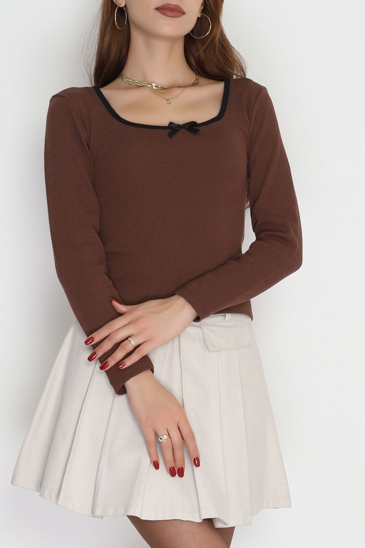 Çerçeve Yaka Fiyonk Detay Kaşkorse Body Kahve - 70786.599.