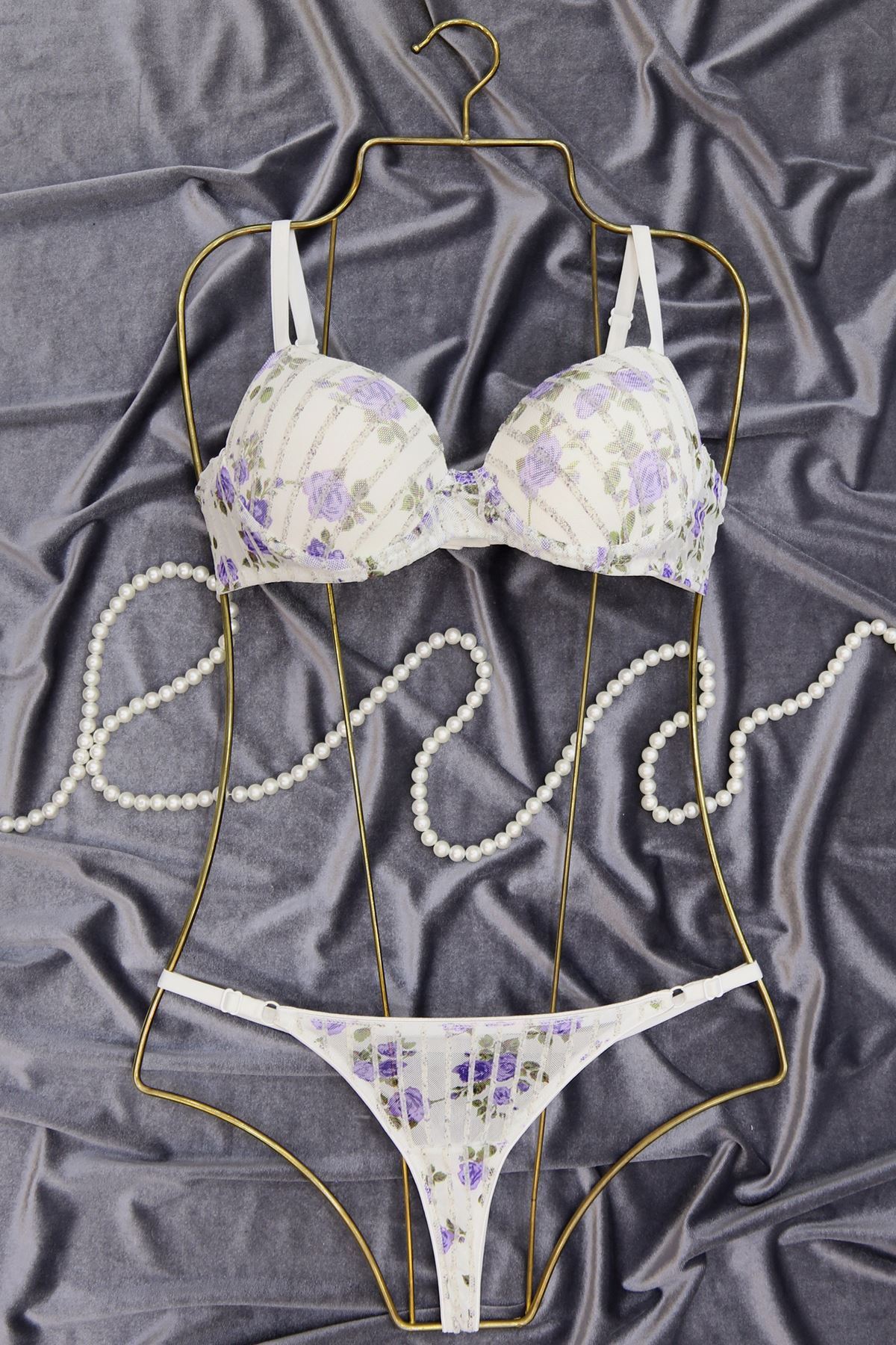 Çiçek Desen Sütyen Takım Dolgulu Pembe - 2561.1783.