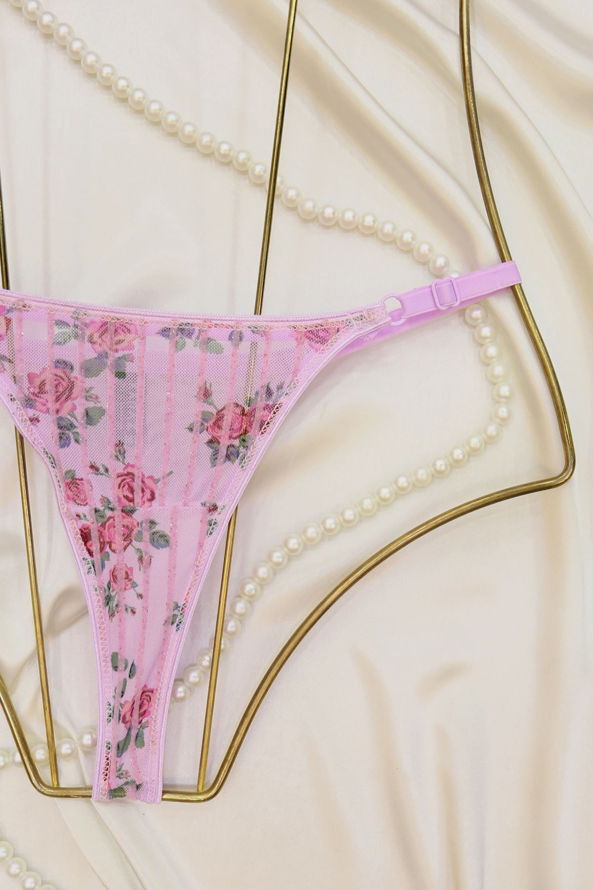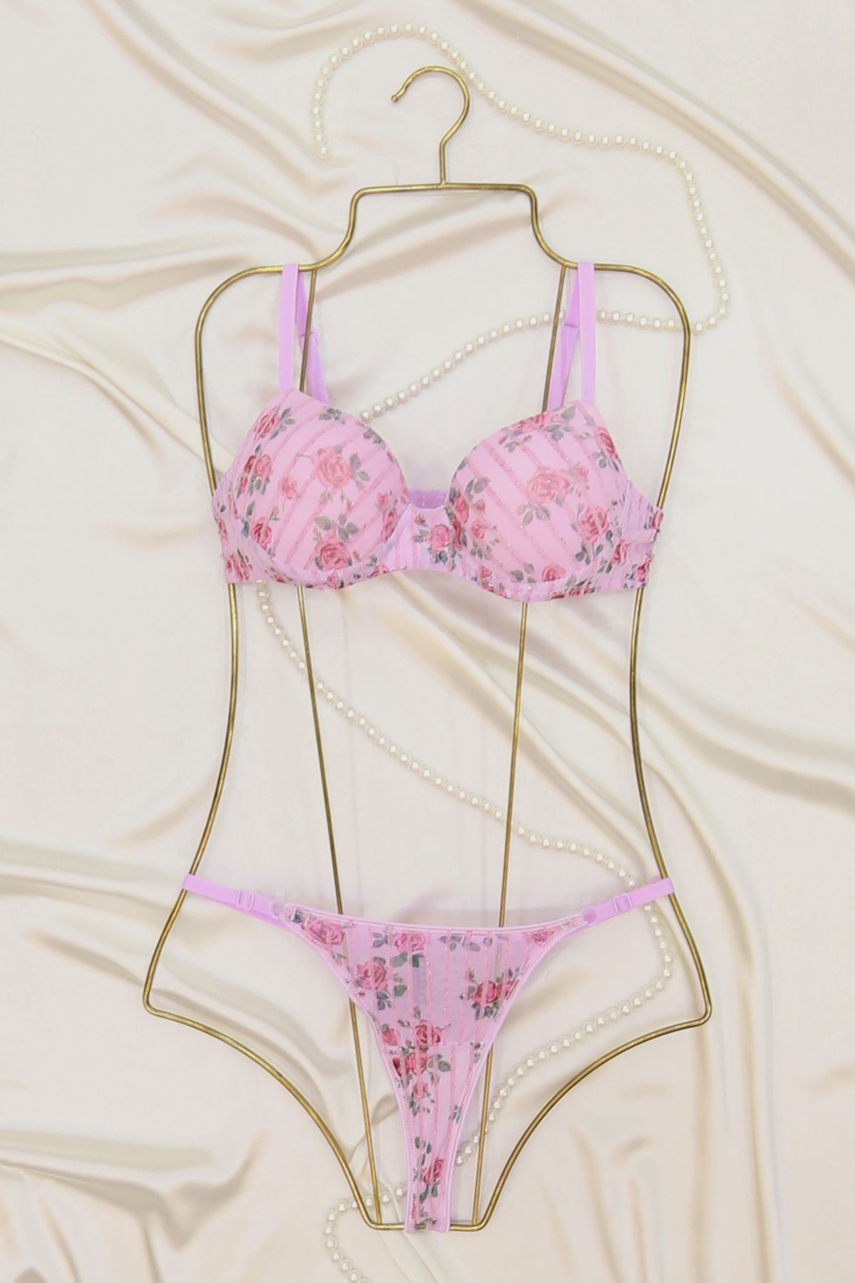 Çiçek Baskılı Dikine Filok Çizgili Takım Dolu Lila - 2565.1783.