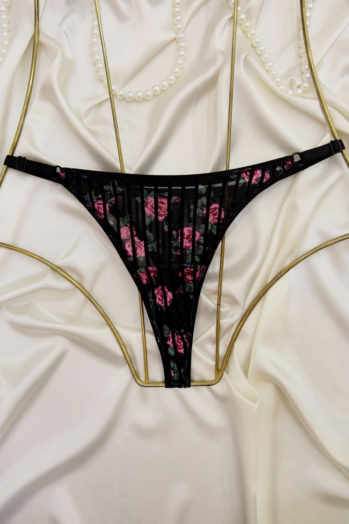 Çiçek Baskılı Dikine Flok Çizgili Takım Dolu Siyah - 2565.1783.