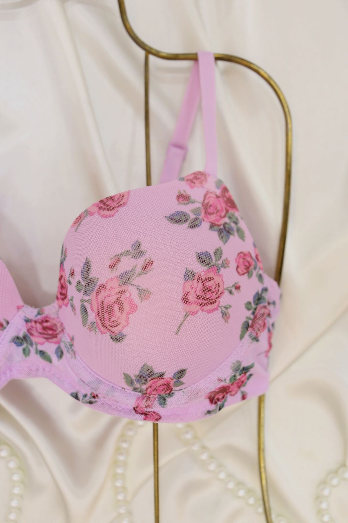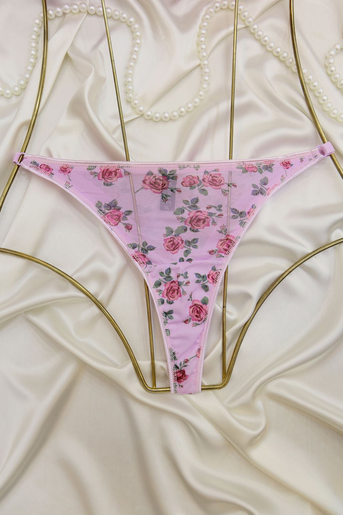Çiçek Baskılı Tül Takım Boş Kap Pembe - 2563-B.1783.