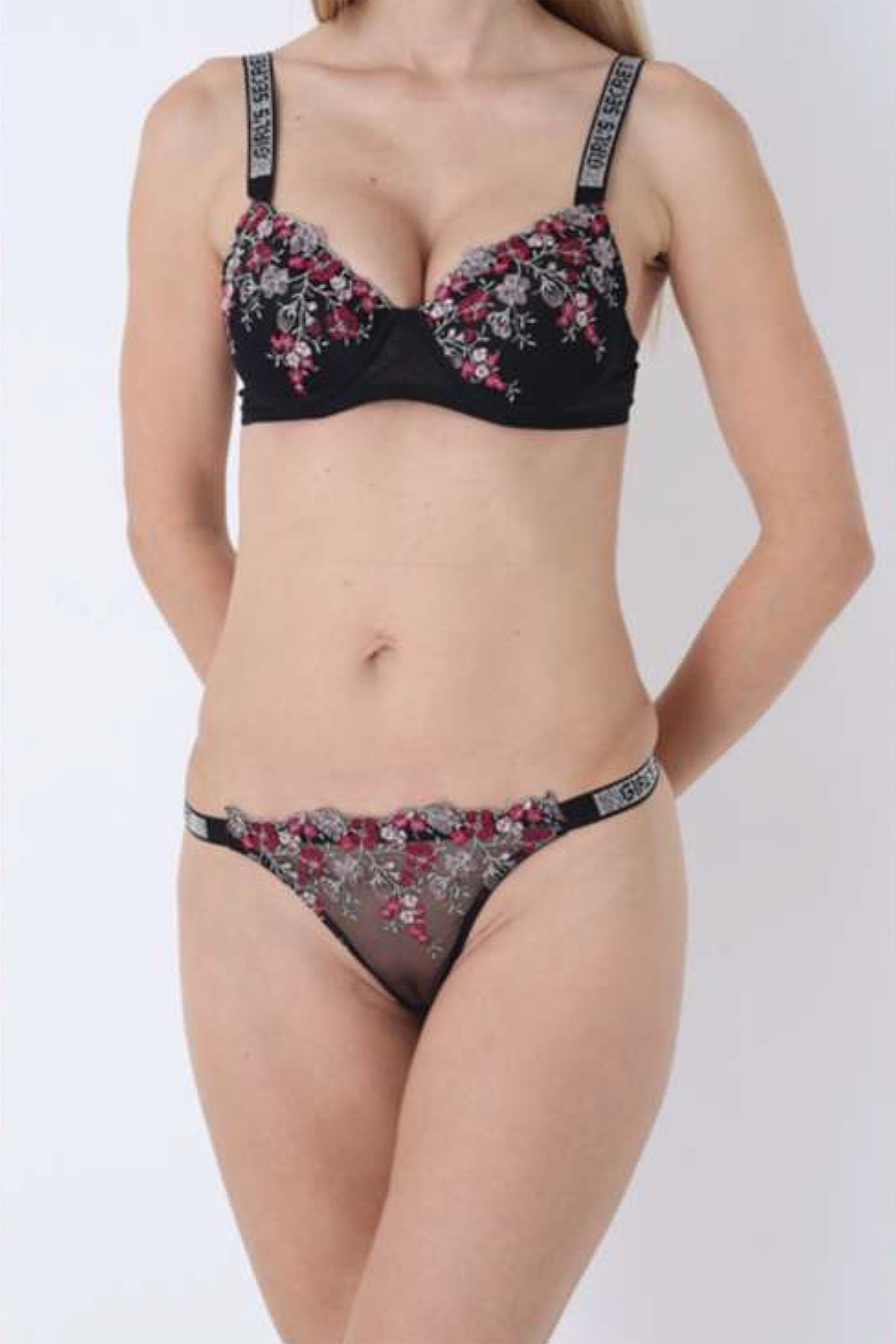 Çiçek Desen Sütyen Takım Dolgulu Siyah - 2561.1783.
