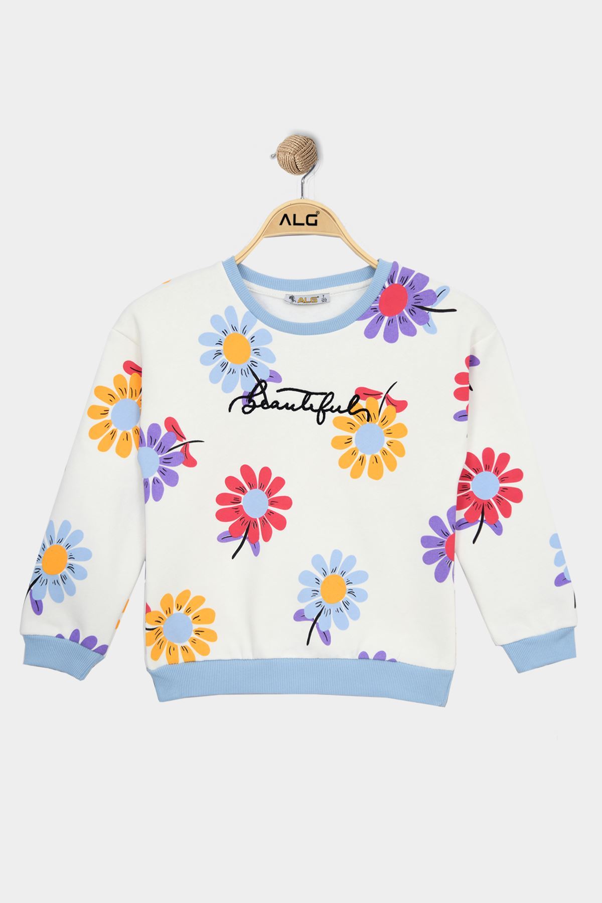 Çiçek Desenli 3 İp Şardonlu 3-7 Yaş Sweat Beyazmavi - 625412.1576.