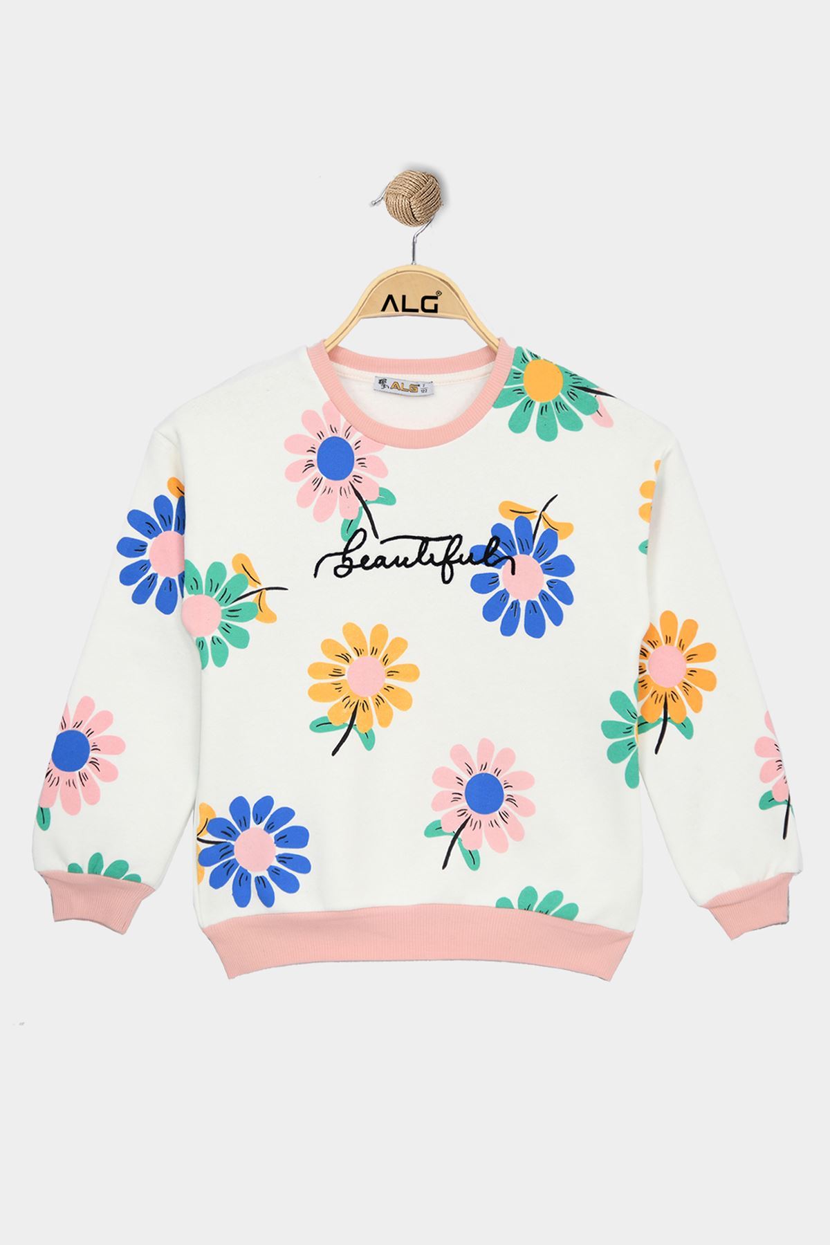 Çiçek Desenli 3 İp Şardonlu 3-7 Yaş Sweat Beyazpudra - 625412.1576.