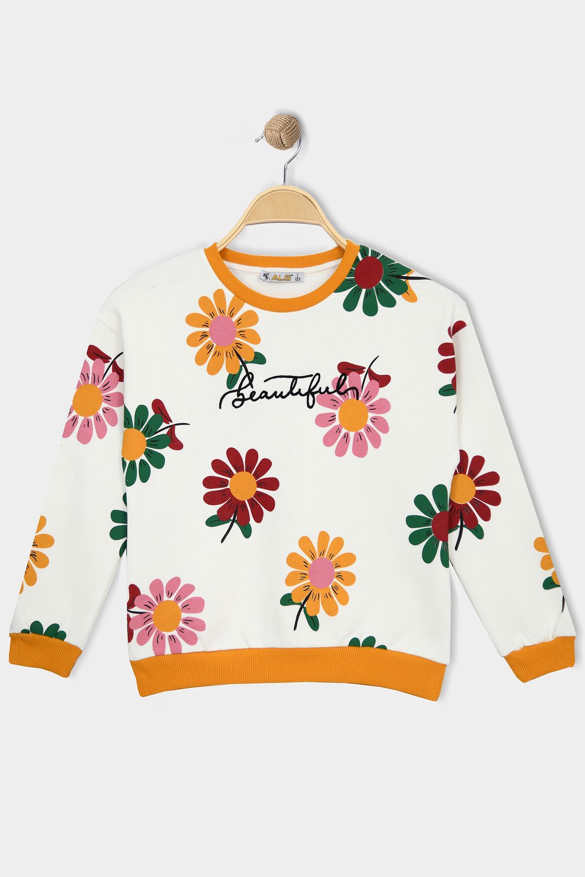 Çiçek Desenli 3 İp Şardonlu 3-7 Yaş Sweat Beyazsarı - 625412.1576.
