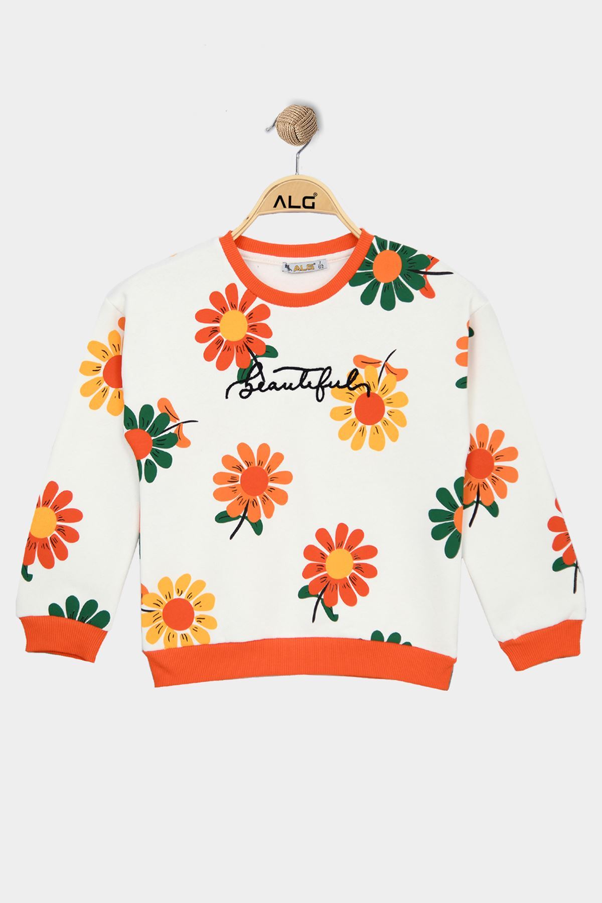 Çiçek Desenli 3 İp Şardonlu 3-7 Yaş Sweat Beyazturuncu - 625412.1576.