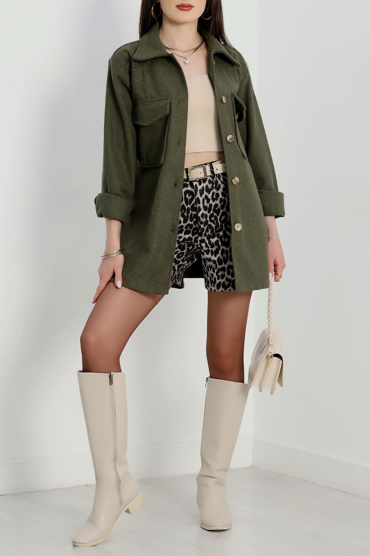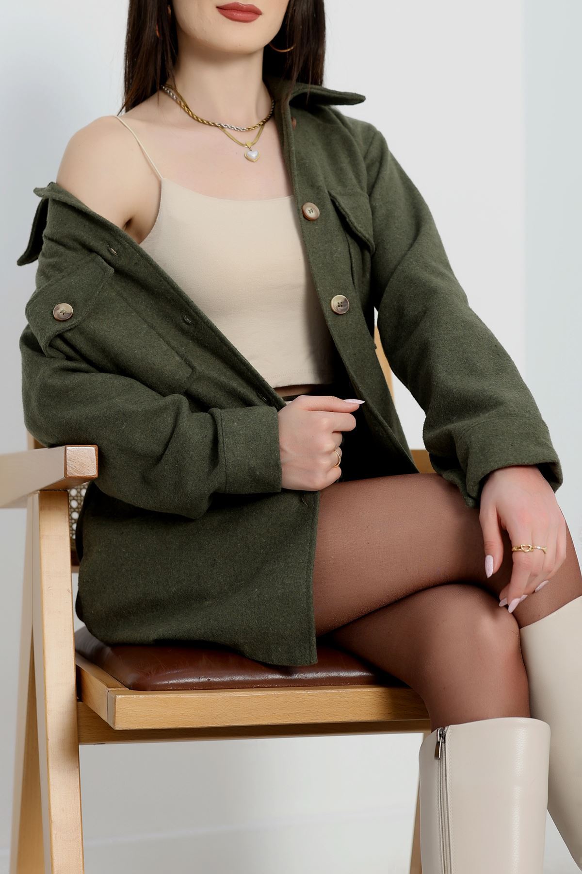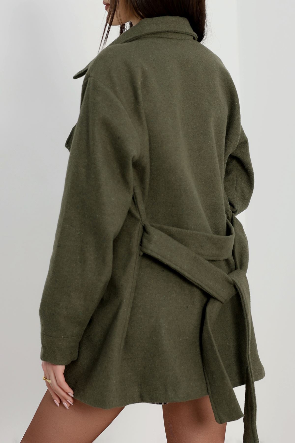 Çift Cepli Kuşaklı Tunik Gömlek Haki - 70991.1775.