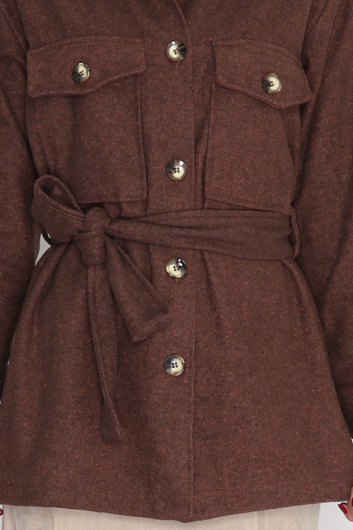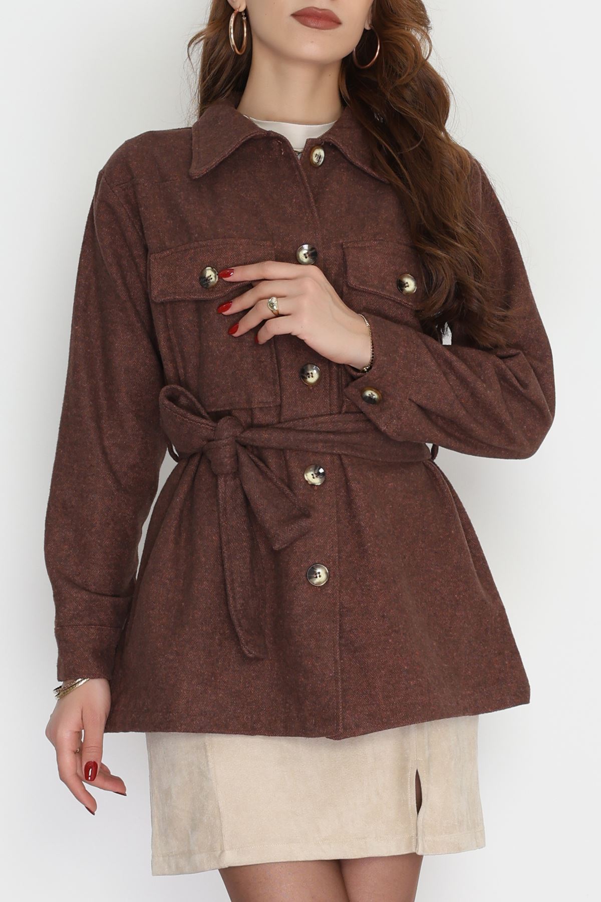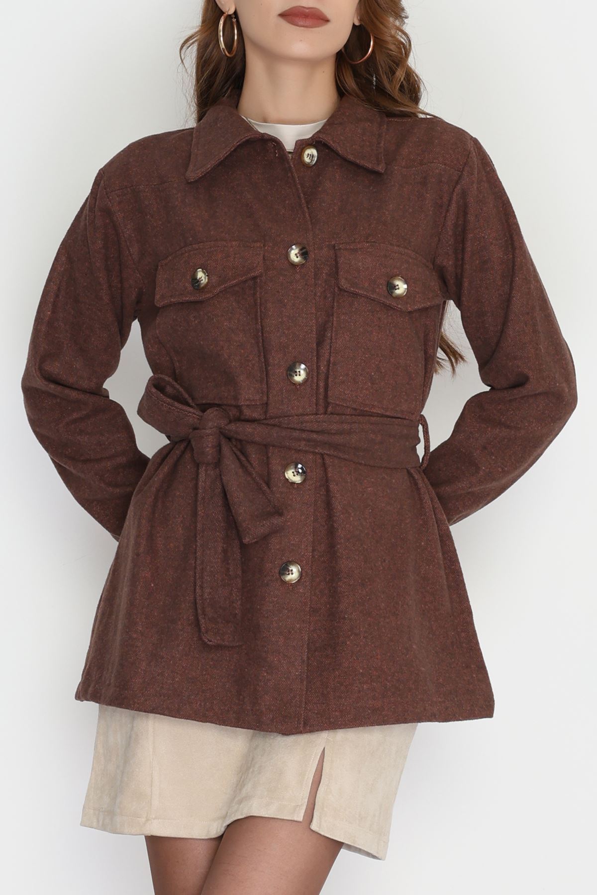 Çift Cepli Kuşaklı Tunik Gömlek Kahve - 70991.1775.