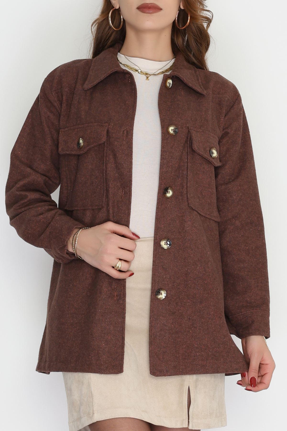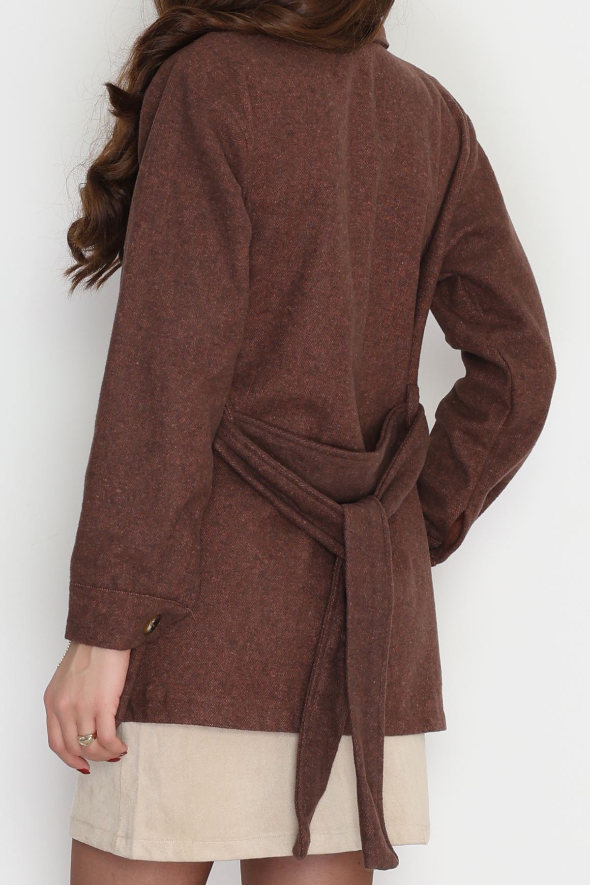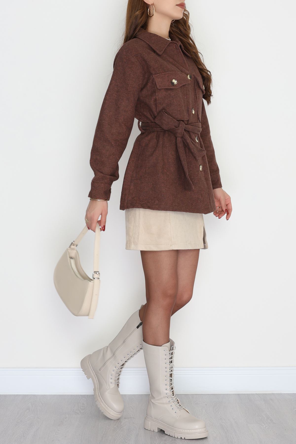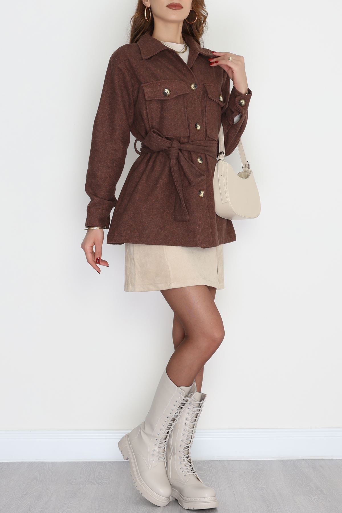 Çift Cepli Kuşaklı Tunik Gömlek Kahve - 70991.1775.