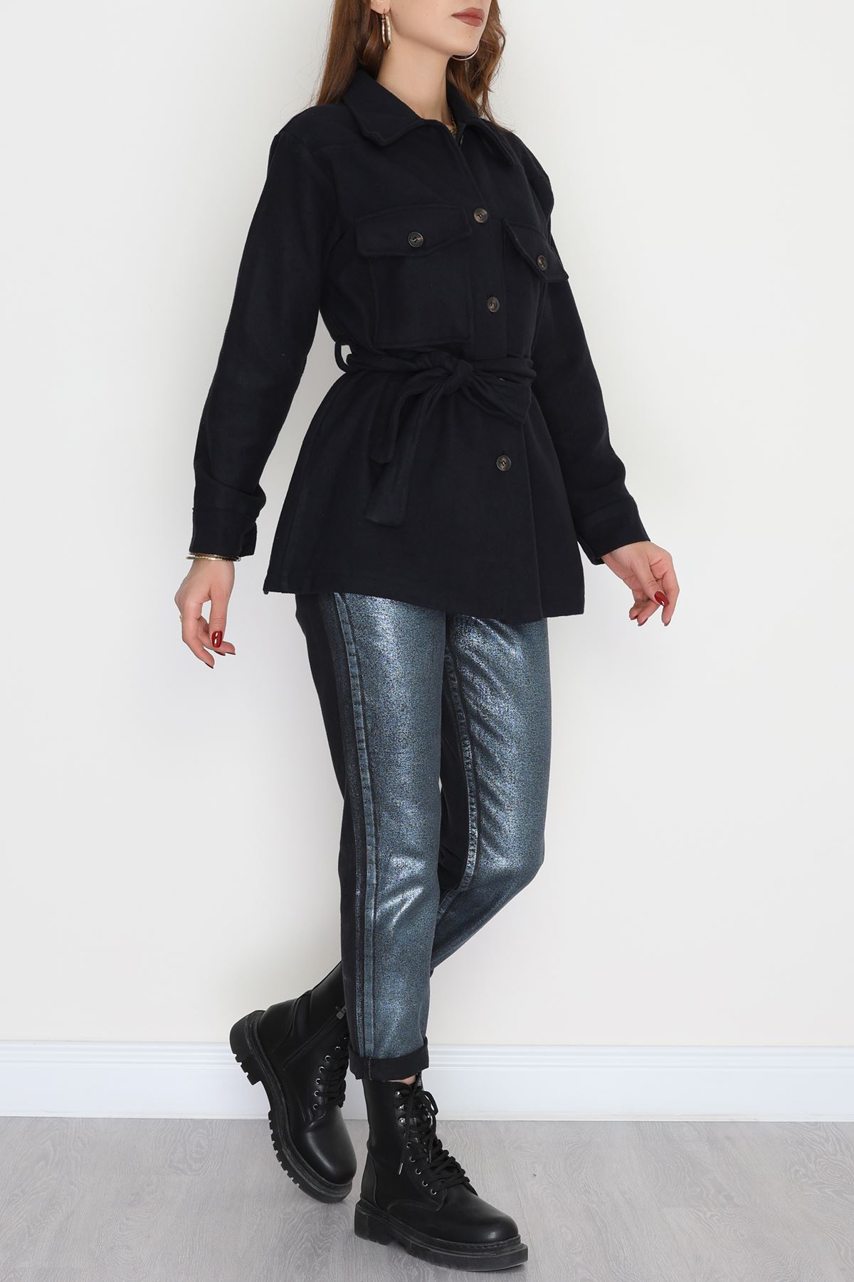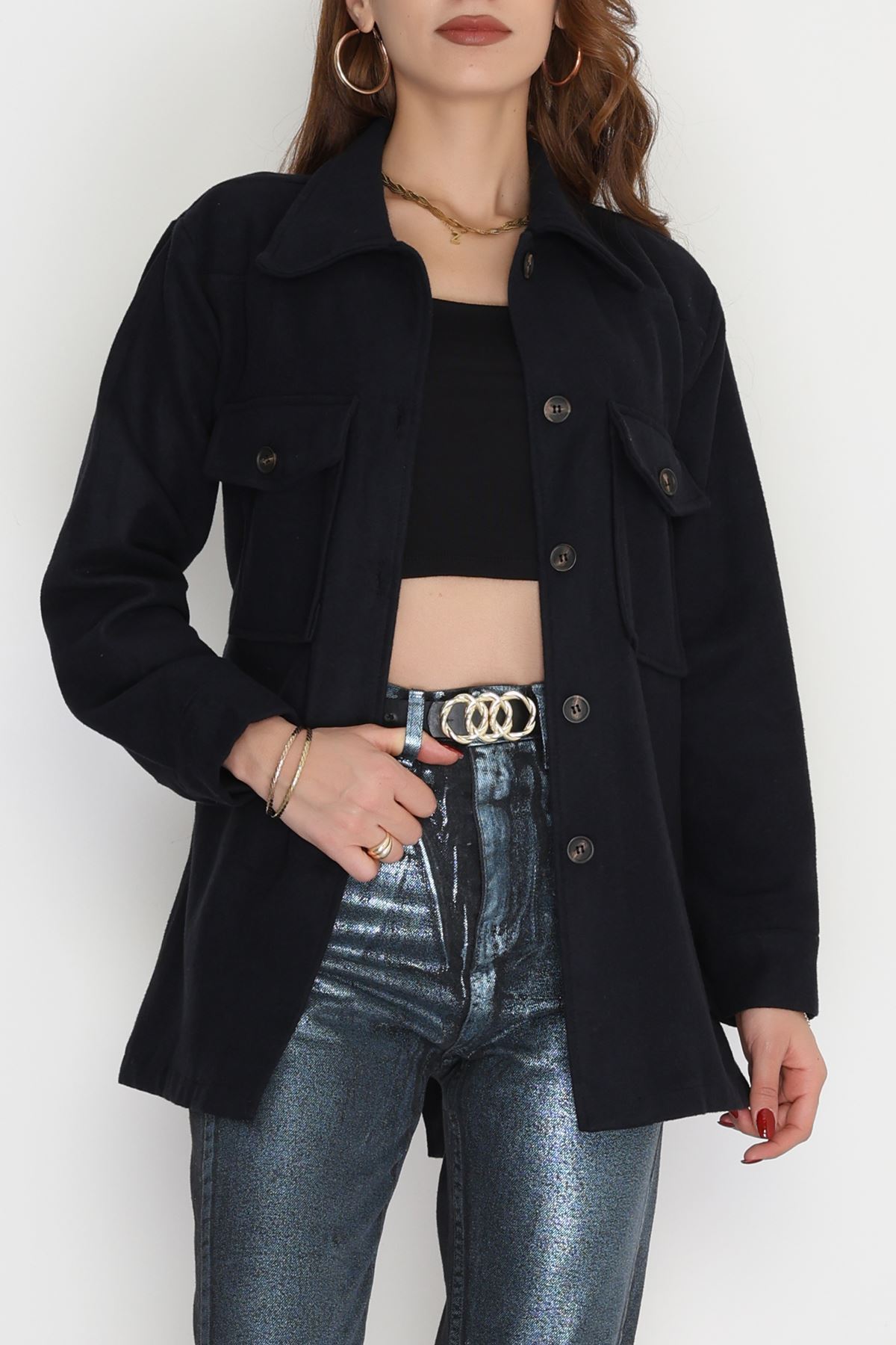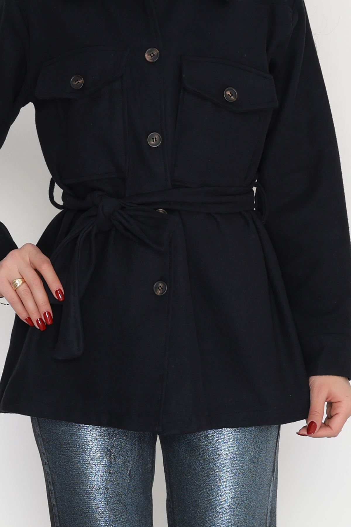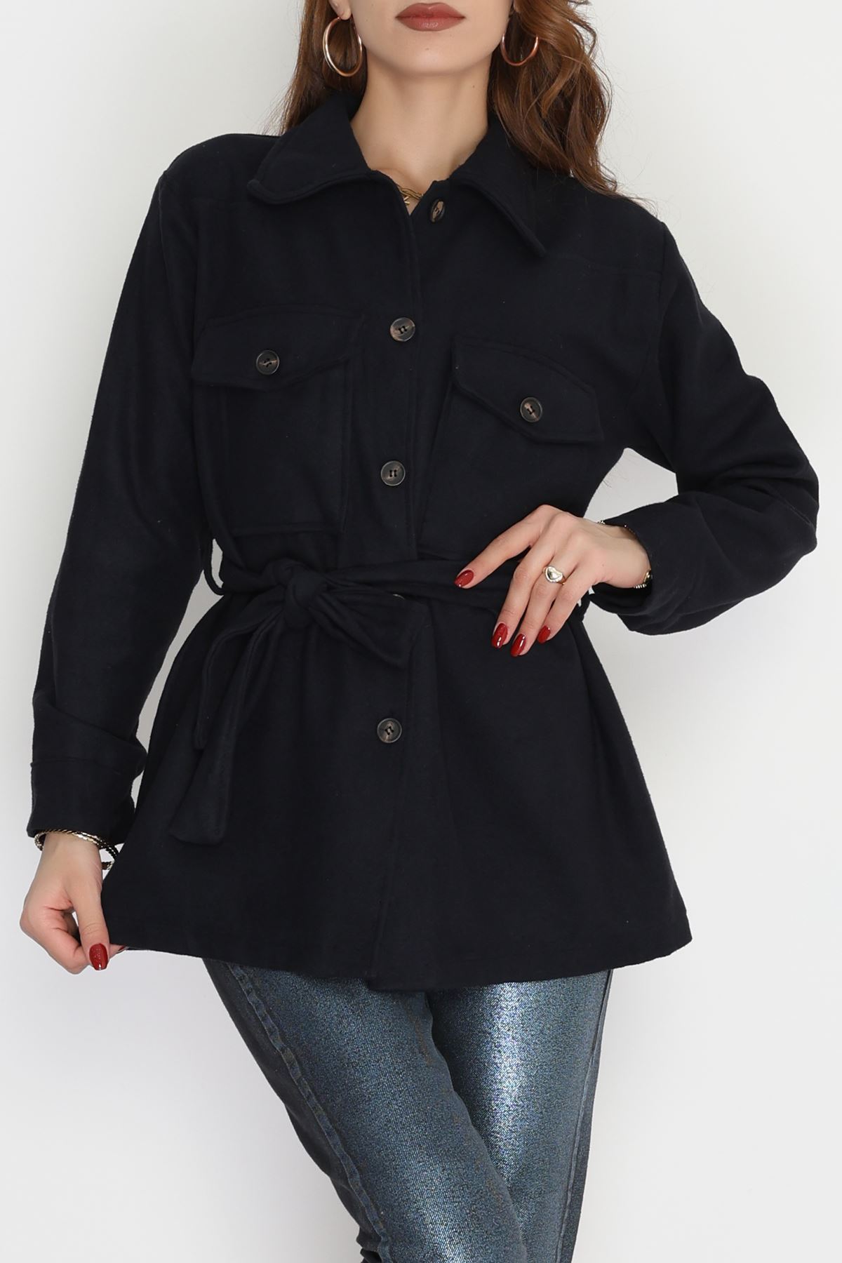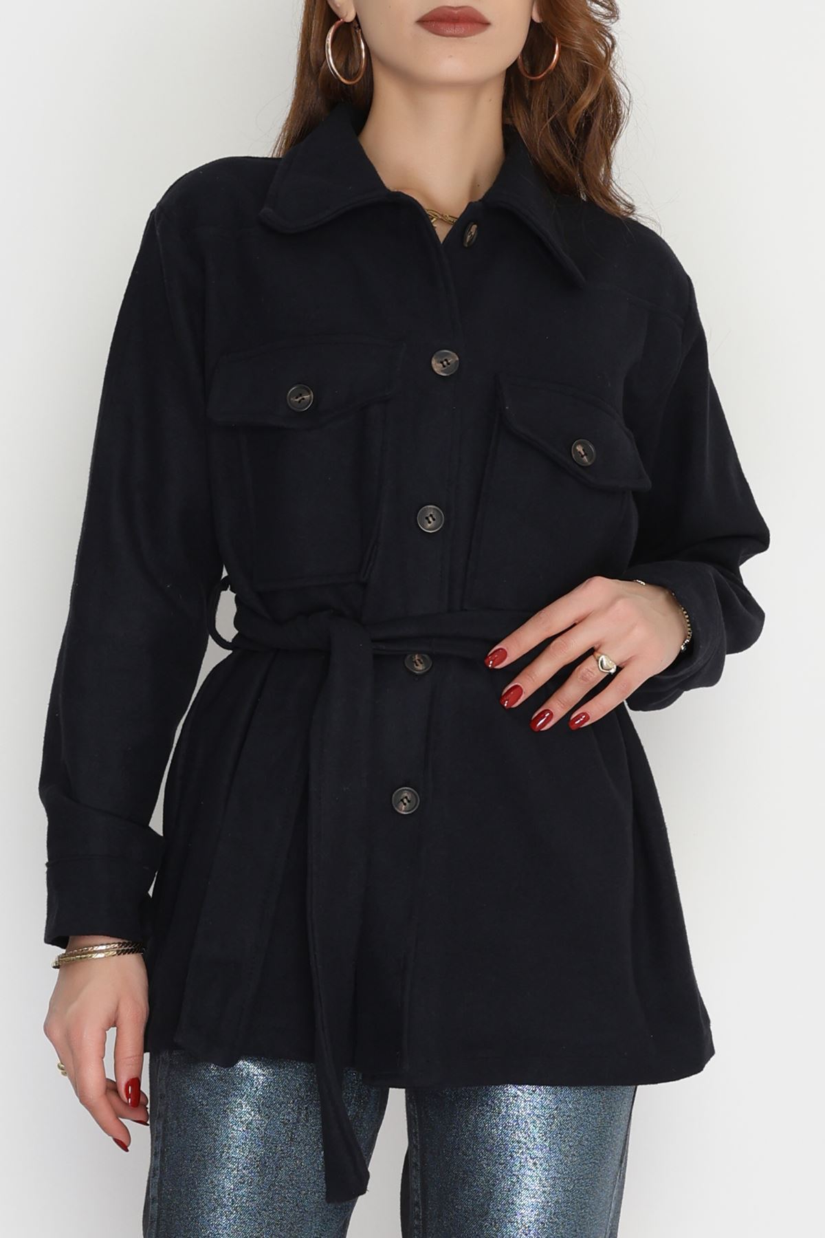 Çift Cepli Kuşaklı Tunik Gömlek Koyulacivert - 70991.1775.
