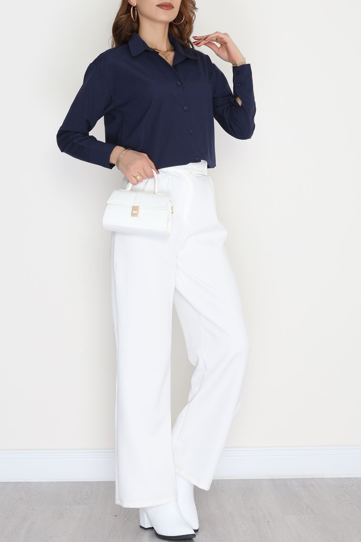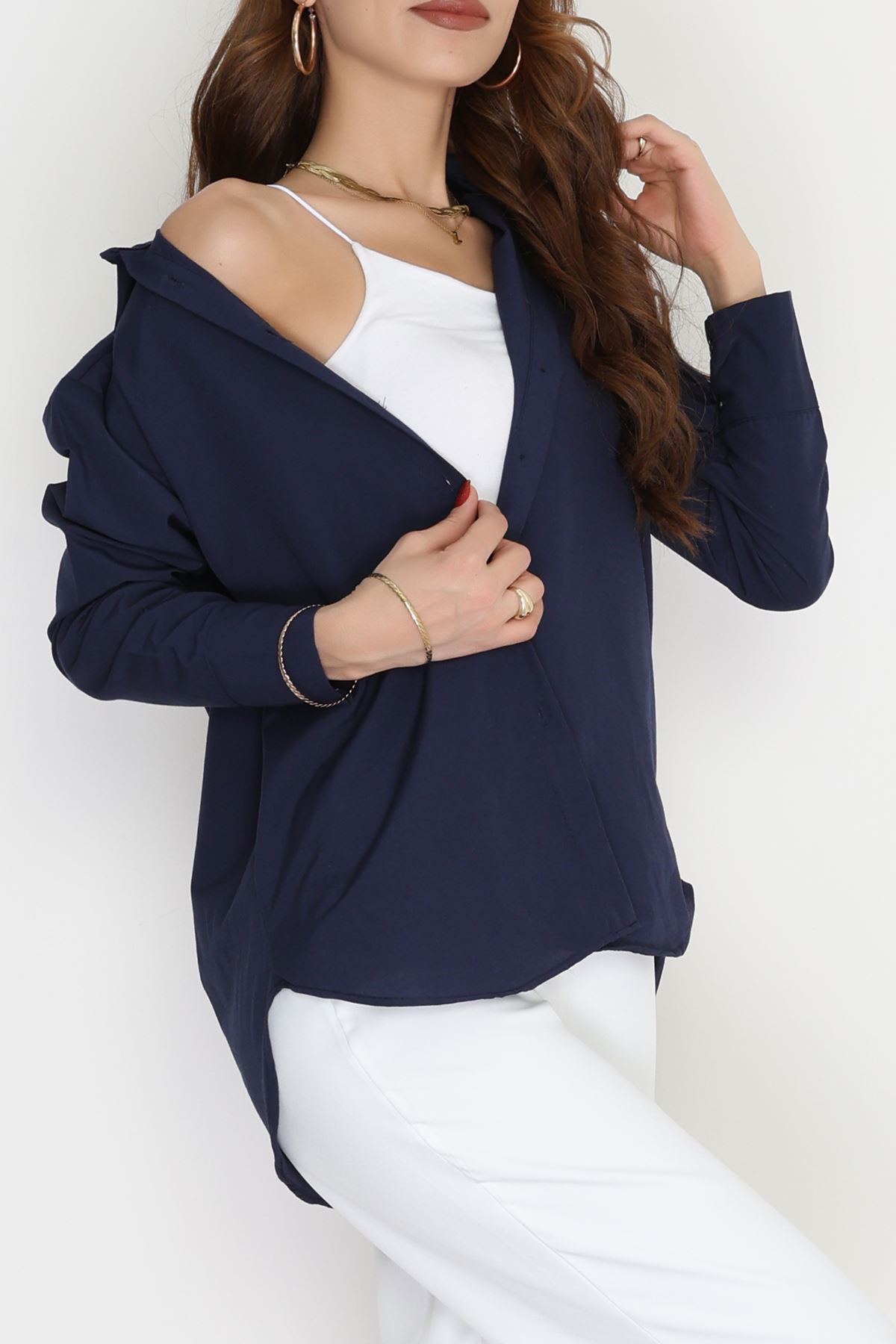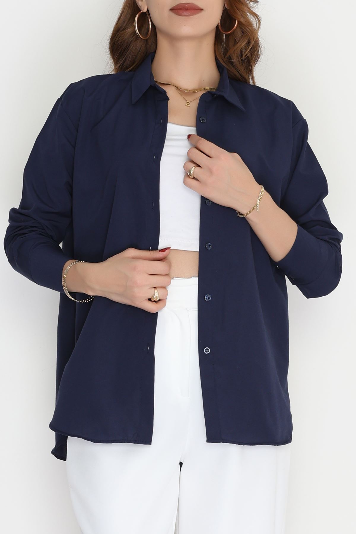 Çift Düğme Manşetli Terikoton Lacivert - 90157.1949.