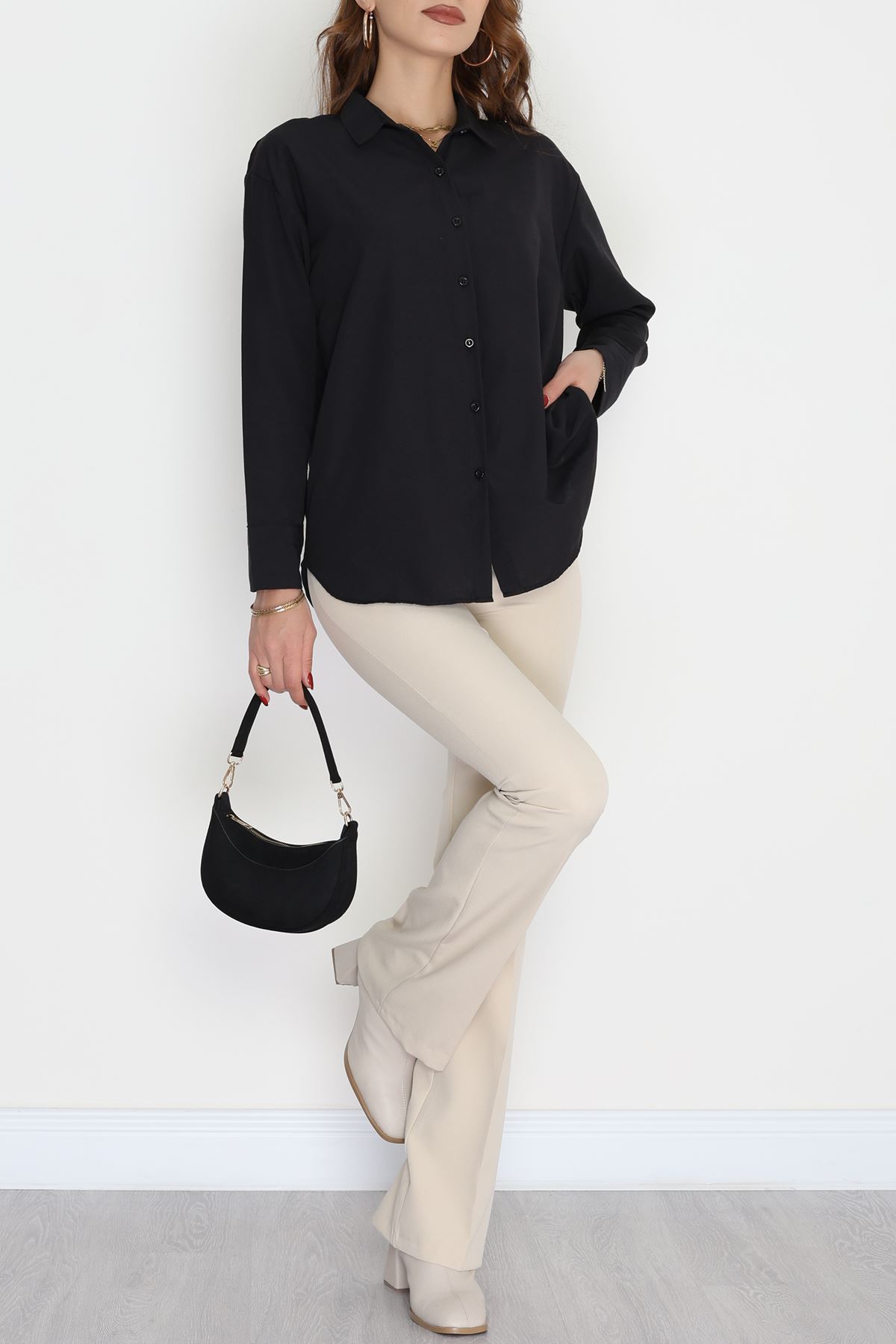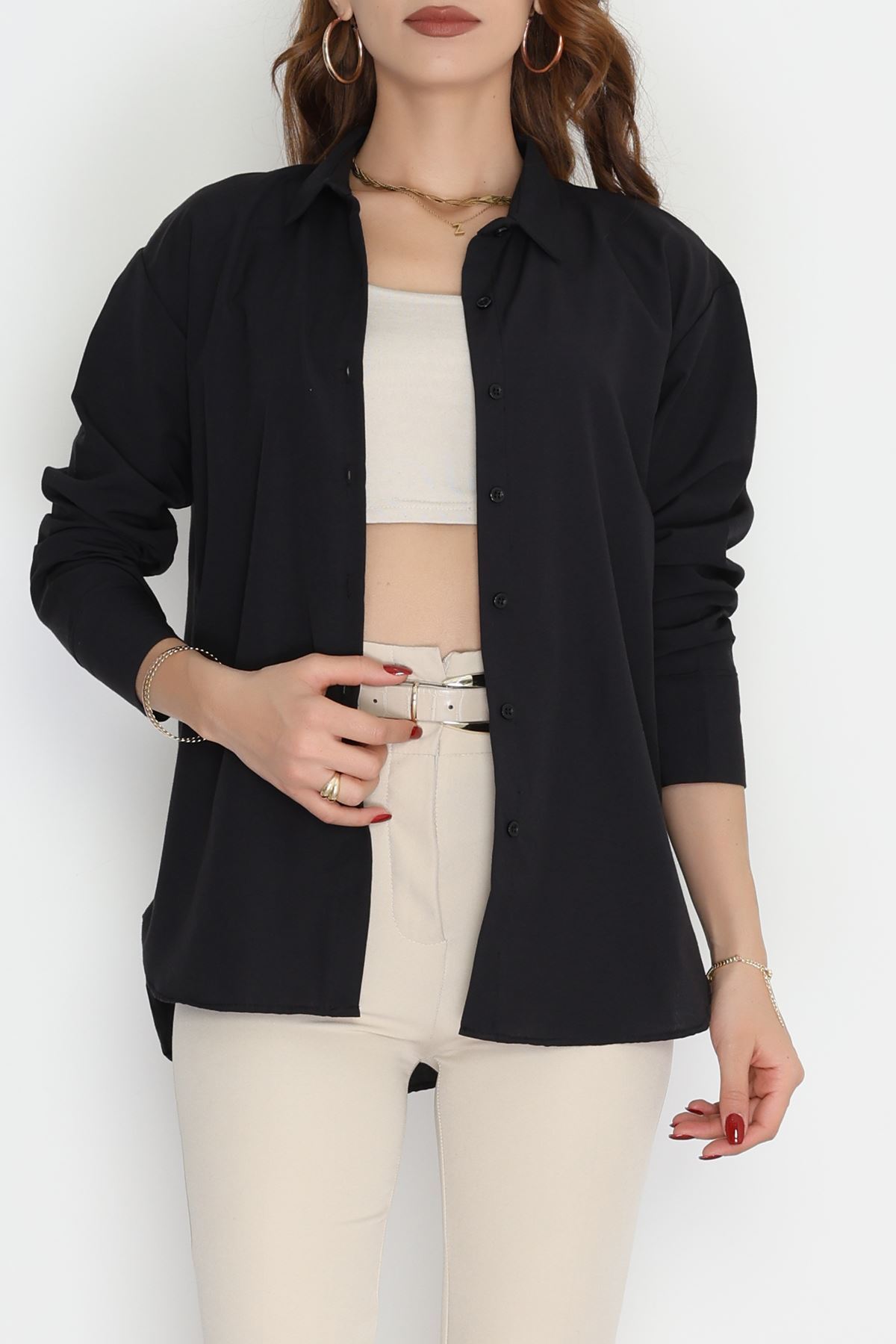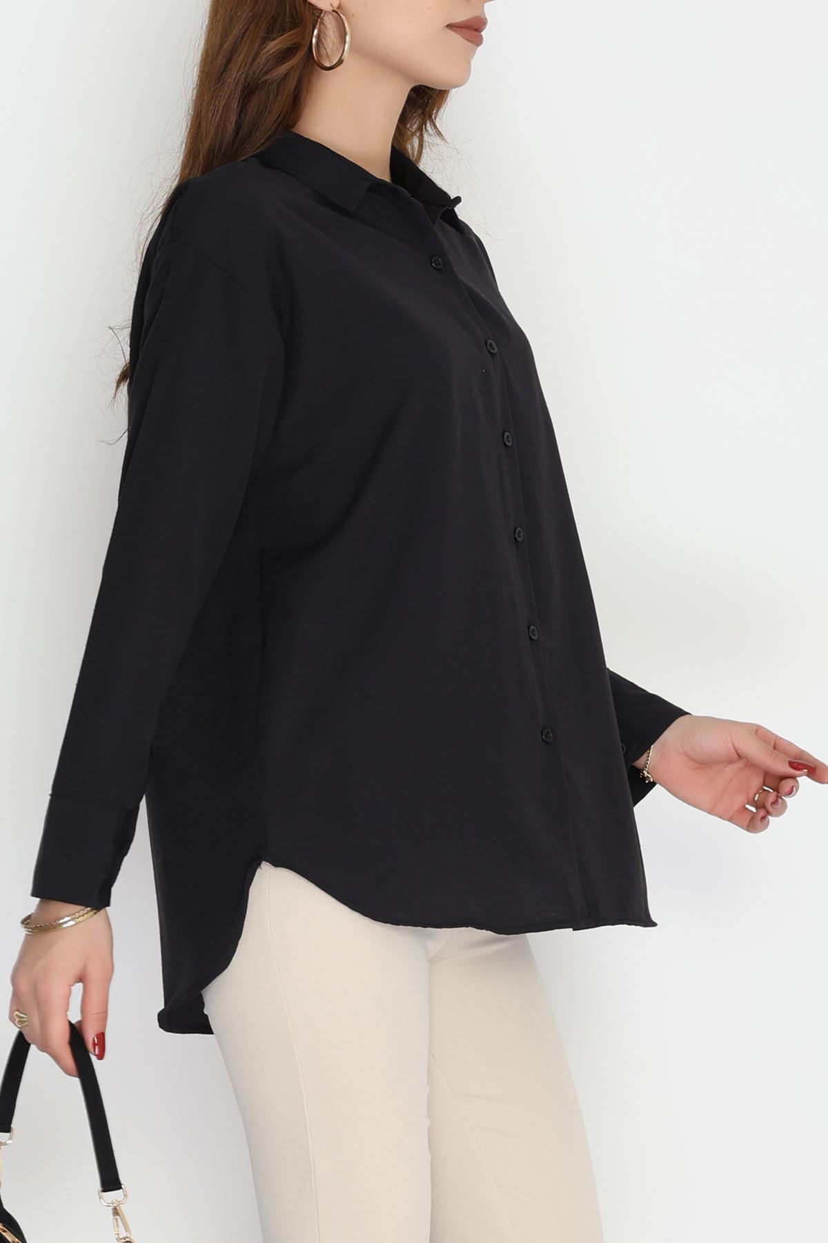 Teri Koton Gizli Düğmeli Kadın Gömlek Tunik Siyah - 90112.1949.