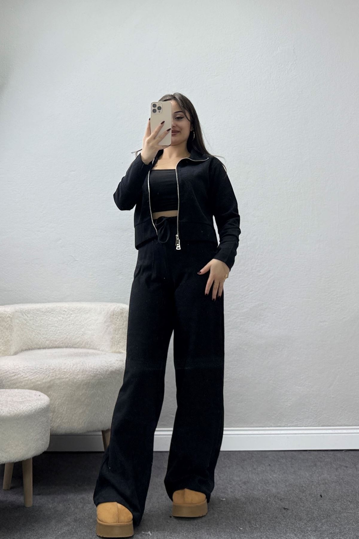 Fermuarlı Kapşonlu Selanik İkili Takım Siyah - 42639.1567.