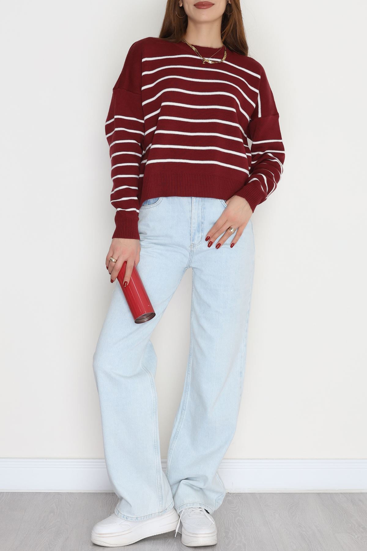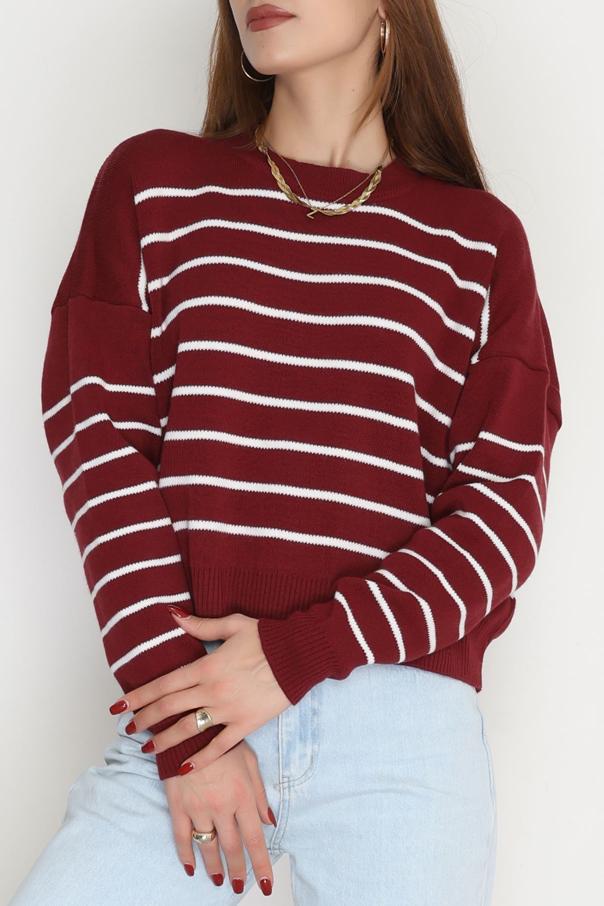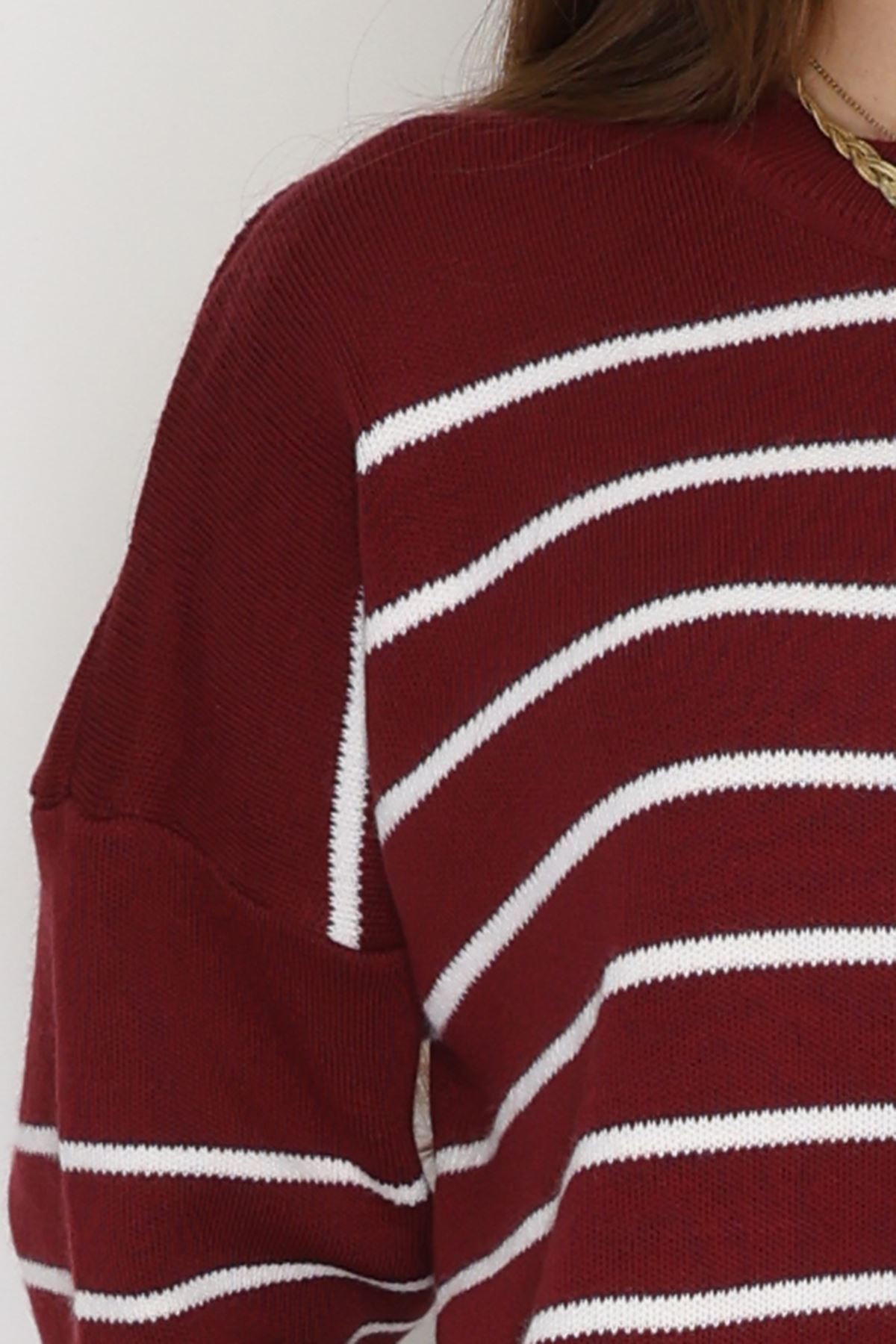 Çizgili Bisiklet Yaka Triko Bordolatte - 3099.1577.
