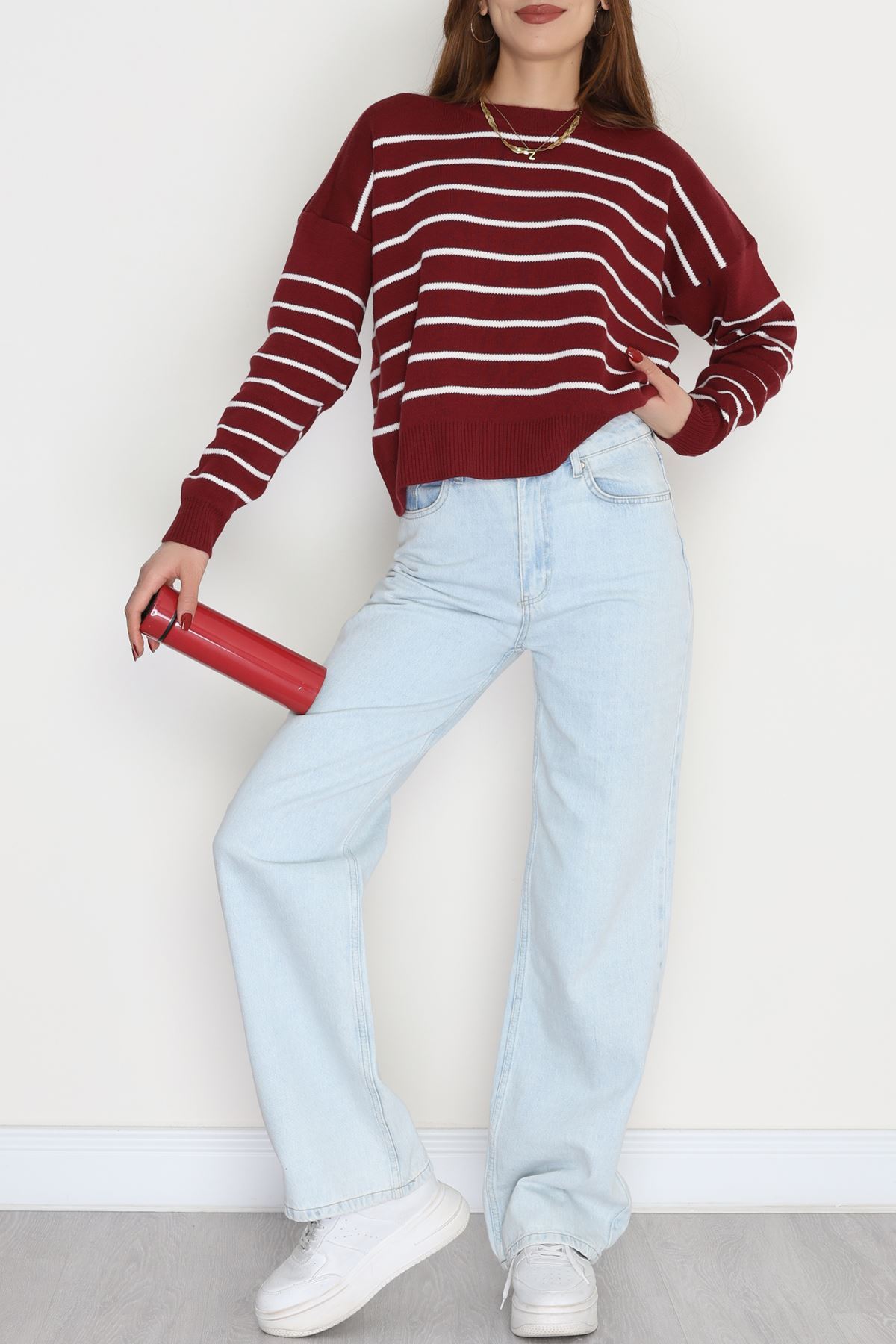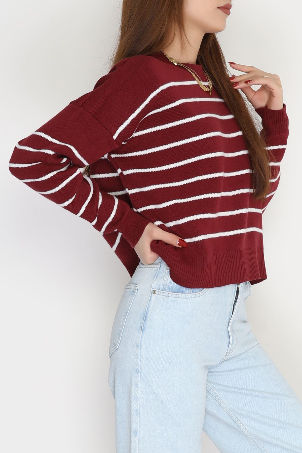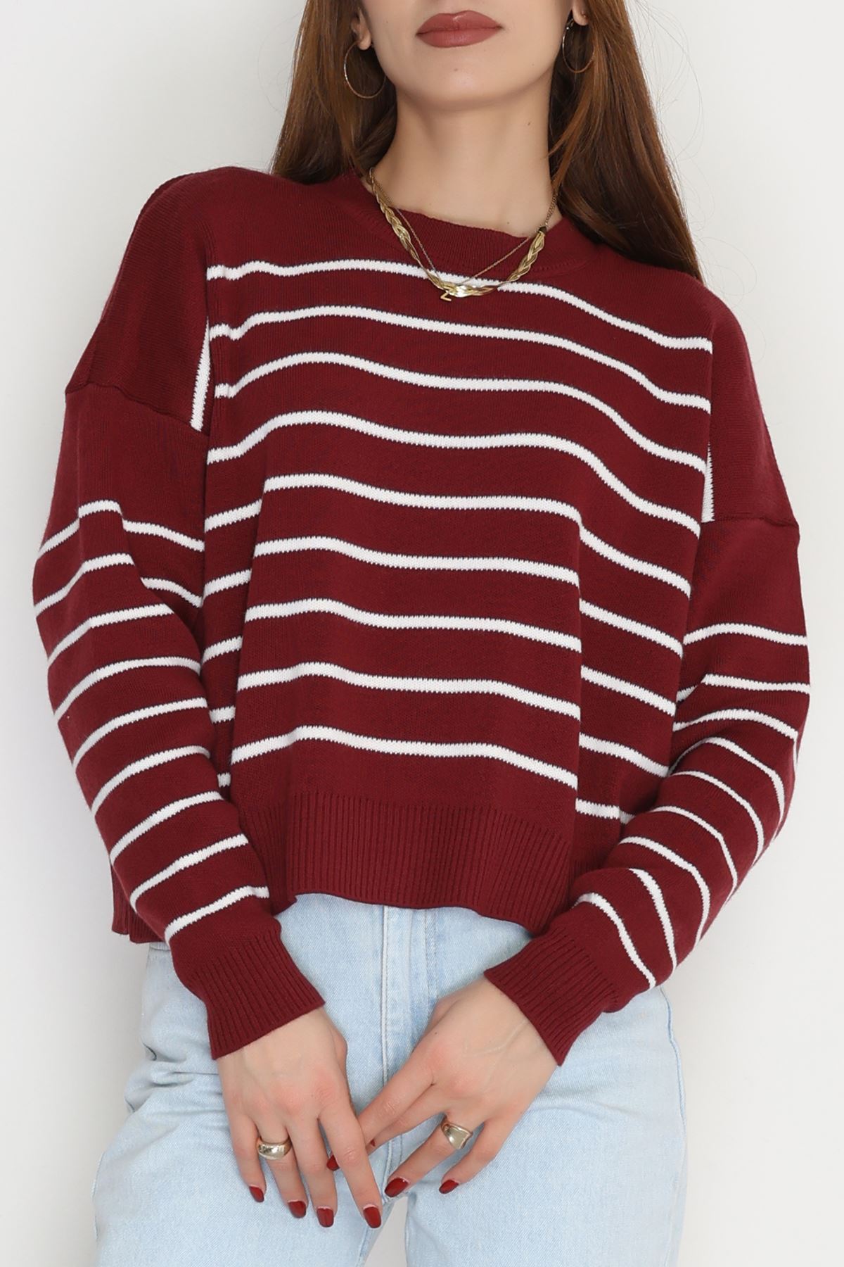 Çizgili Bisiklet Yaka Triko Bordolatte - 3099.1577.