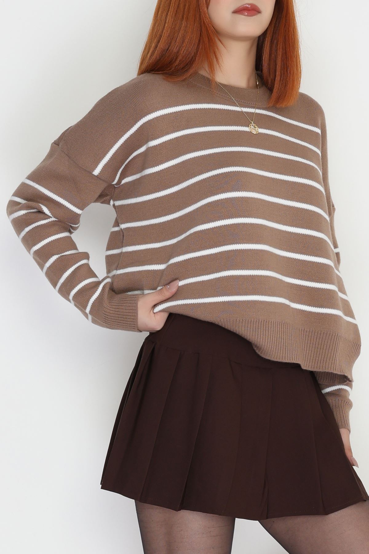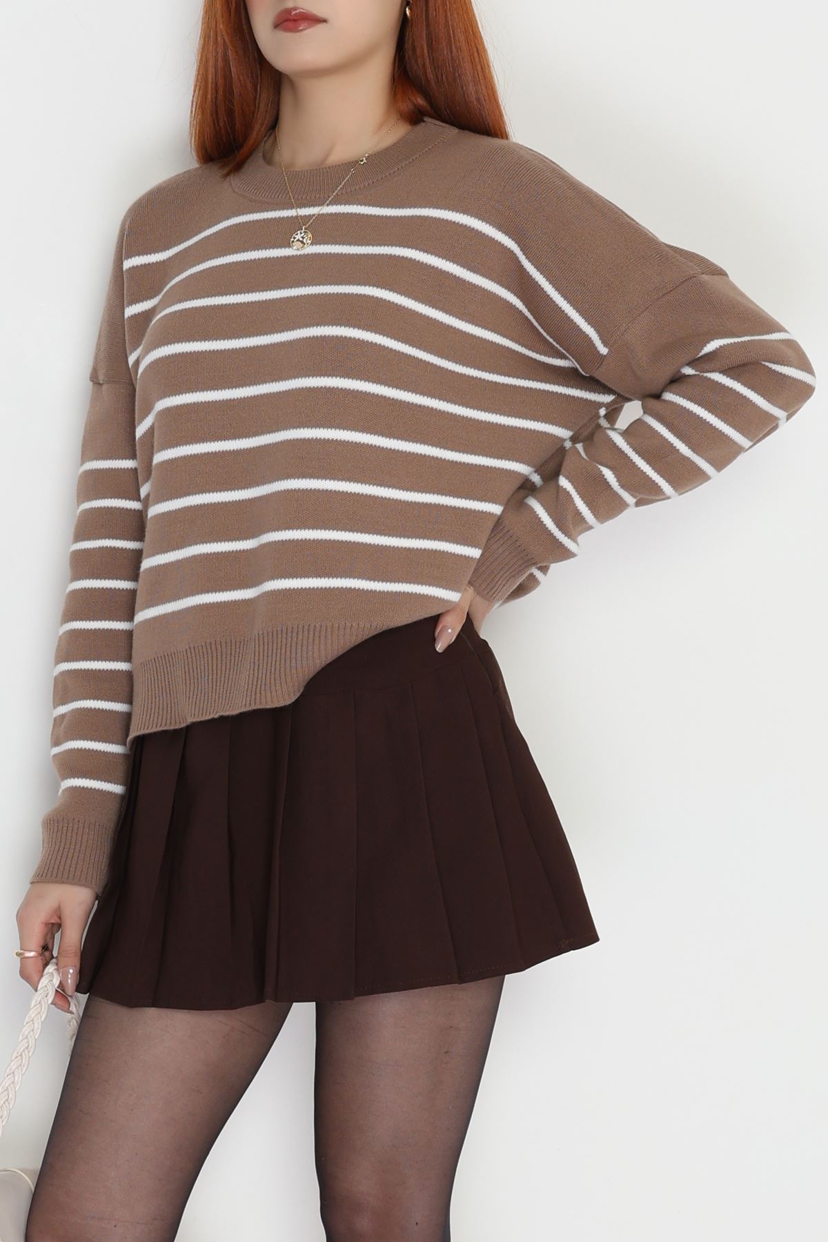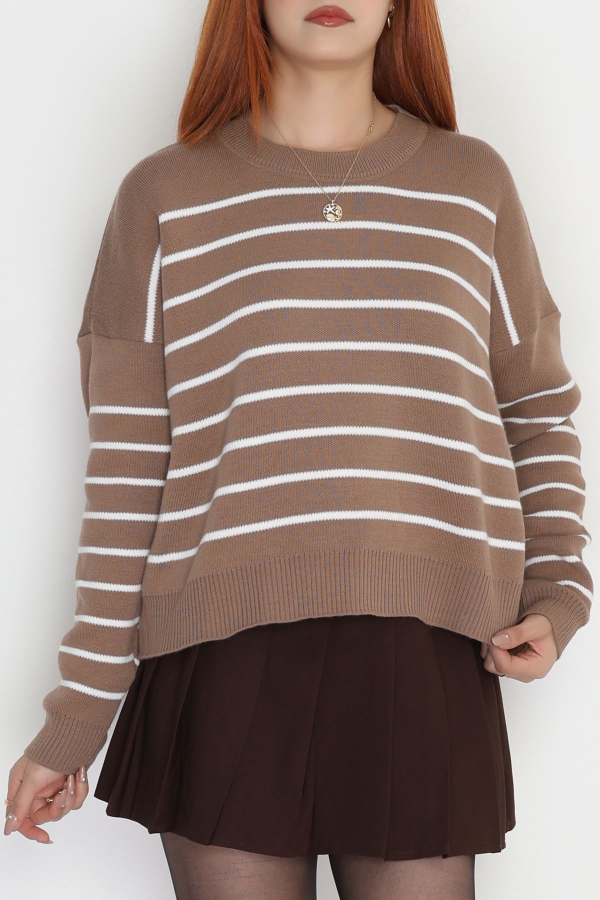 Çizgili Bisiklet Yaka Triko Mochalatte - 3099.1577.