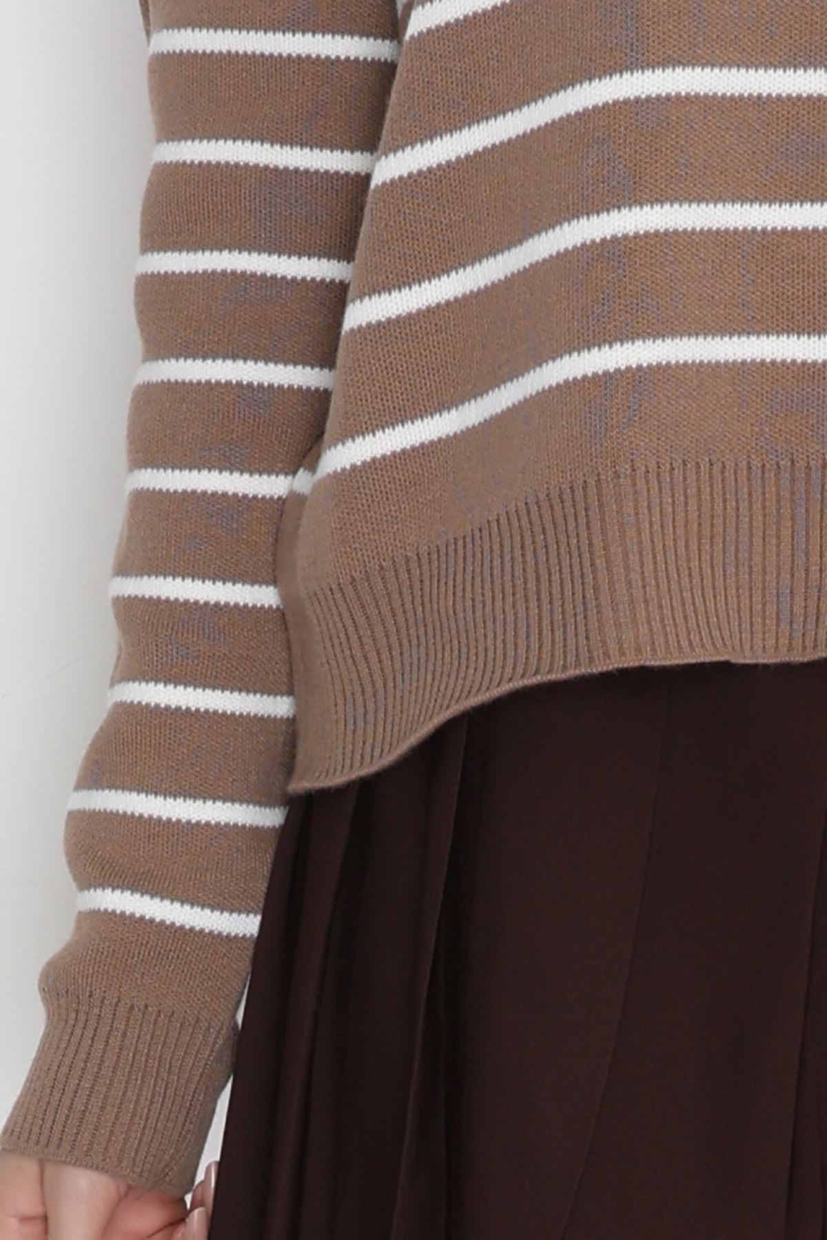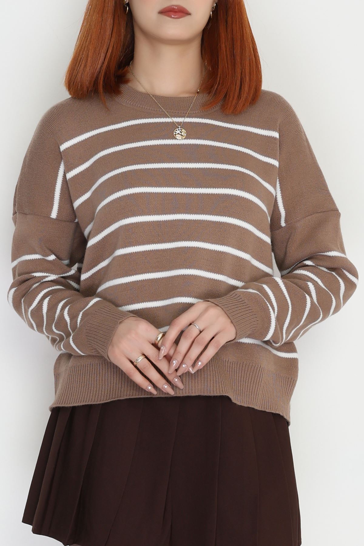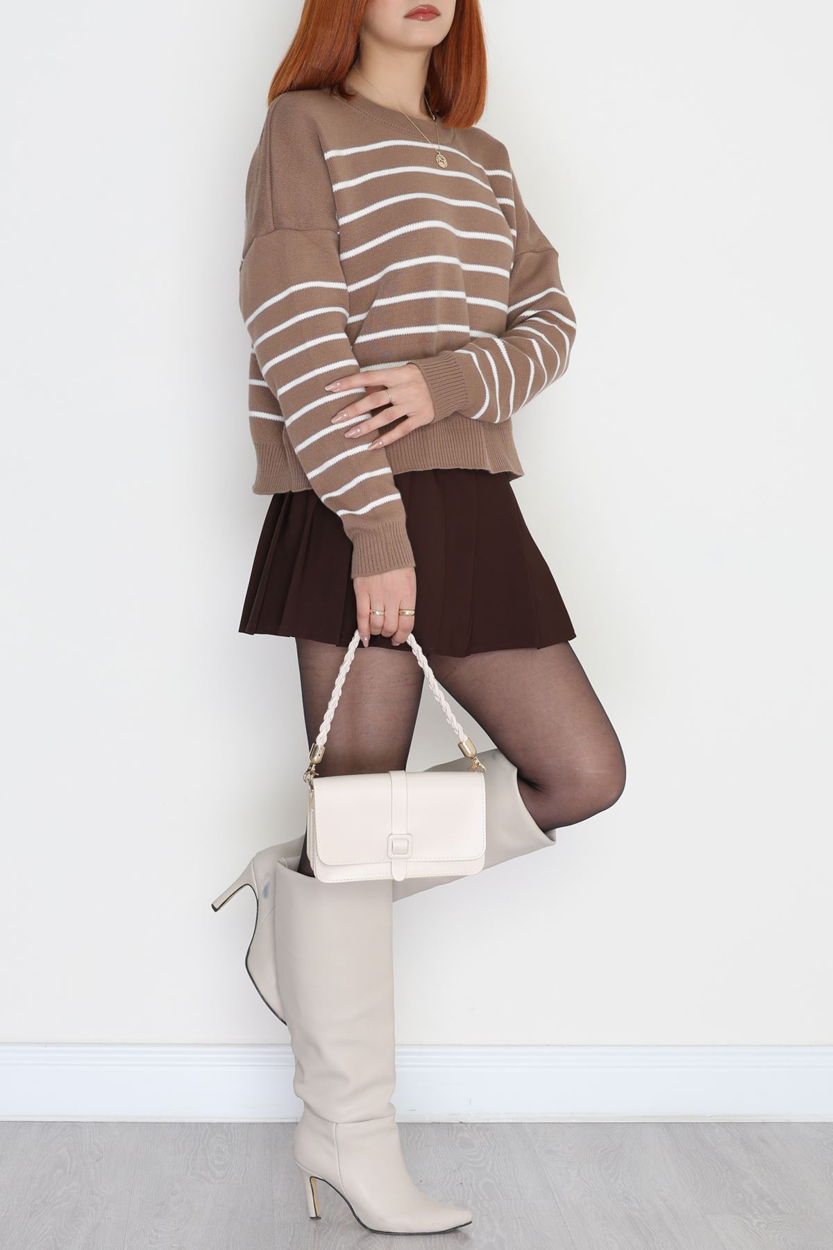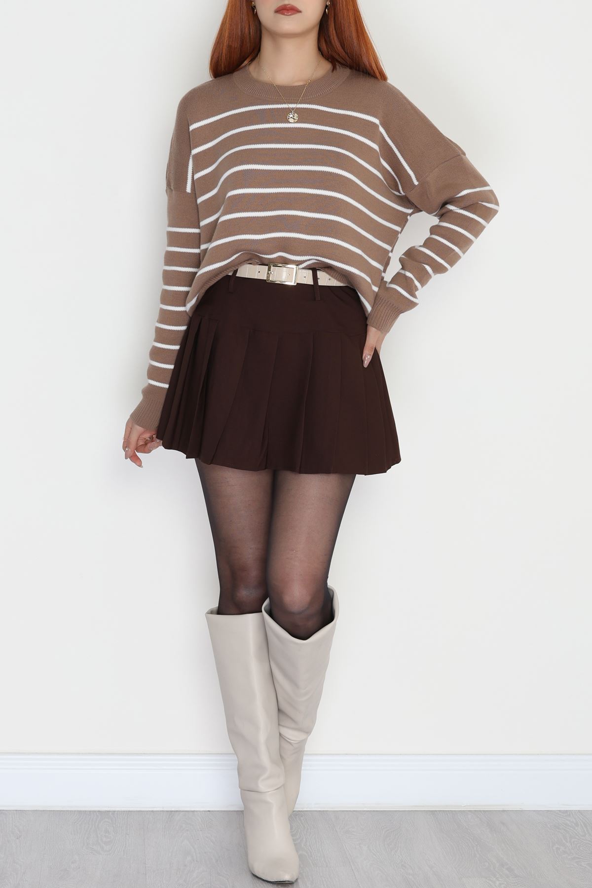 Çizgili Bisiklet Yaka Triko Mochalatte - 3099.1577.