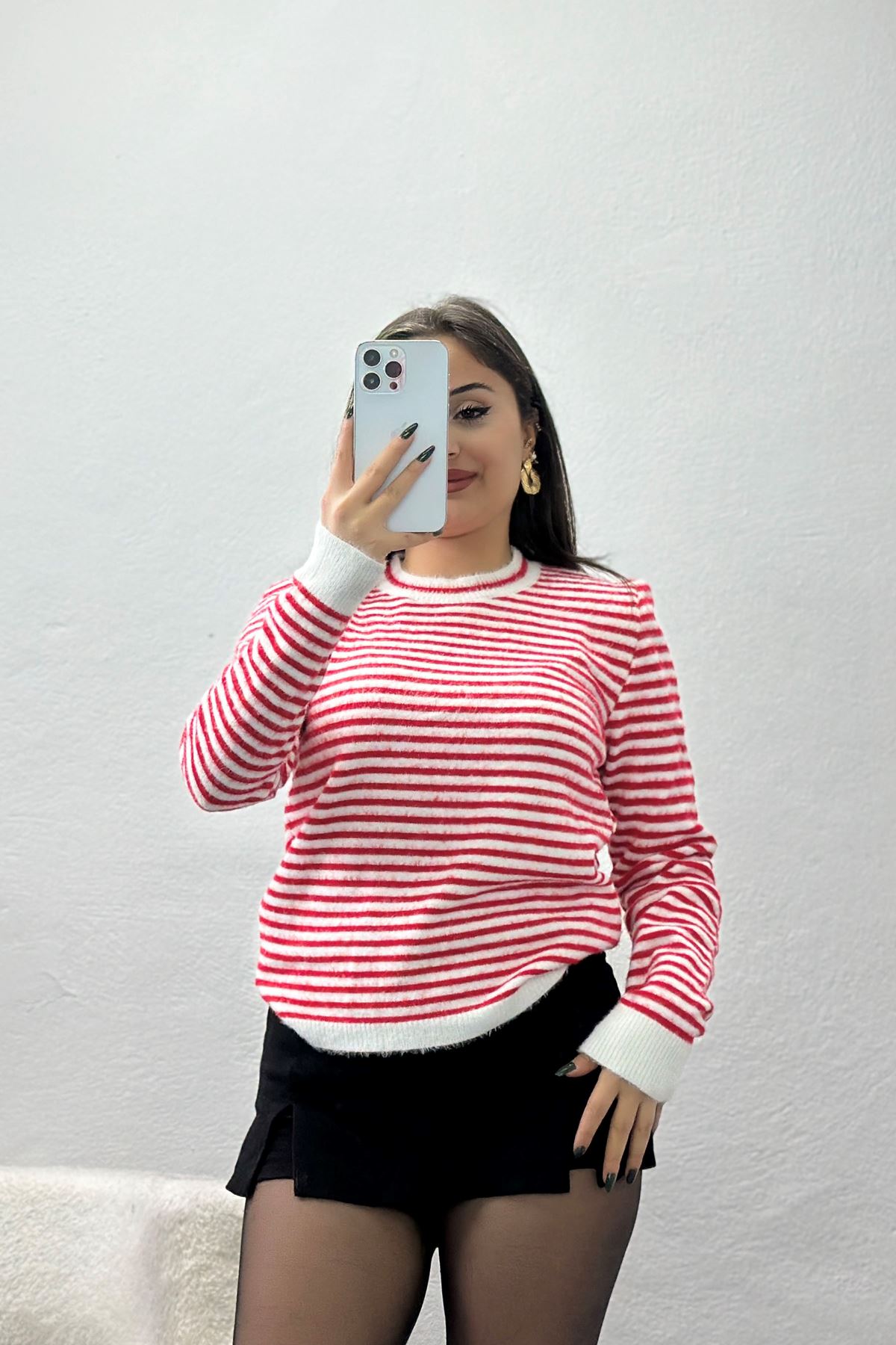 Çizgili Crop Triko Kırmızı - 2357.1765.