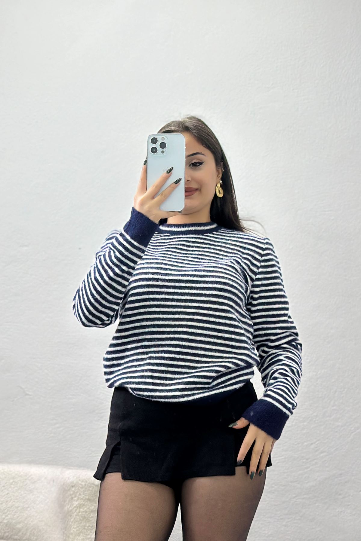 Çizgili Crop Triko Lacivert - 2357.1765.