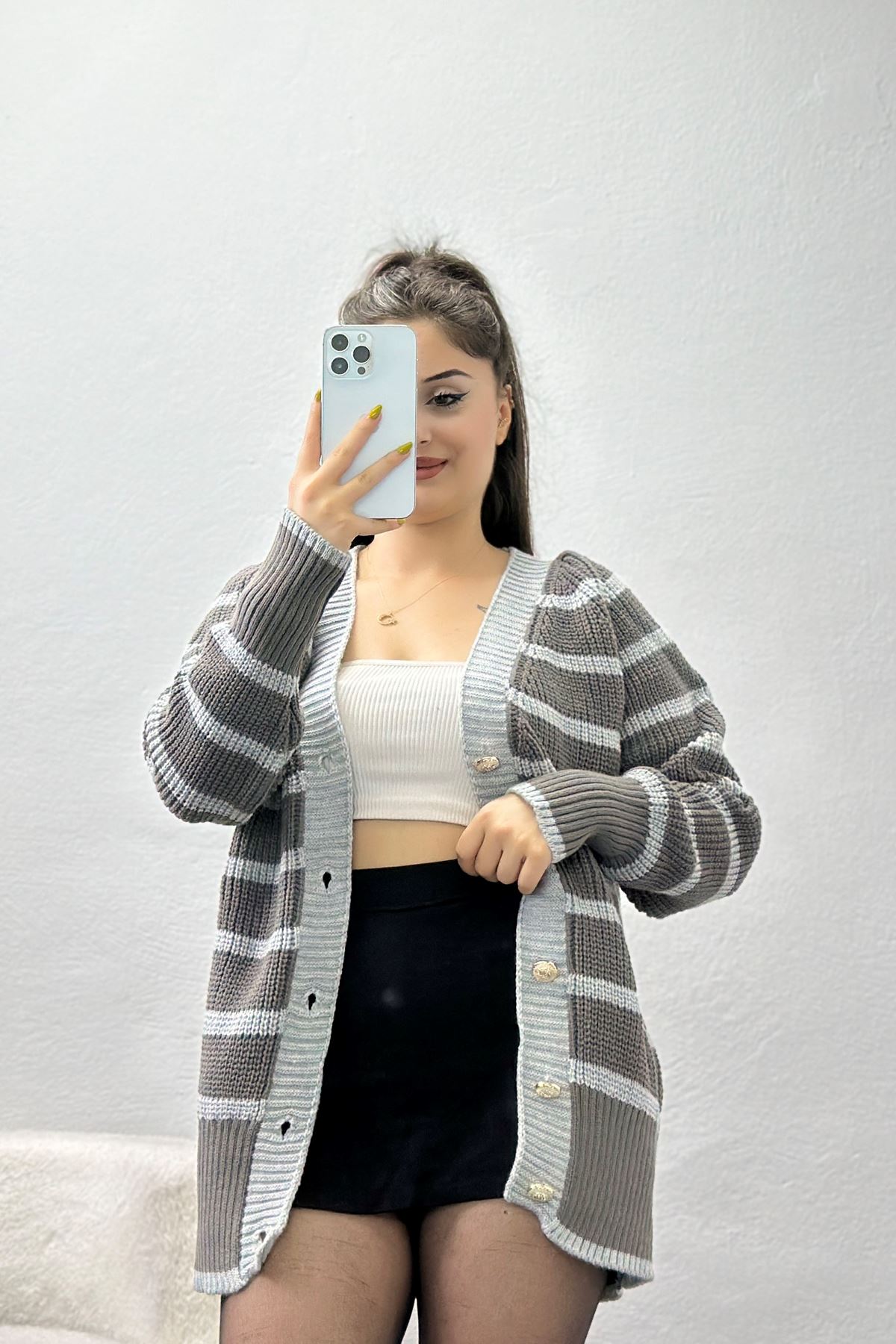 Düğmeli Çizgili Hırka Siyahlatte - 4035.1577.