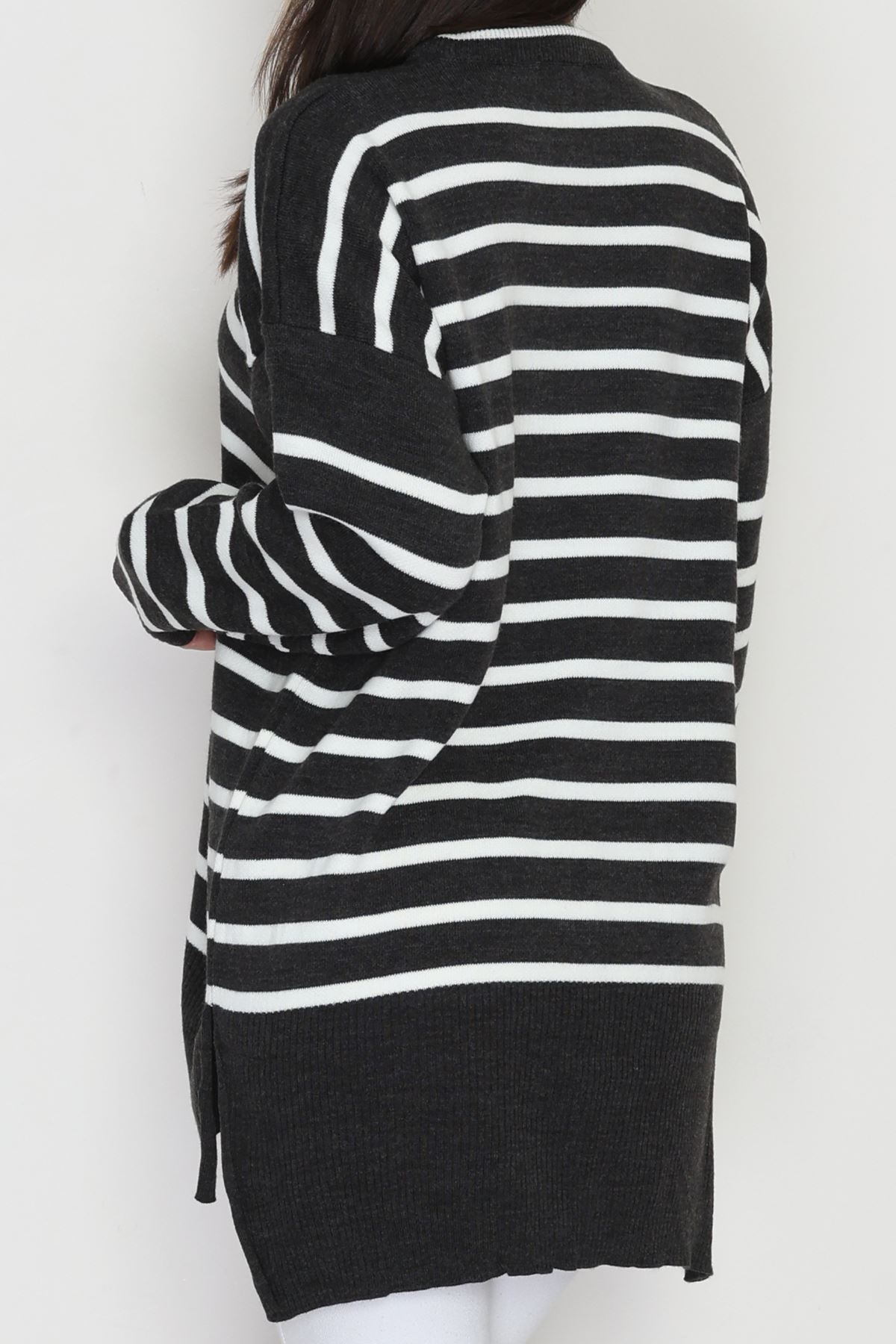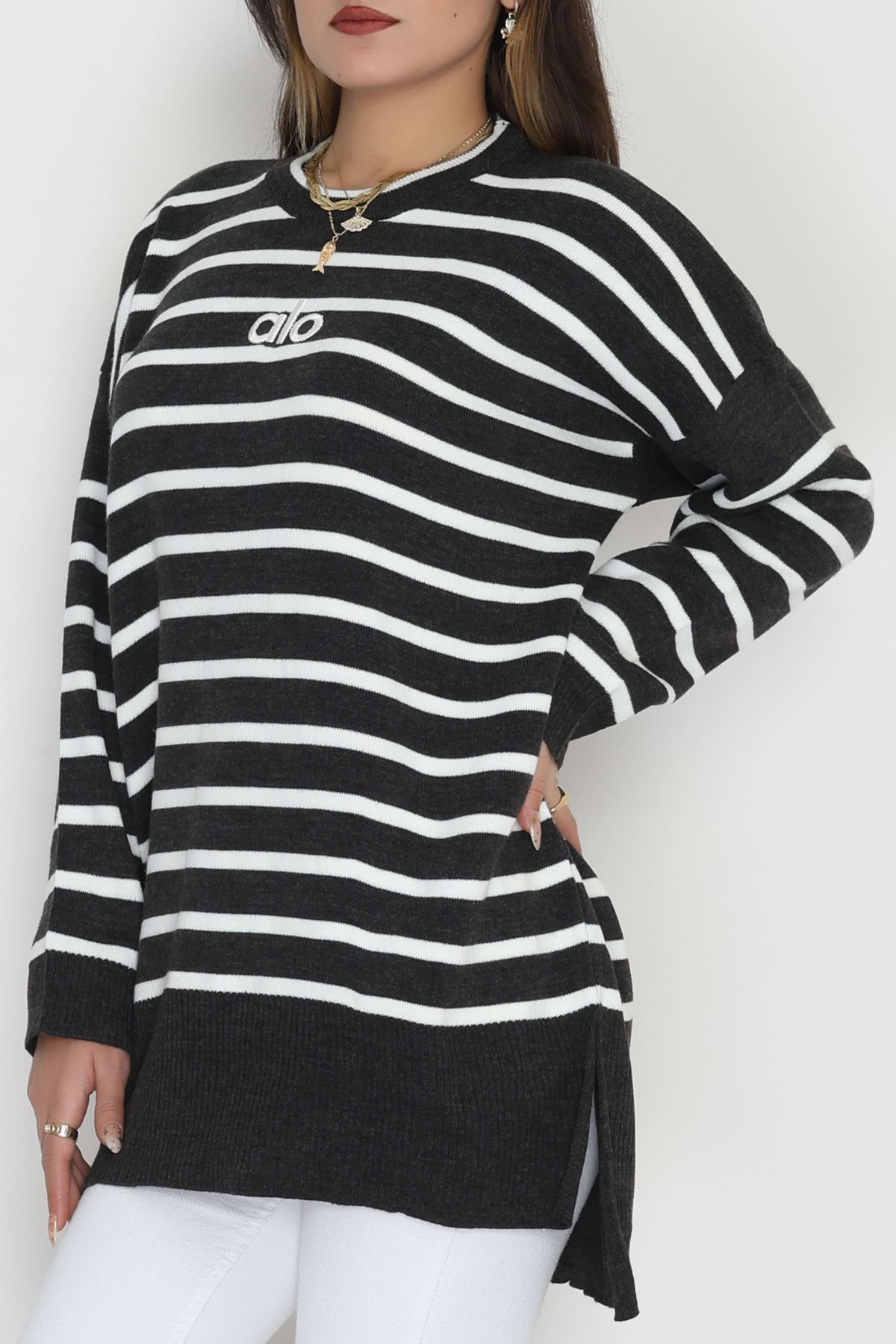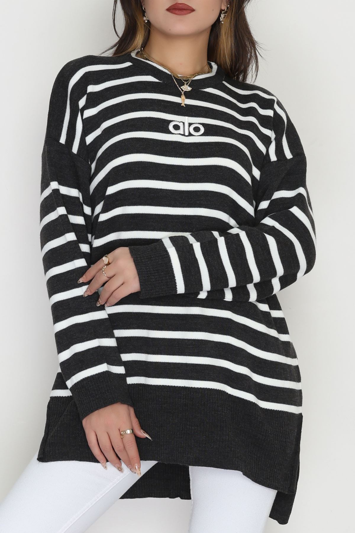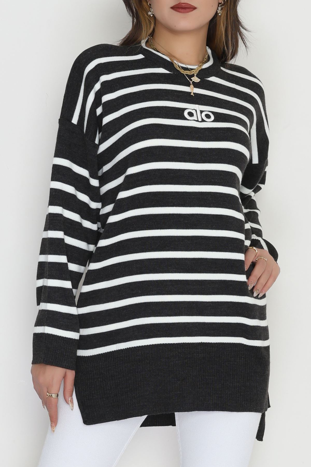 Çizgili Nakışlı Triko Tunik Antrasit - 4041.1247.