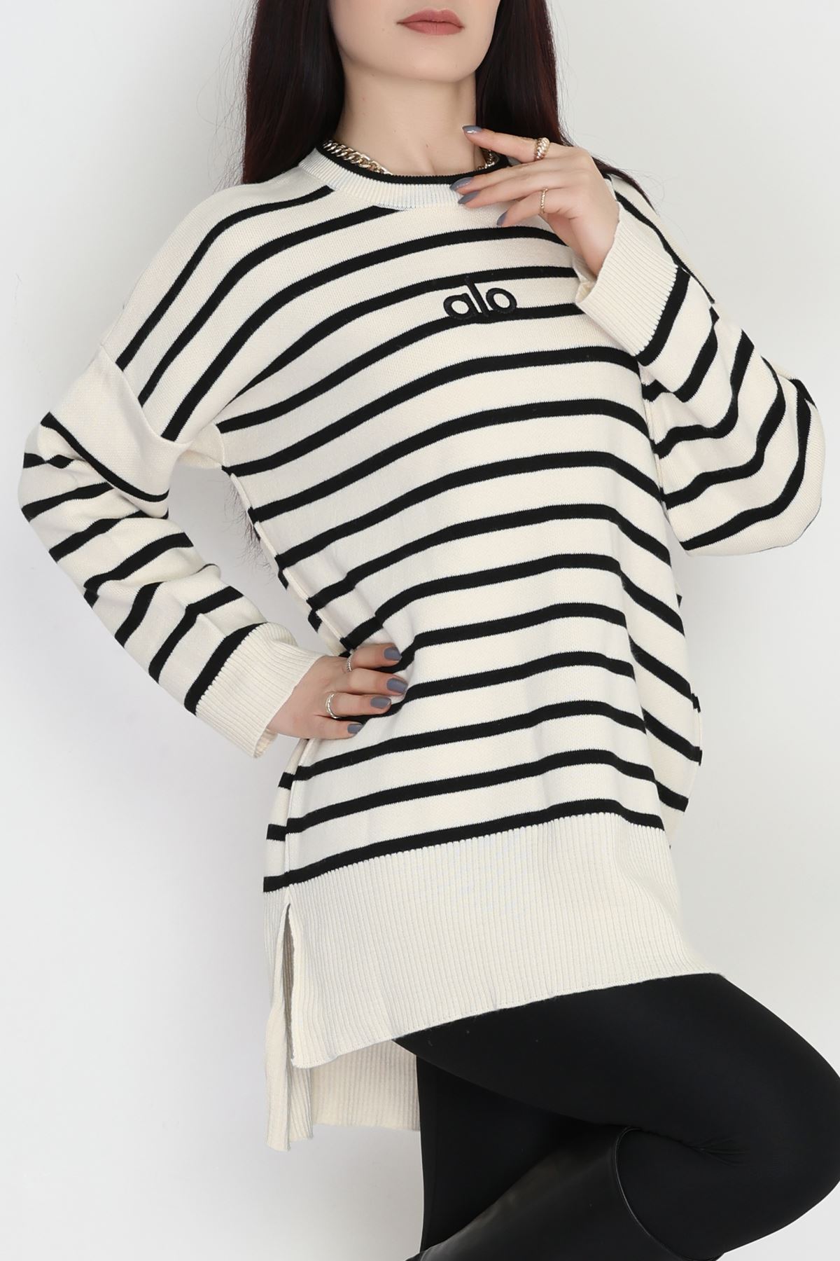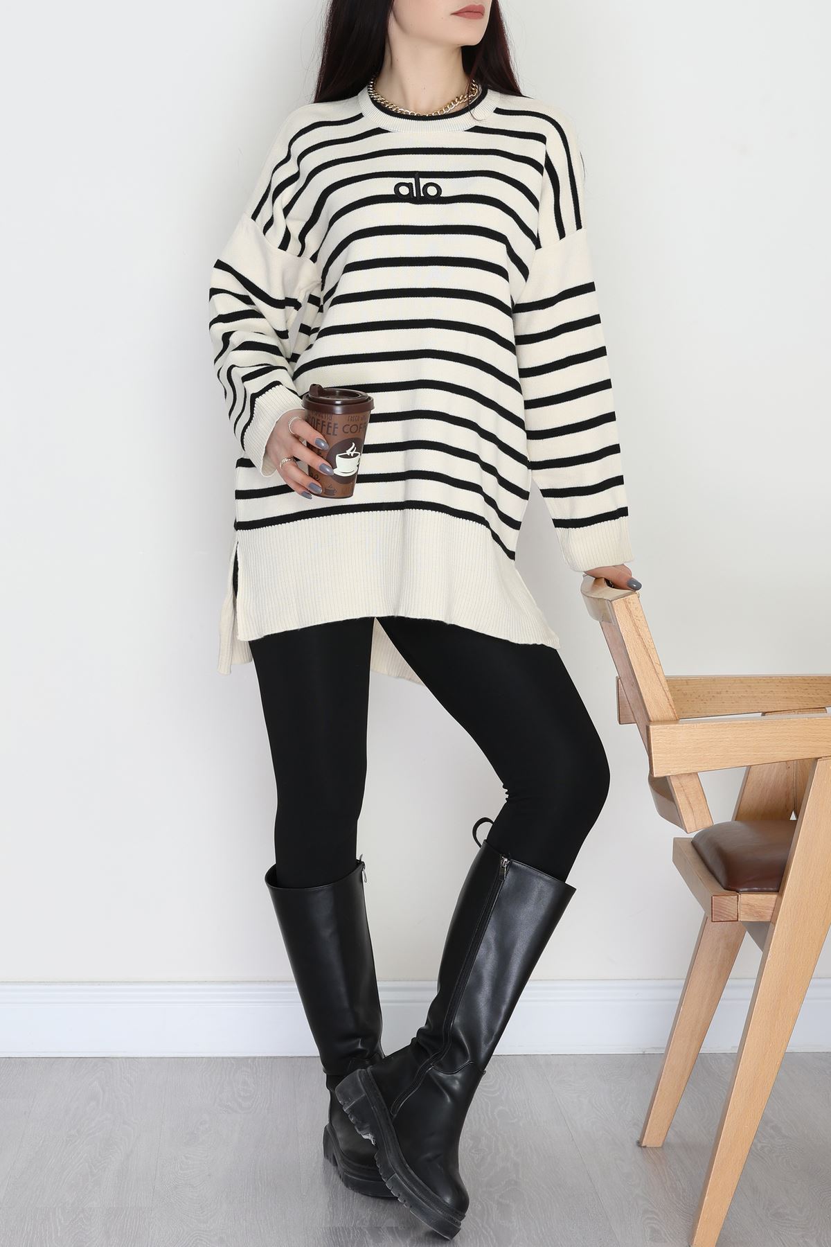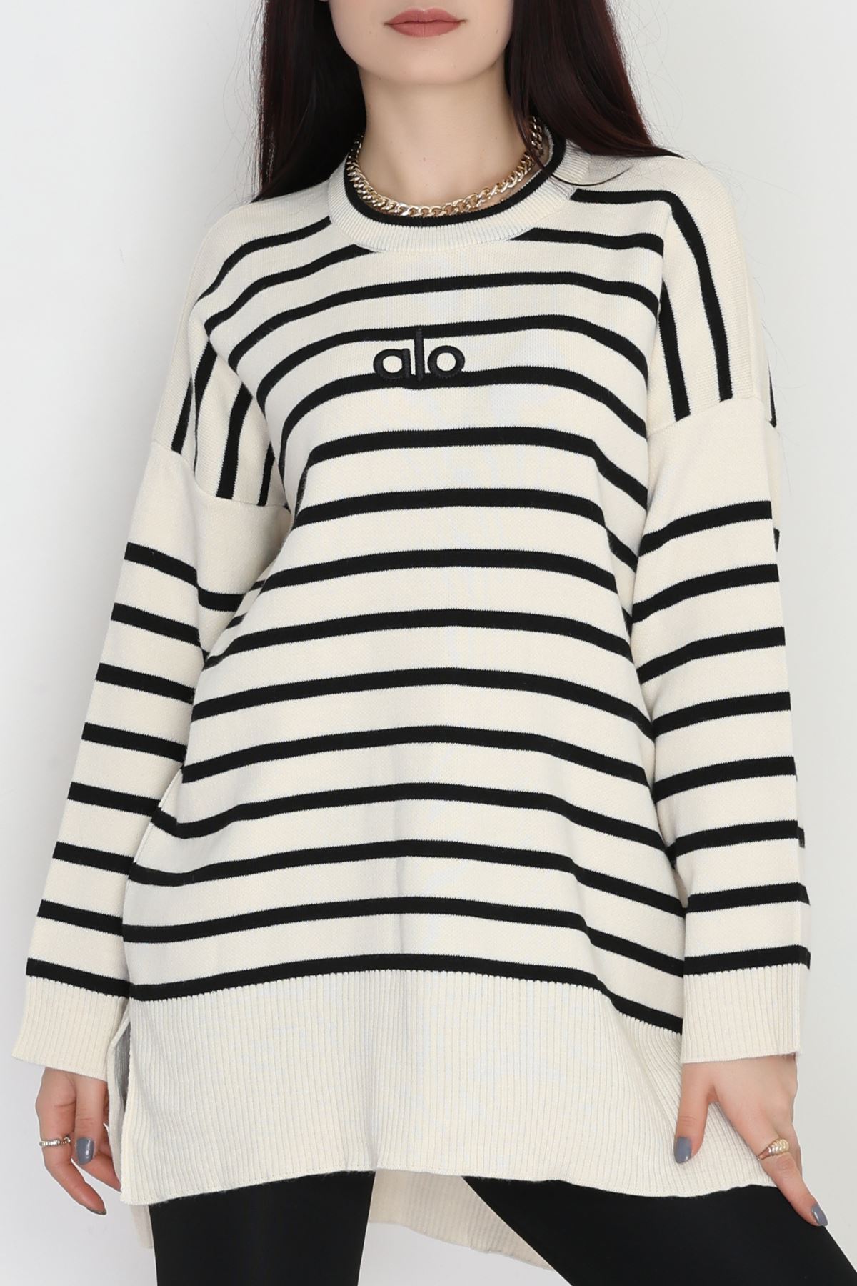 Çizgili Nakışlı Triko Tunik Bej - 4041.1247.