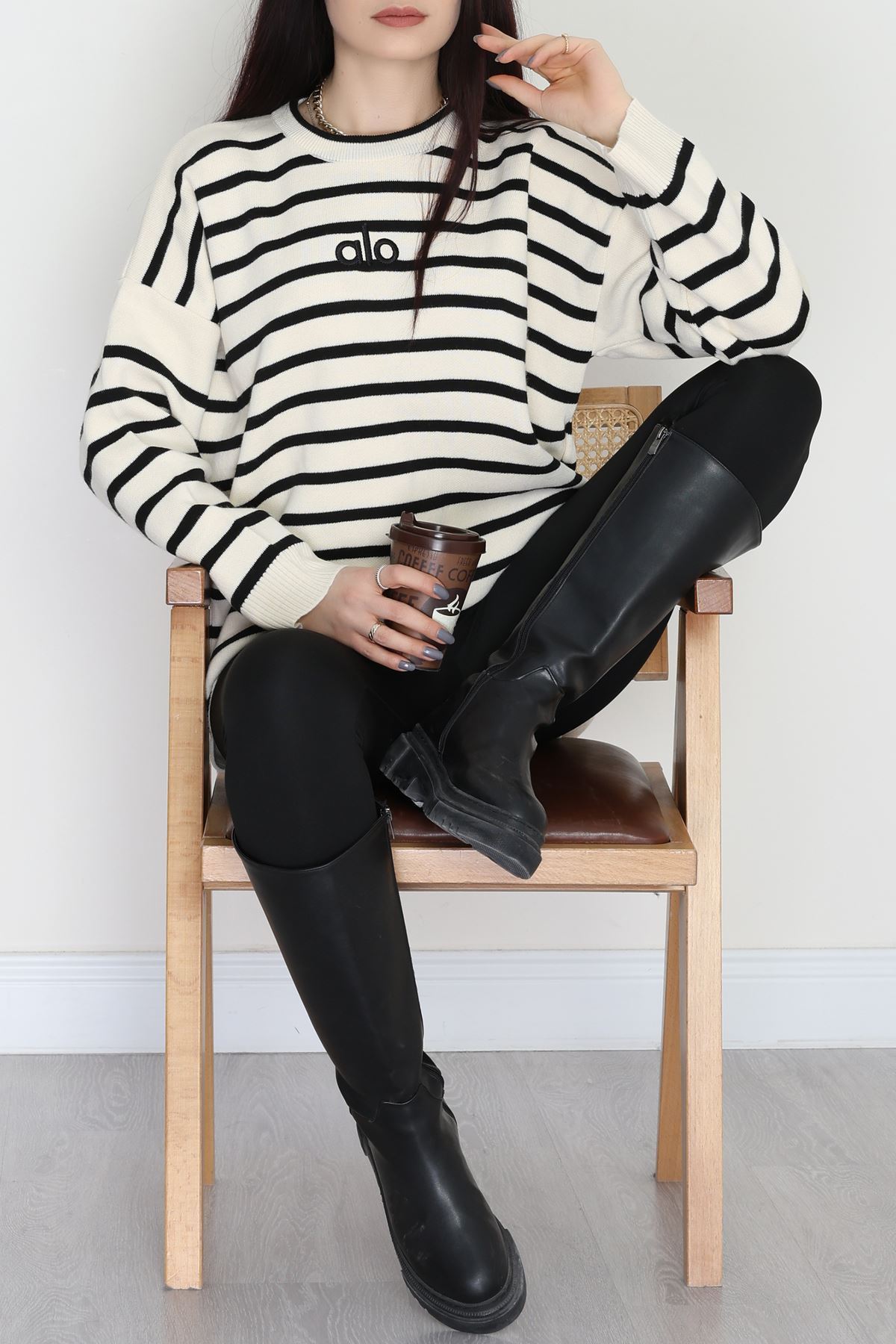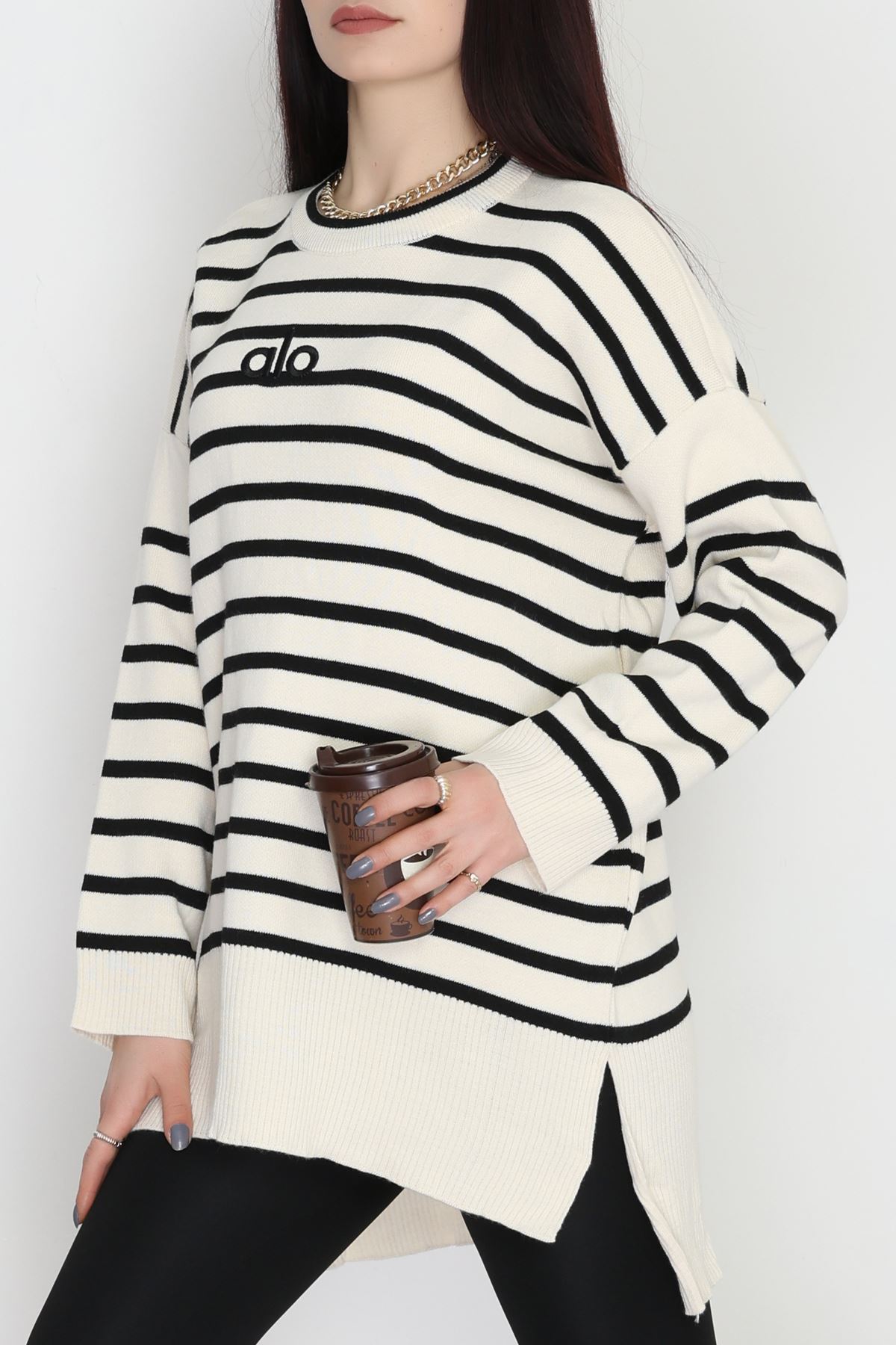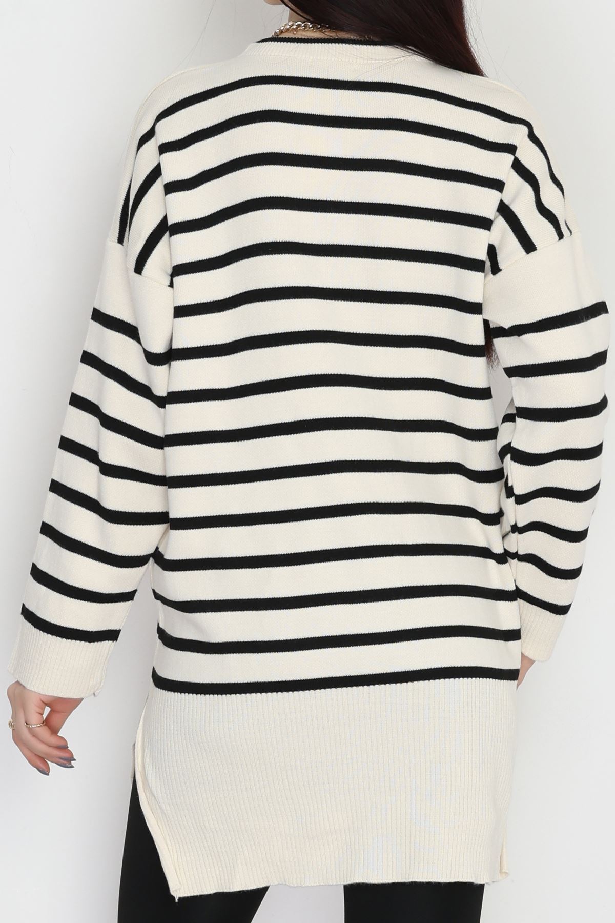 Çizgili Nakışlı Triko Tunik Bej - 4041.1247.