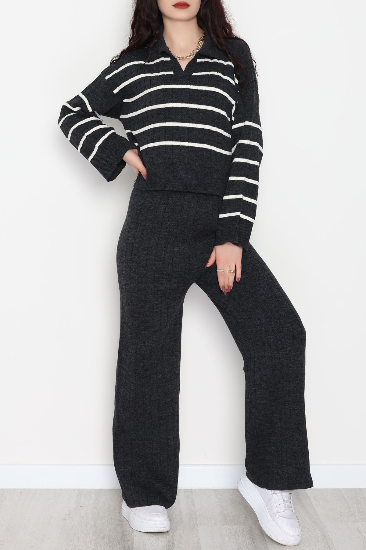 Çizgili Polo Yaka Takım Antrasit - 2295.1247.