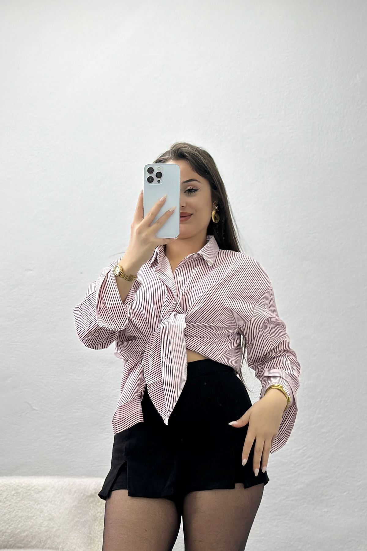 Çizgili Rahat Kalıp Gömlek Bordoçizgili - 90159.1949.