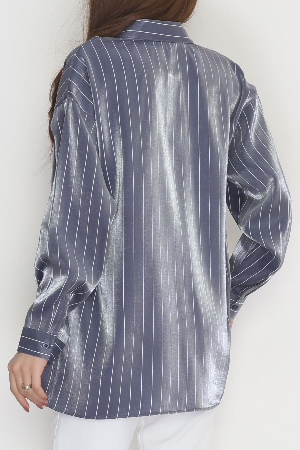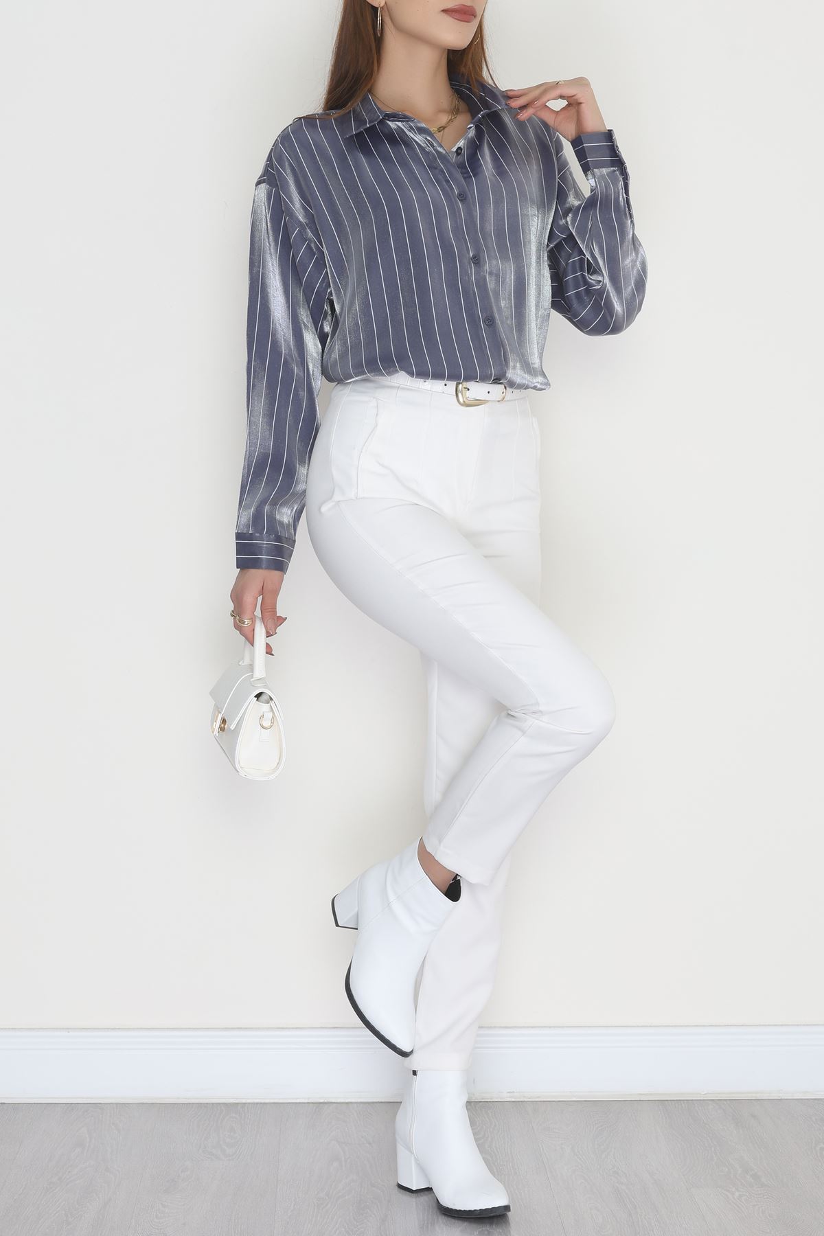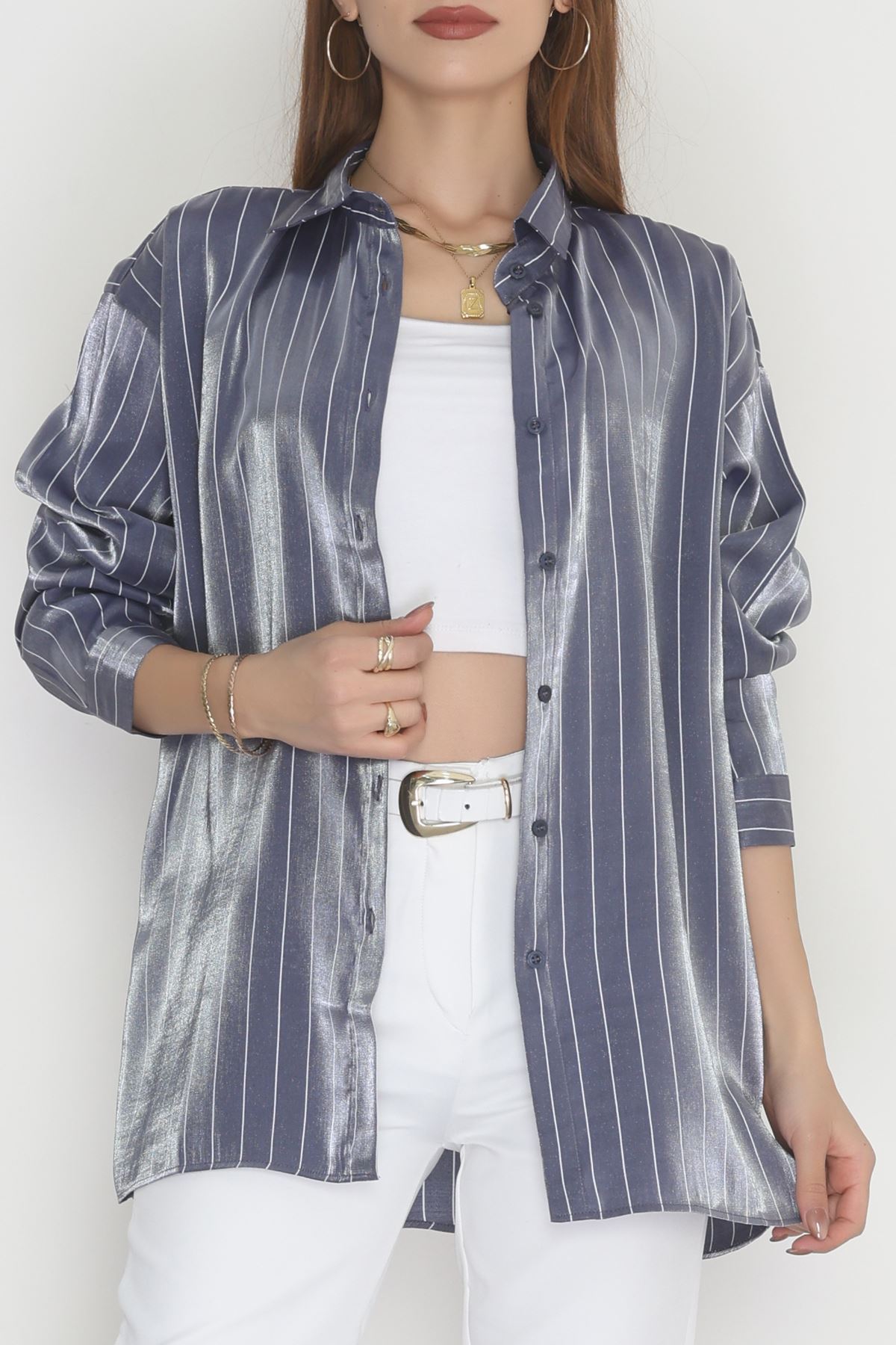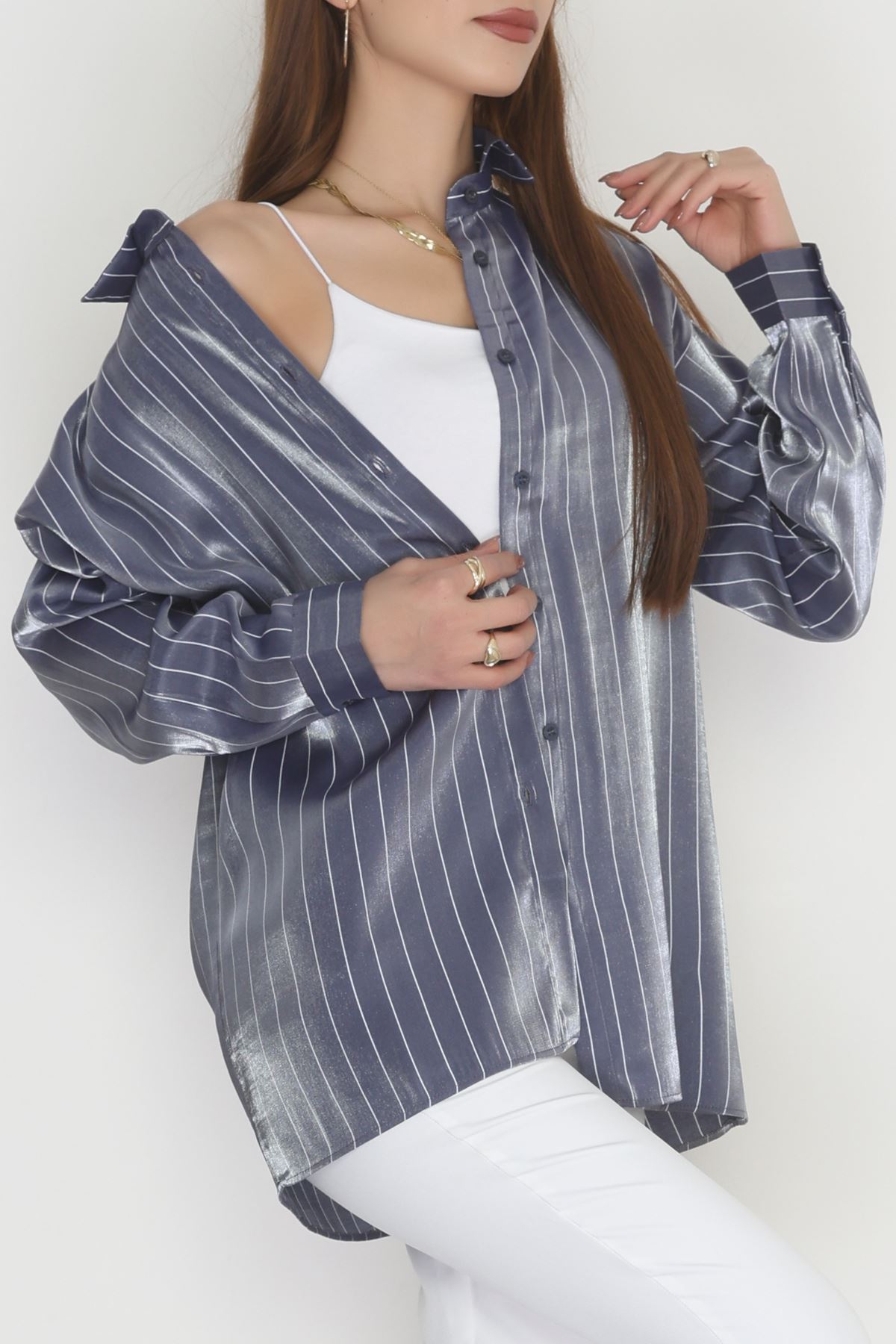 Çizgili Saten Oversize Gömlek Antrasit - 4009.1595.