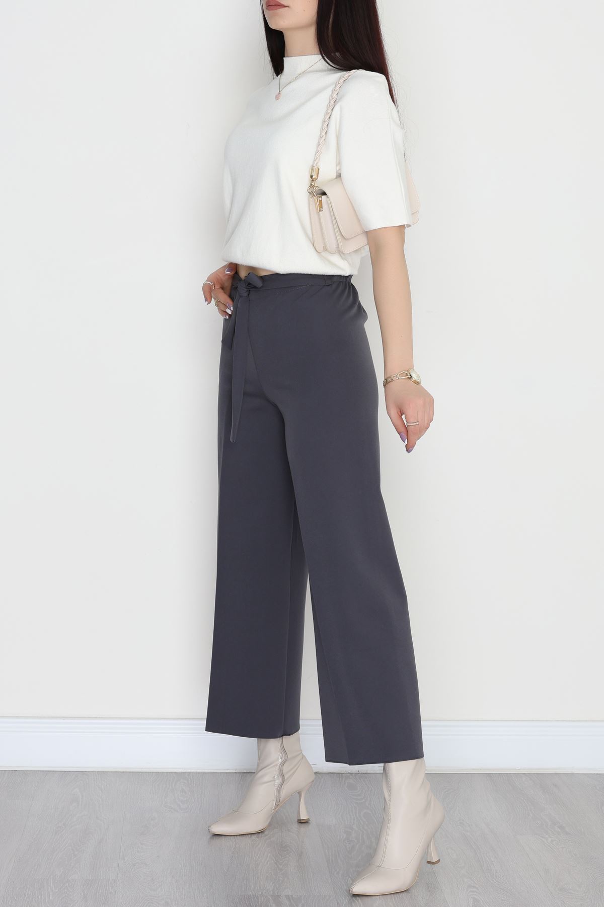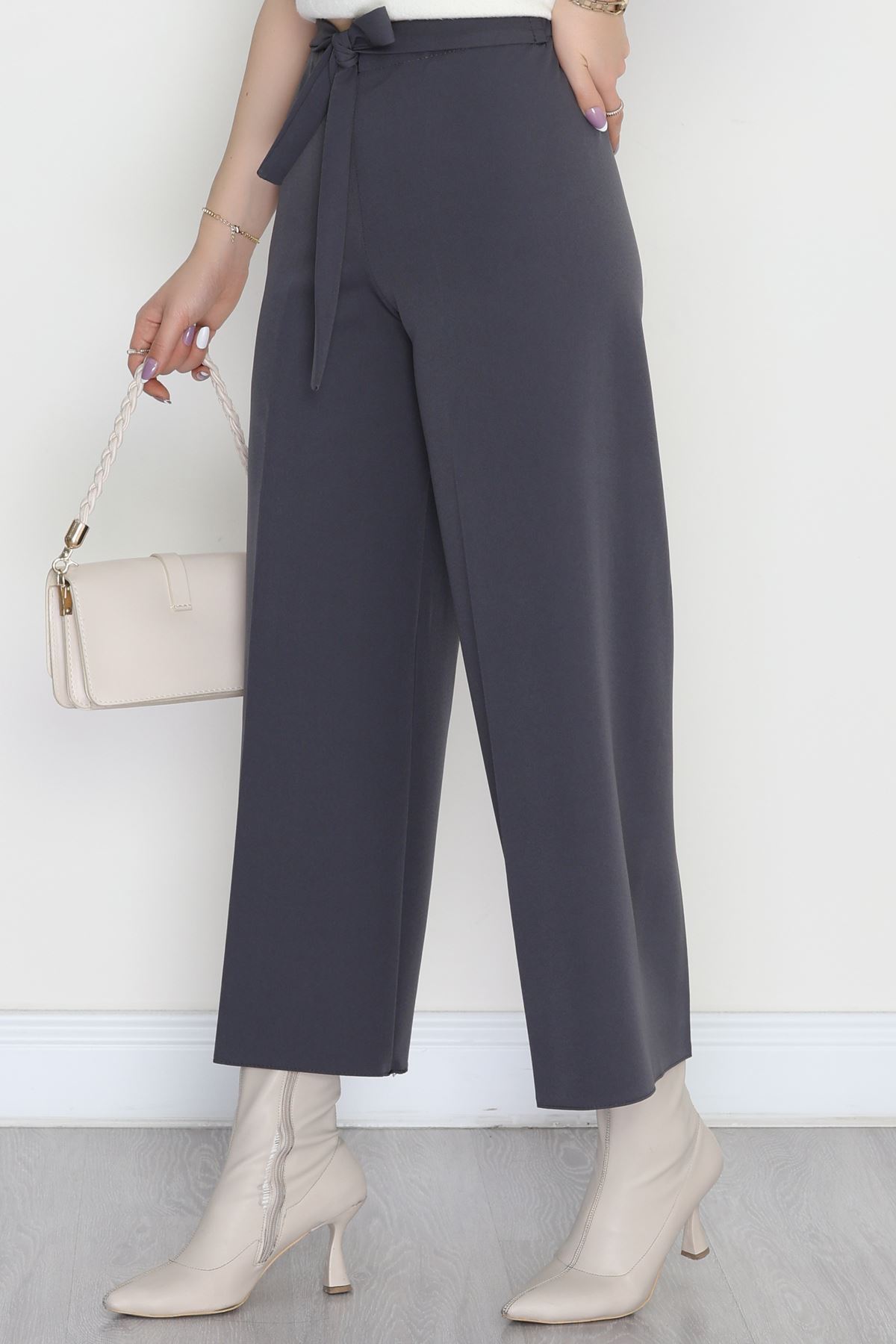 Kemer Cırtlı Krep Pantolon Füme - 20255.1865.