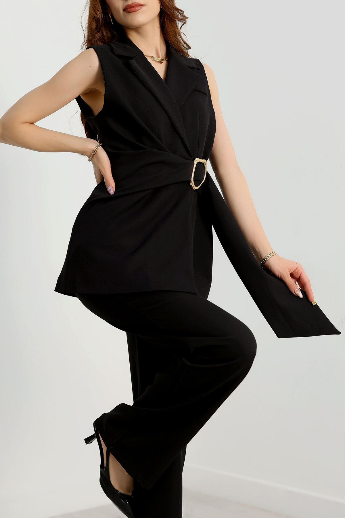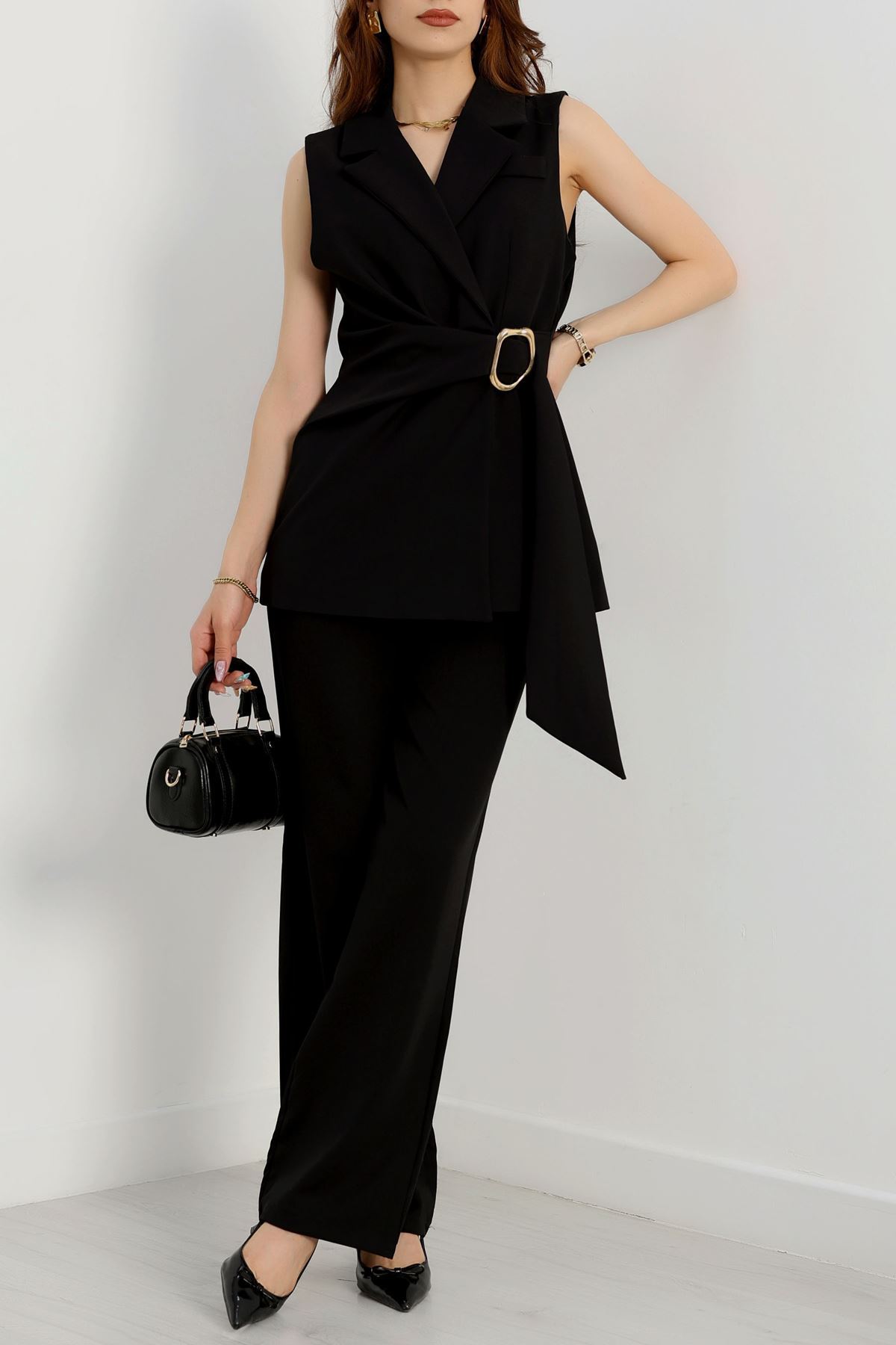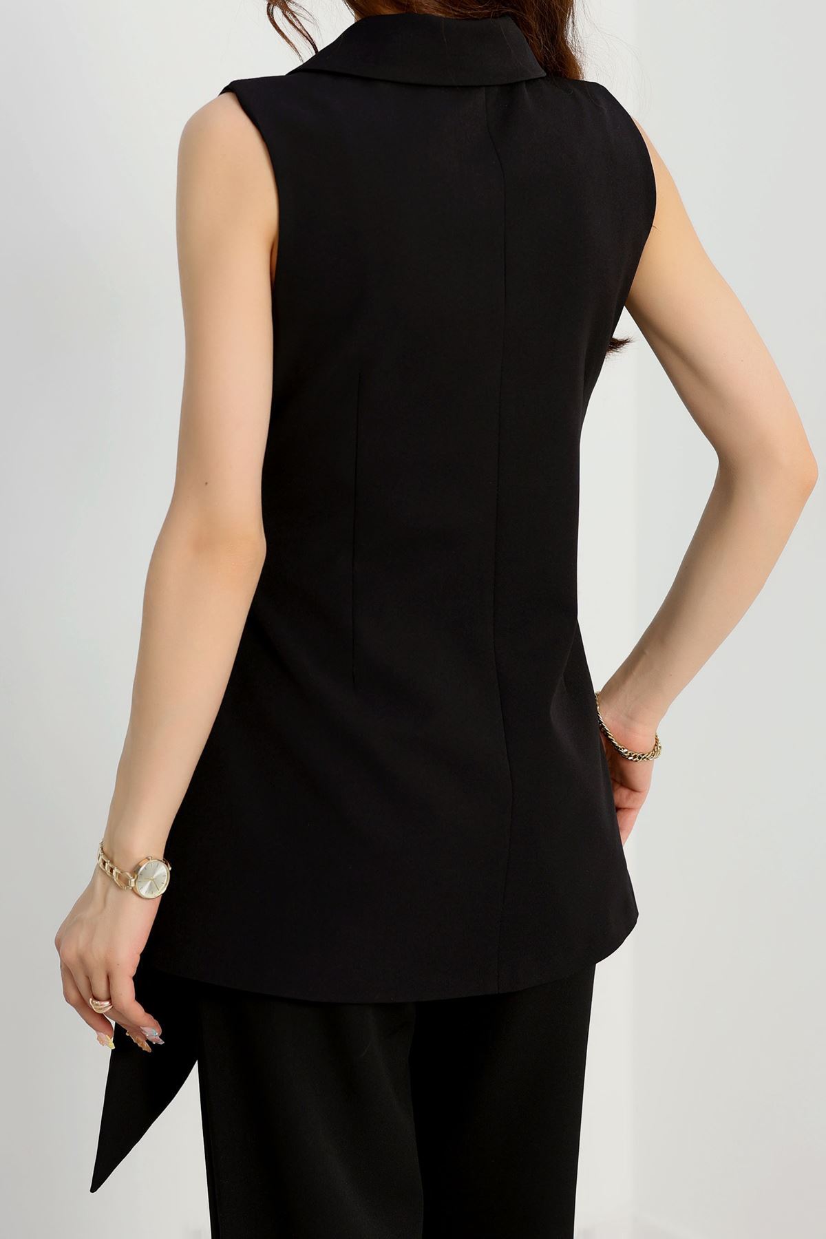 Dabıl Kumaş Bağlamalı Astarlı Yelek Siyah - 31359.1397.