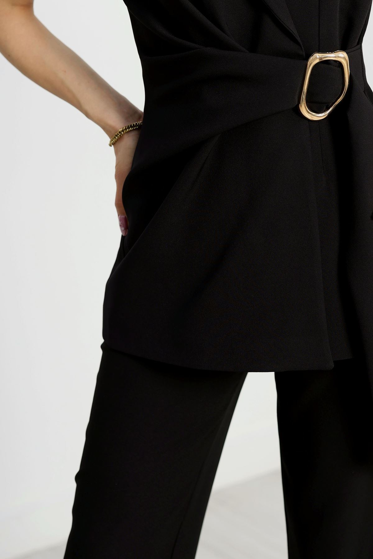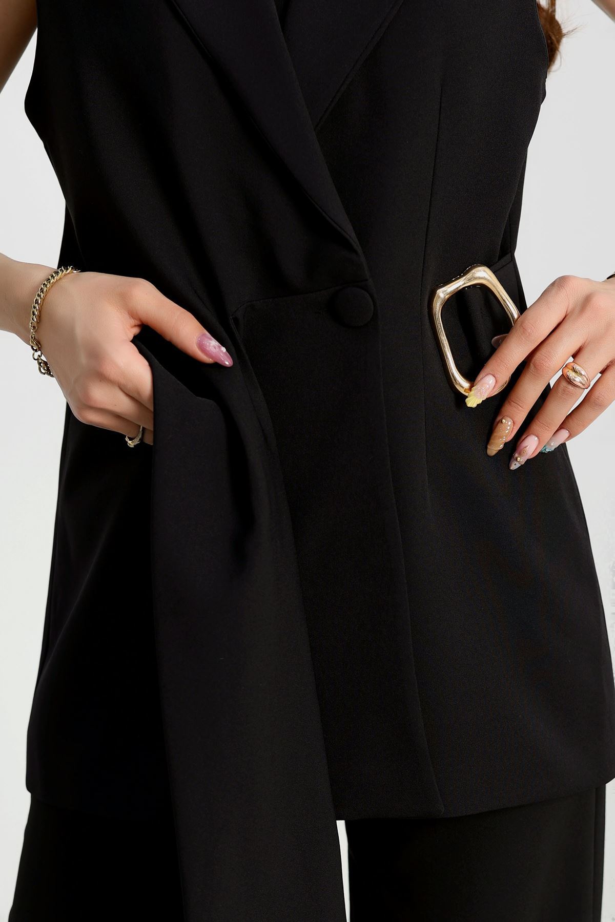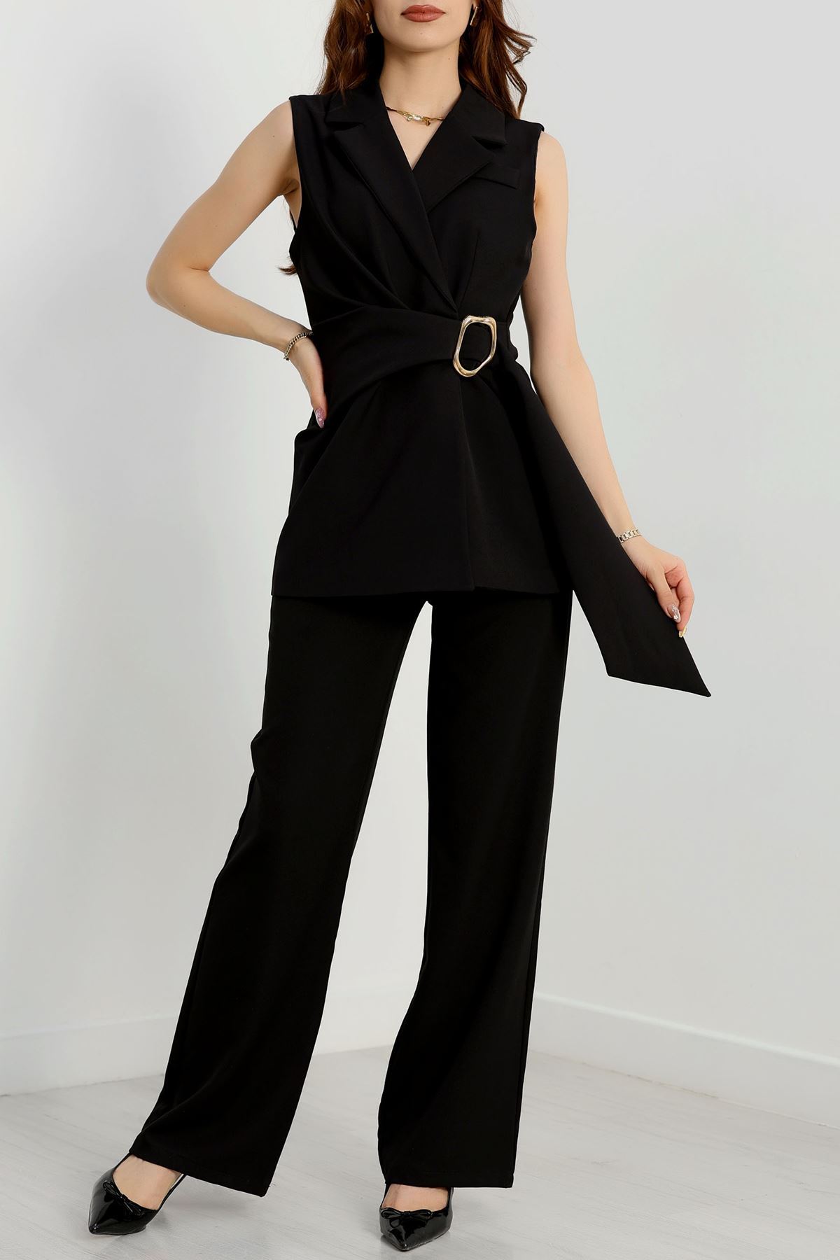 Dabıl Kumaş Bağlamalı Astarlı Yelek Siyah - 31359.1397.