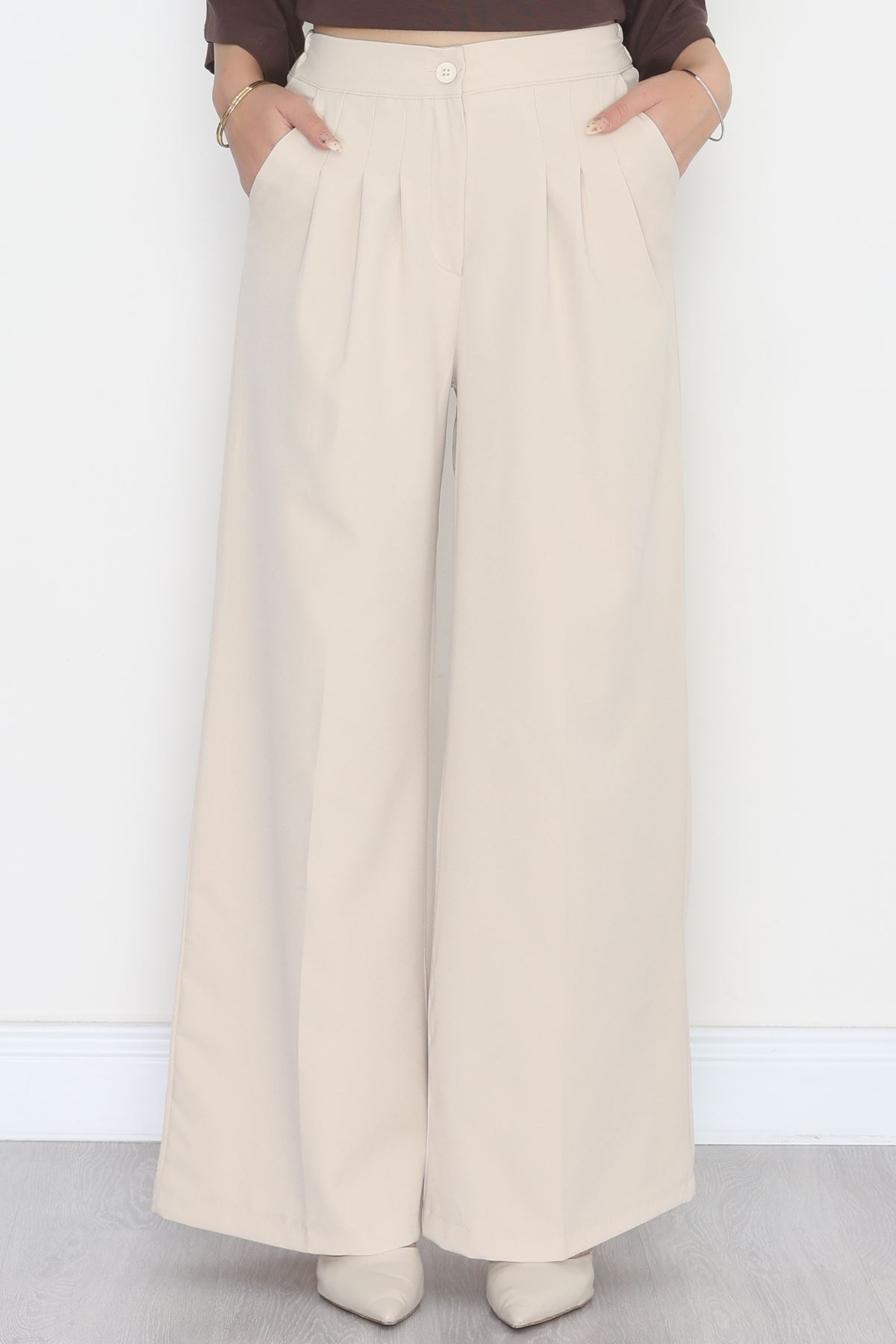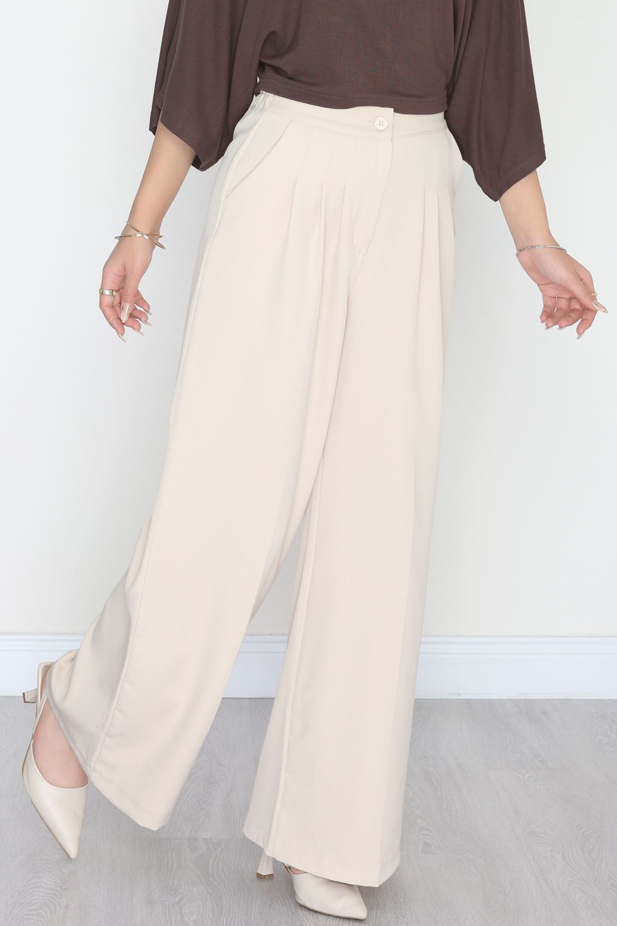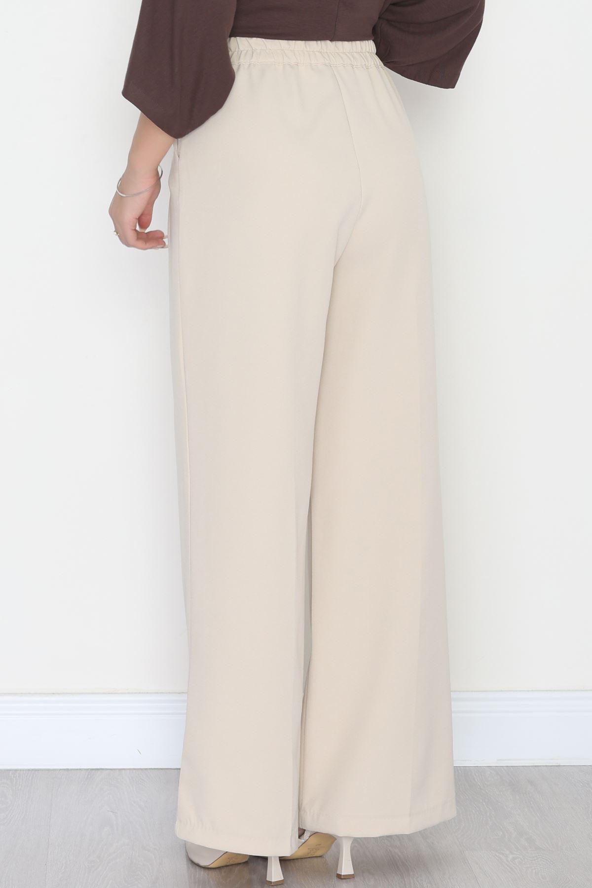 Dabıl Kumaş Beli Lastikli Palazzo Pantolon Bej - 51063.1991.