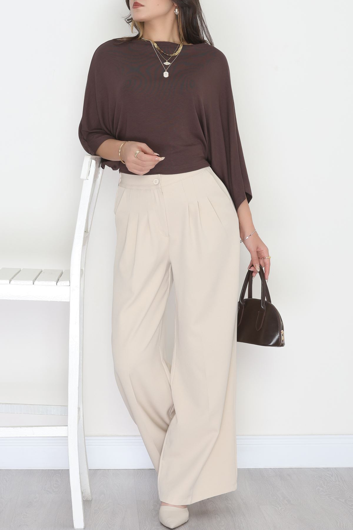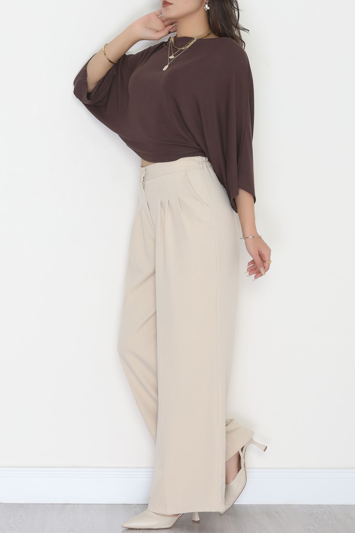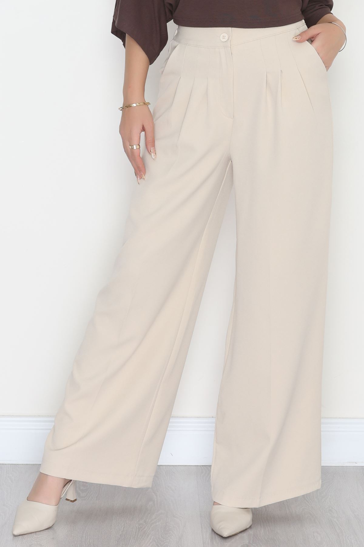 Dabıl Kumaş Beli Lastikli Palazzo Pantolon Bej - 51063.1991.