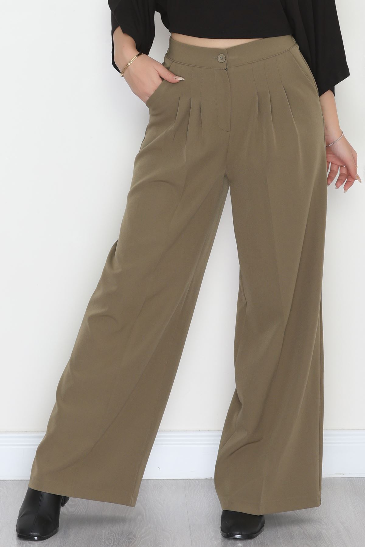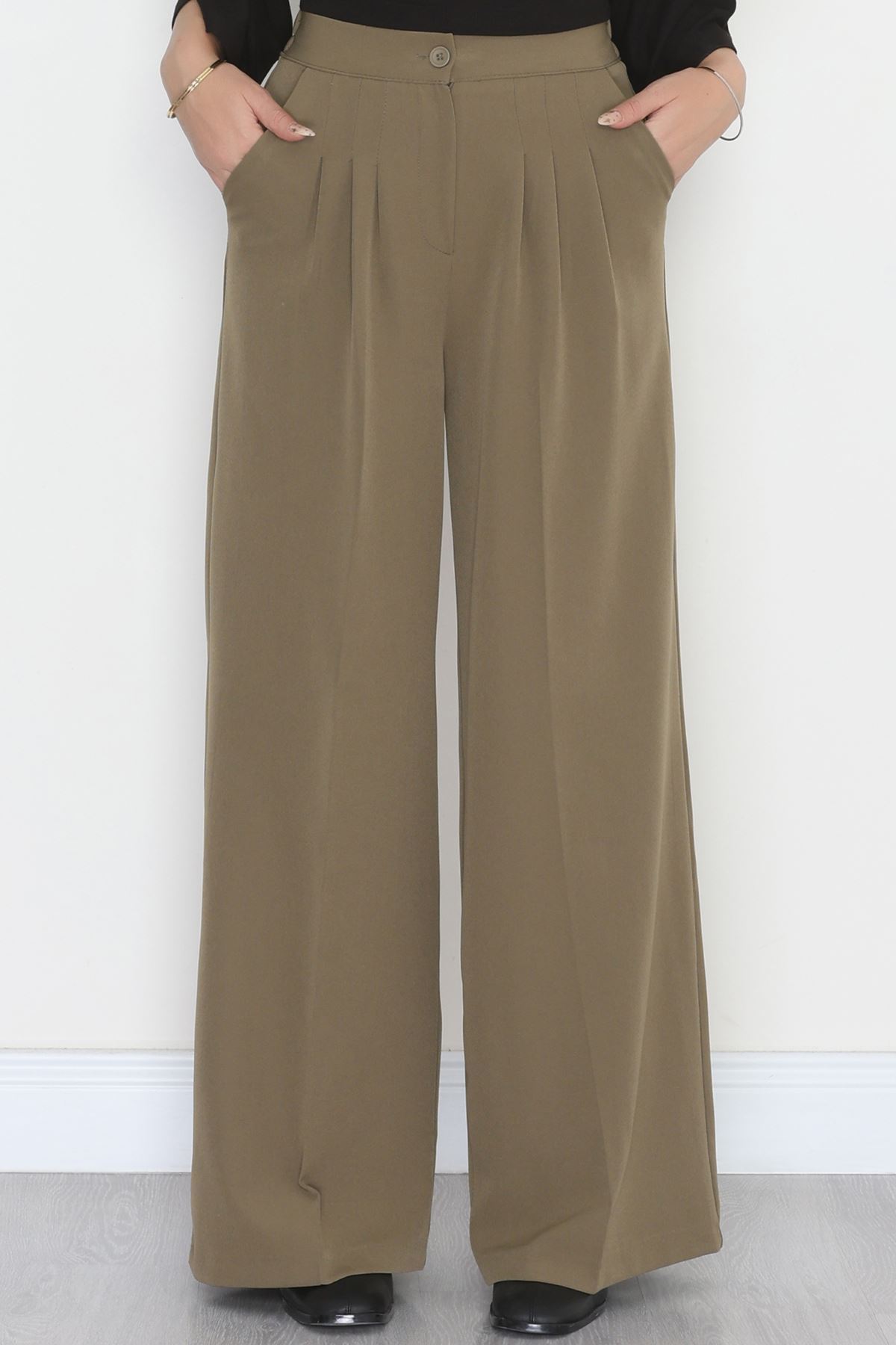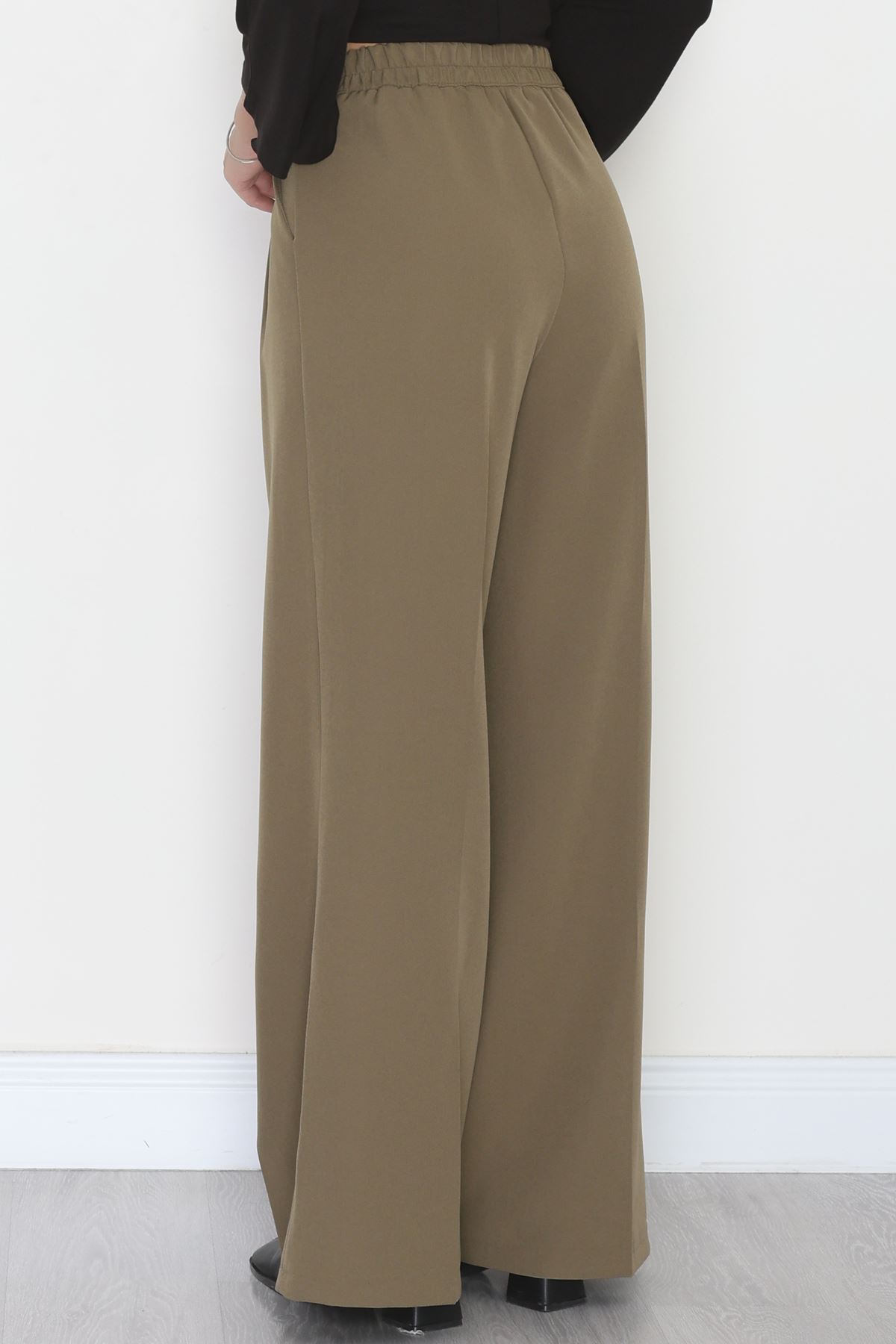 Dabıl Kumaş Beli Lastikli Palazzo Pantolon Haki - 51063.1991.