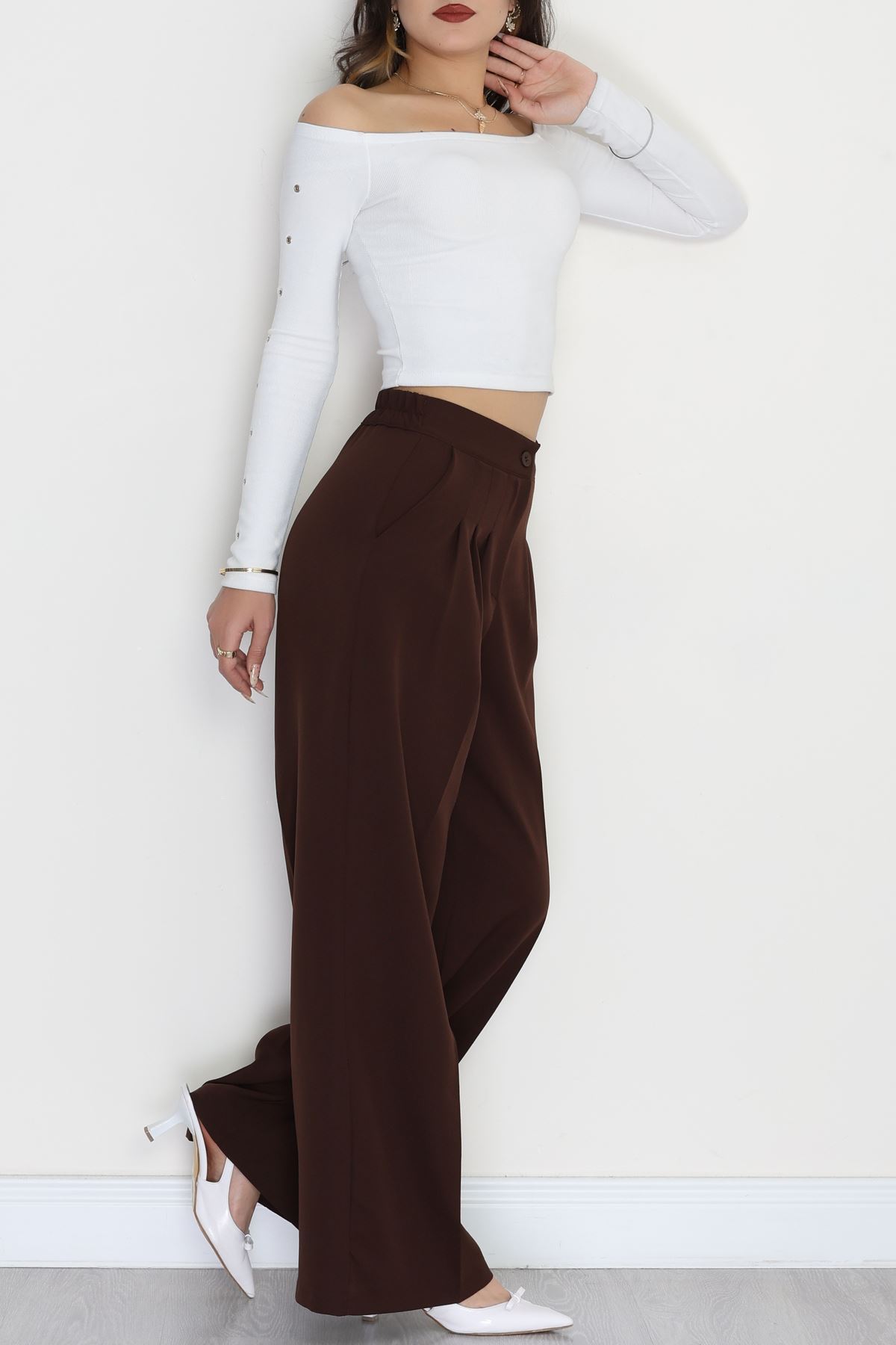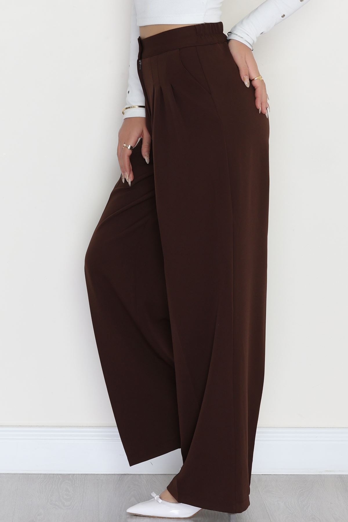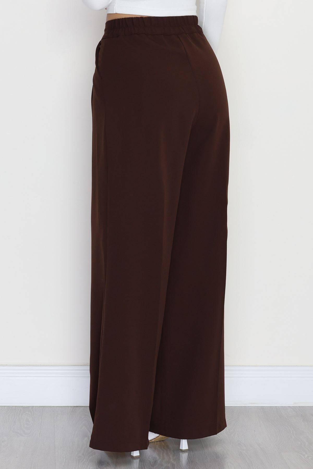 Dabıl Kumaş Beli Lastikli Palazzo Pantolon Kahve - 51063.1991.