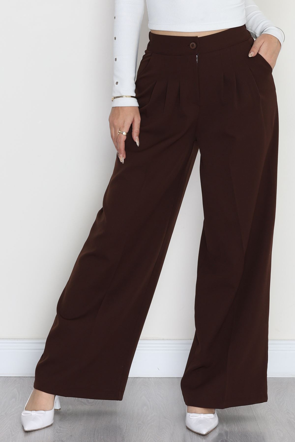 Lastikli Palazzo Gabardin Kot Pantolon Kahve - 31559.2088.