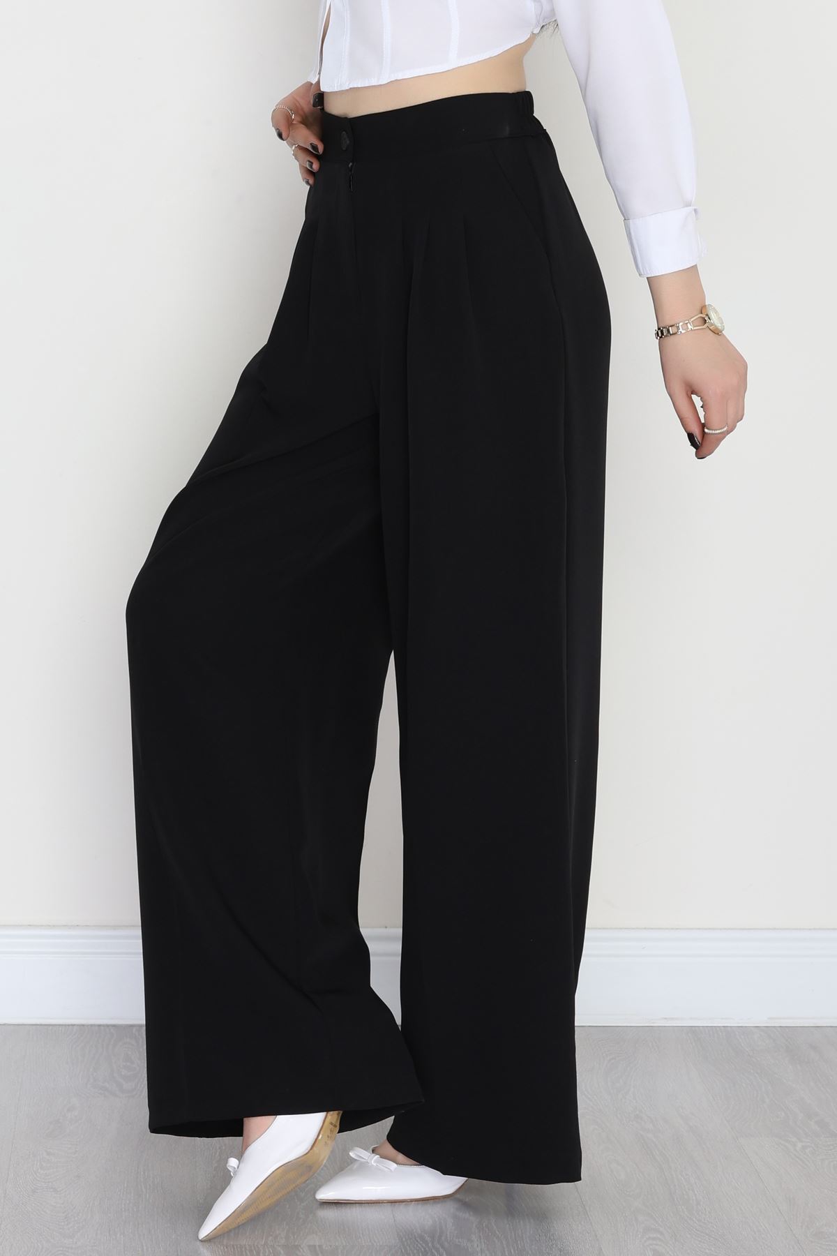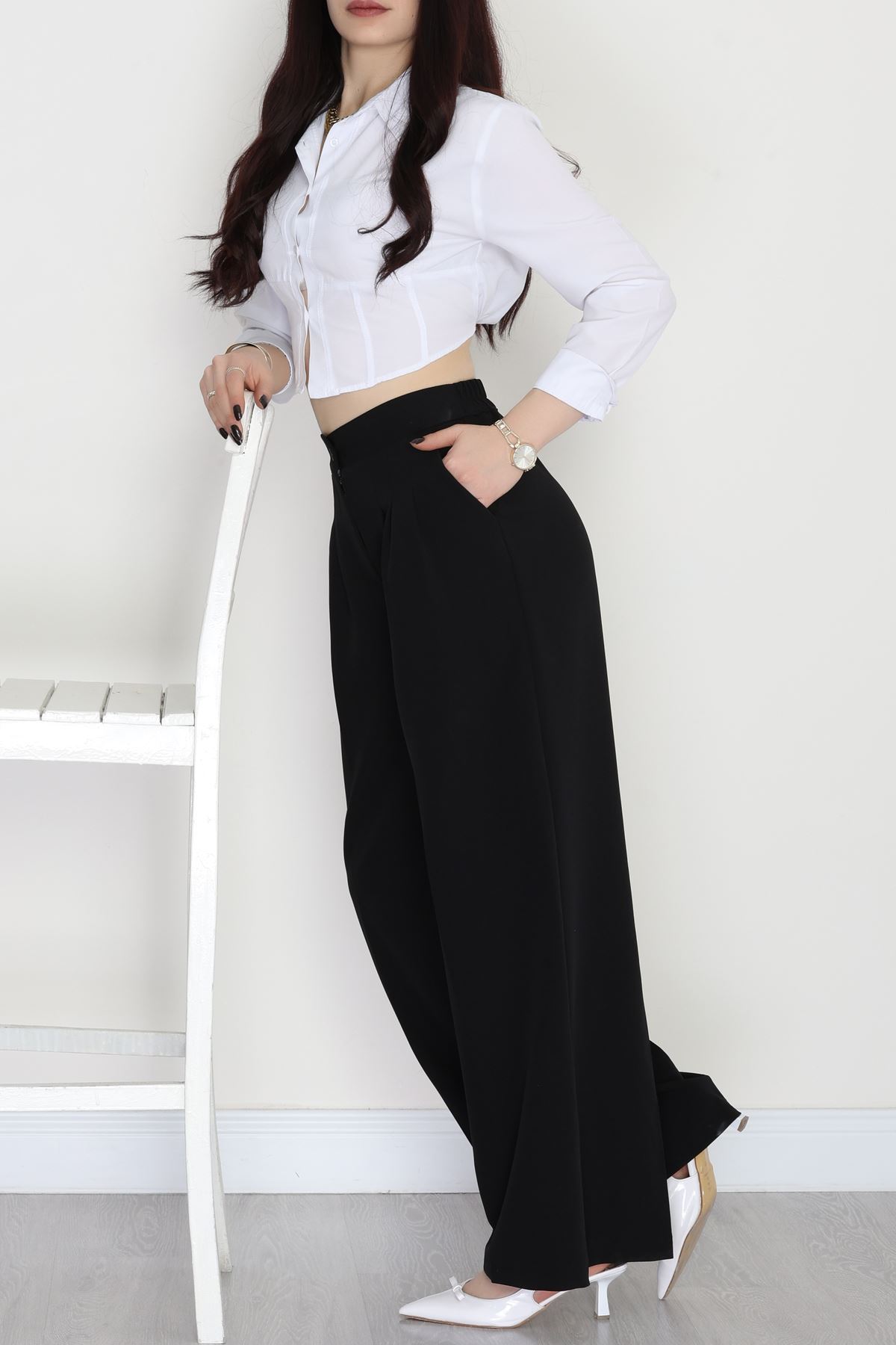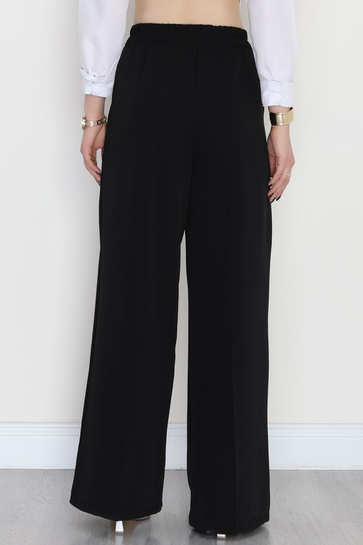Dabıl Kumaş Beli Lastikli Palazzo Pantolon Siyah - 51063.1991.