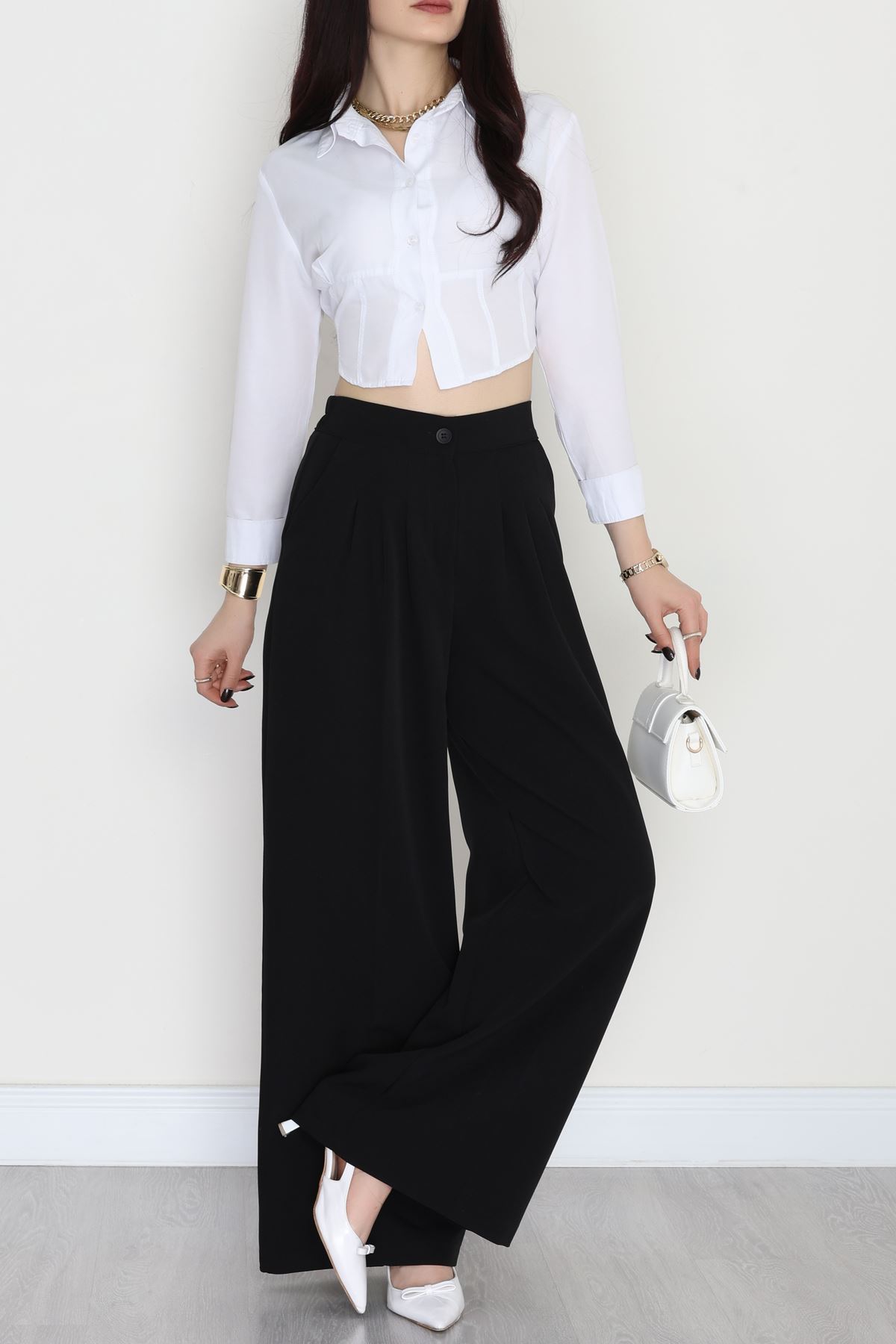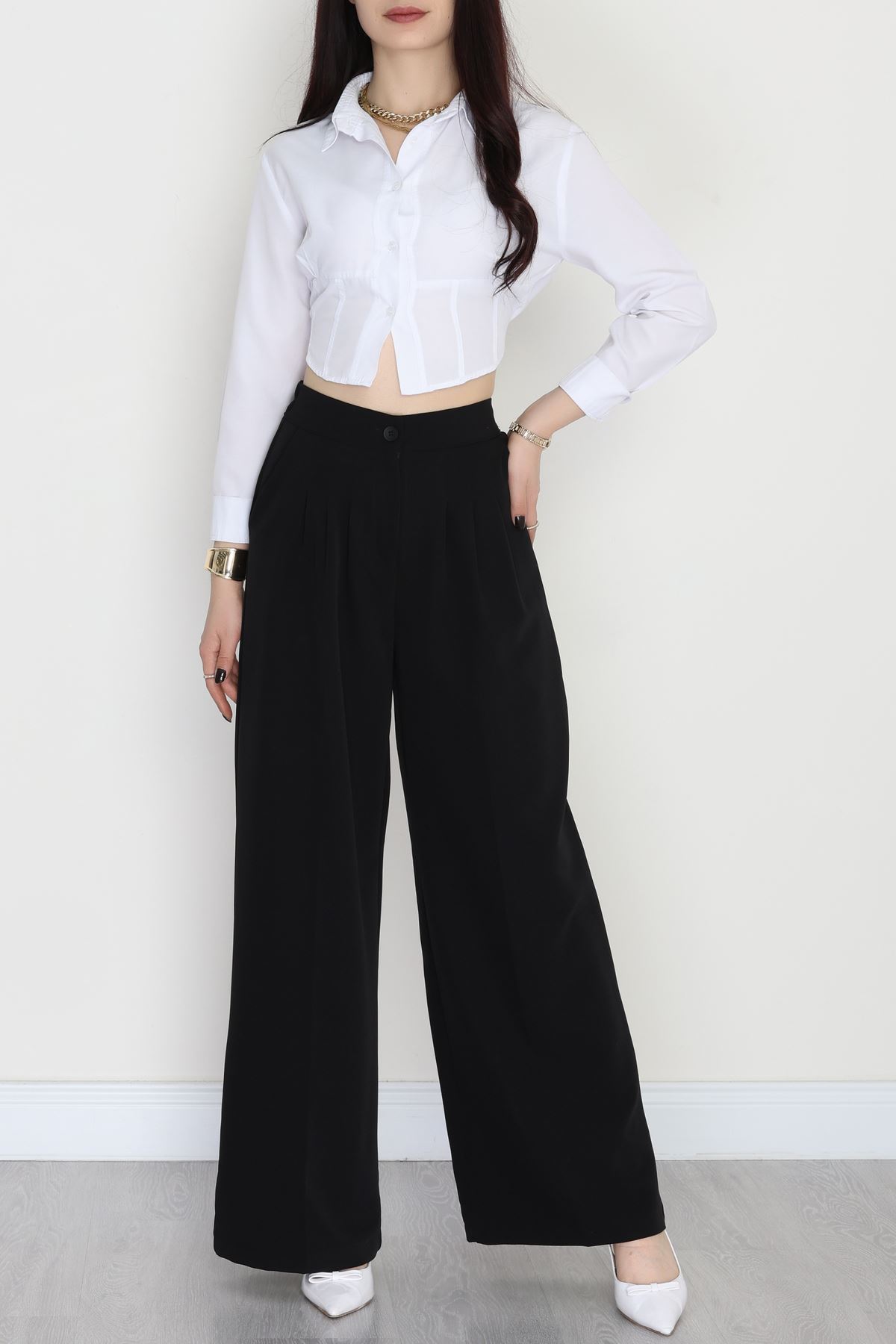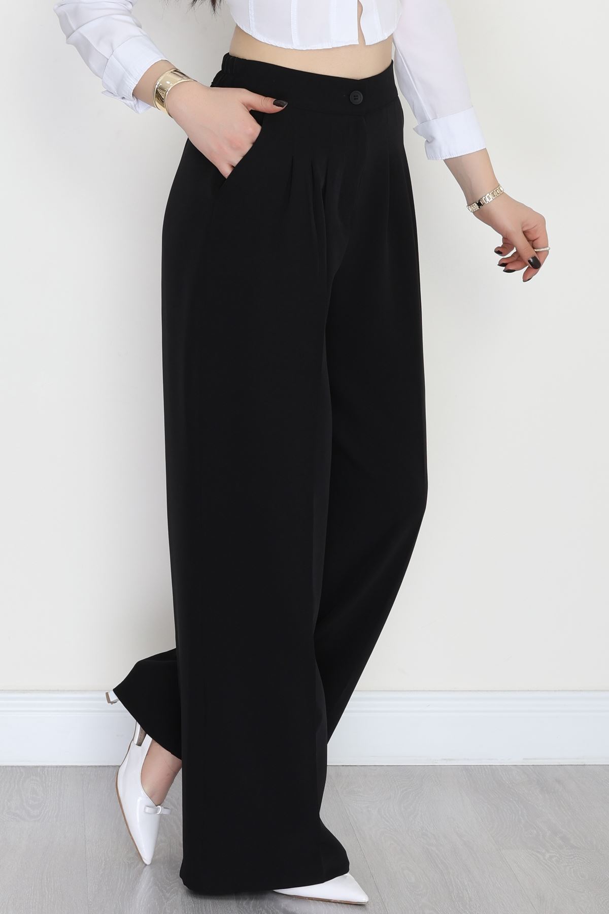 Dabıl Kumaş Beli Lastikli Palazzo Pantolon Siyah - 51063.1991.