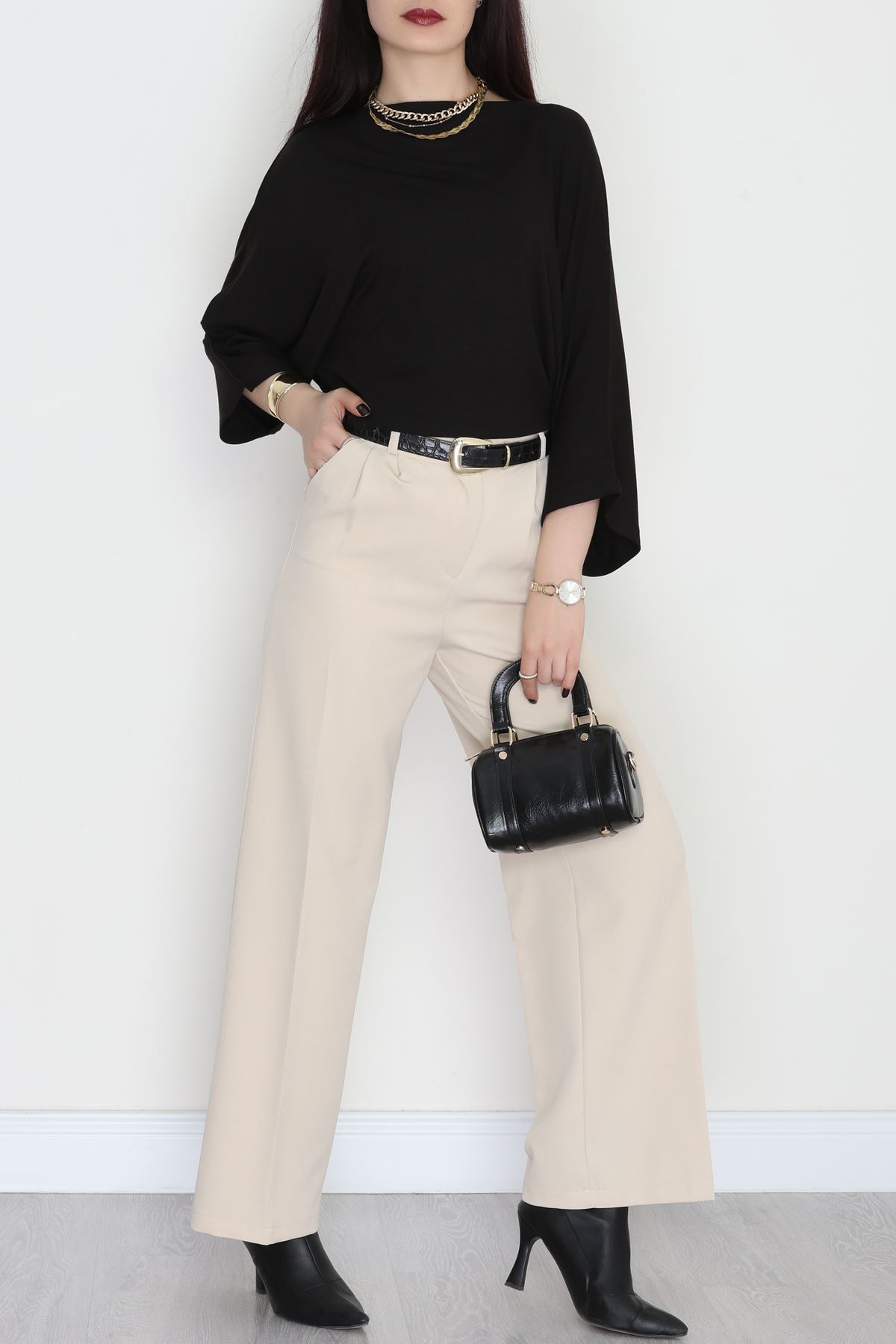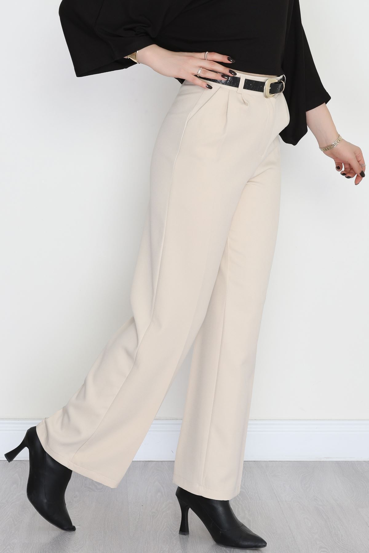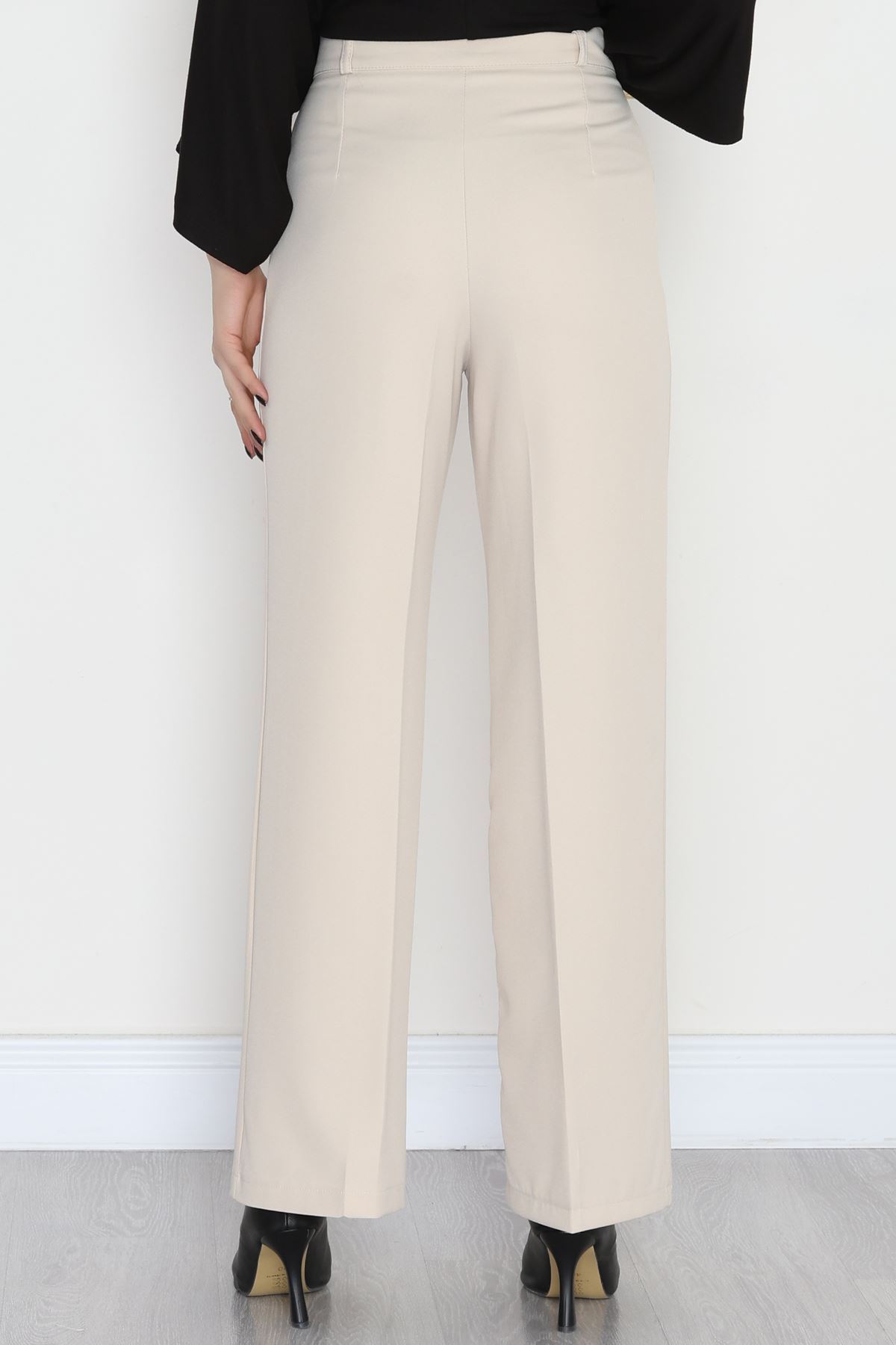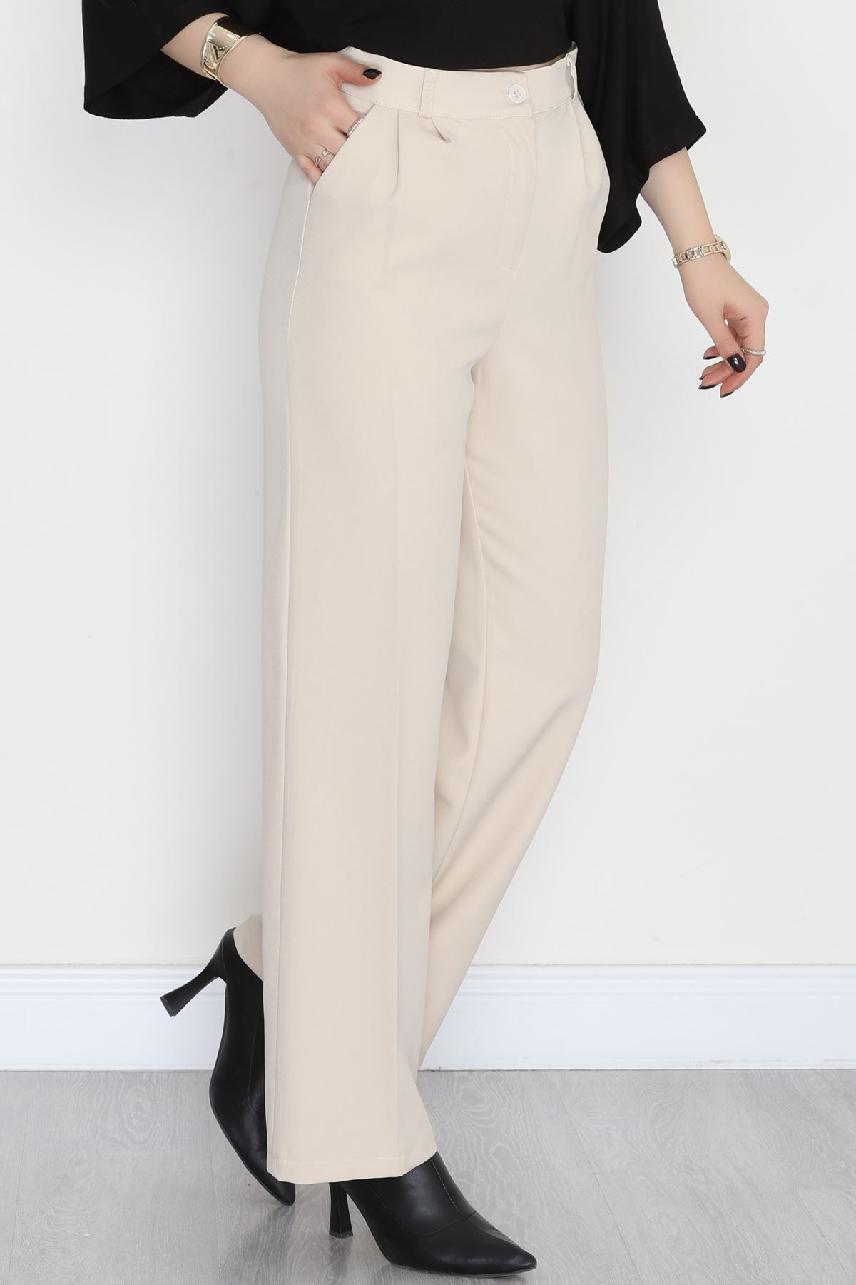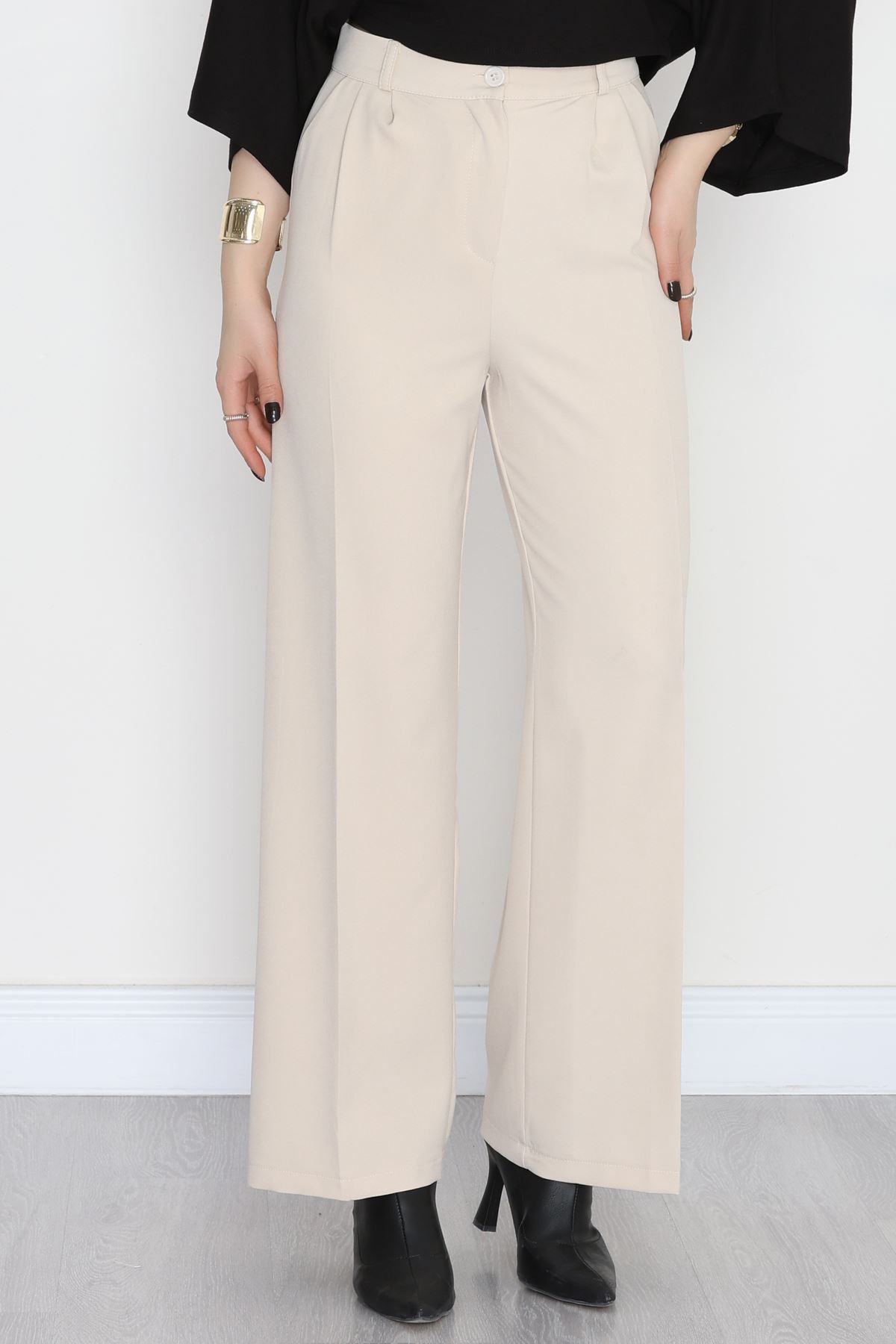 Dabıl Kumaş Pileli Palazzo Pantolon Bej - 51062.1991.