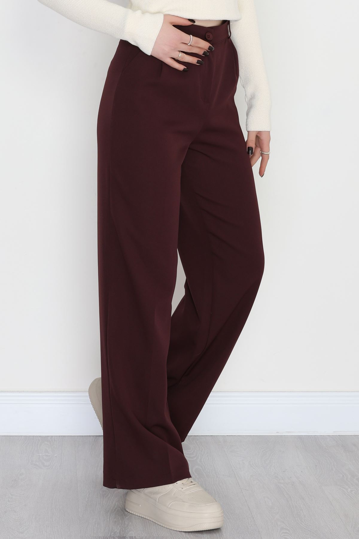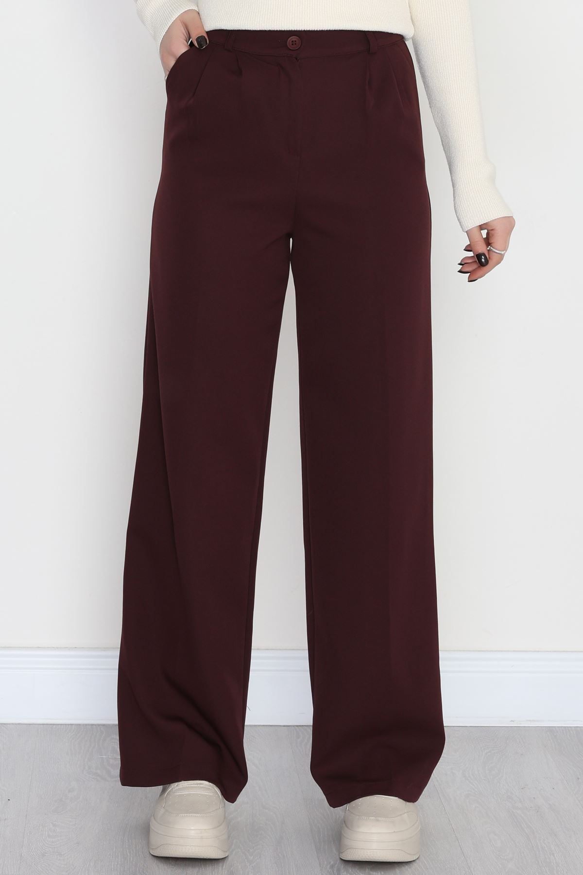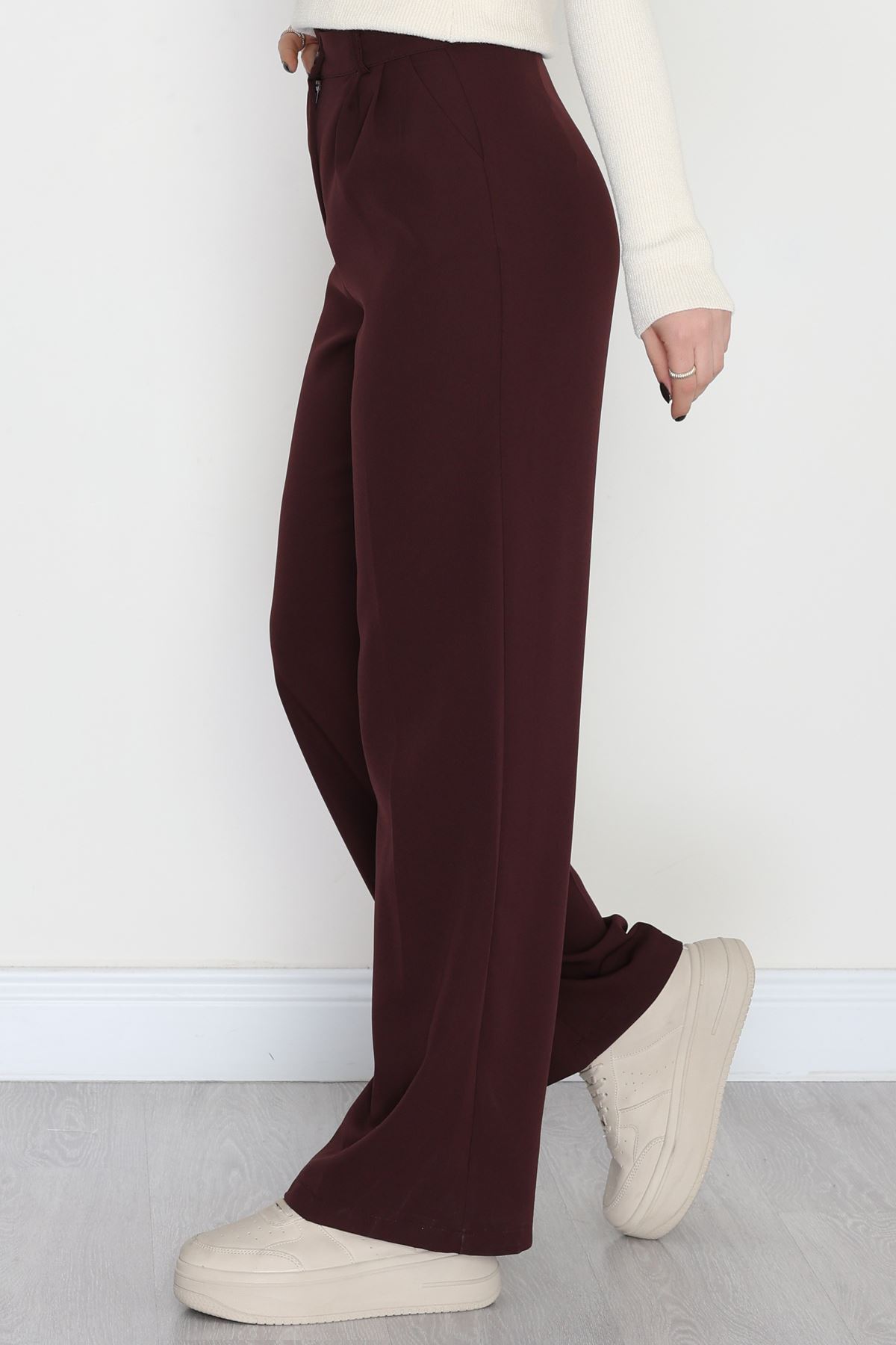 Dabıl Kumaş Pileli Palazzo Pantolon Mürdüm - 51062.1991.