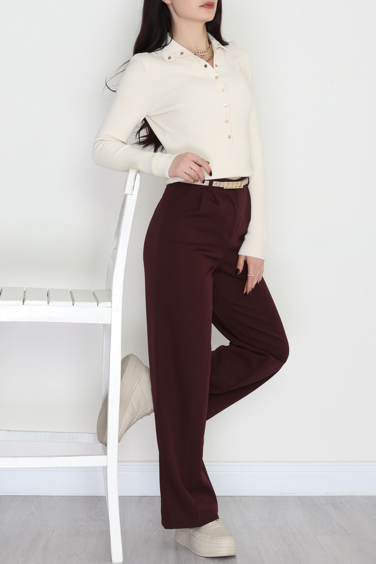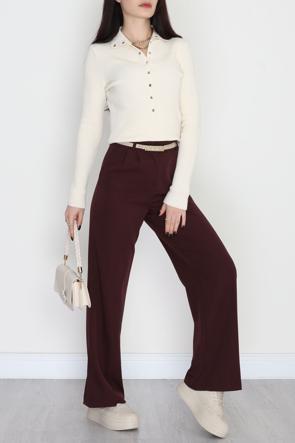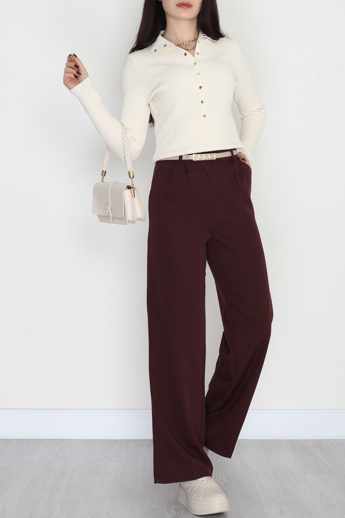 Dabıl Kumaş Pileli Palazzo Pantolon Mürdüm - 51062.1991.