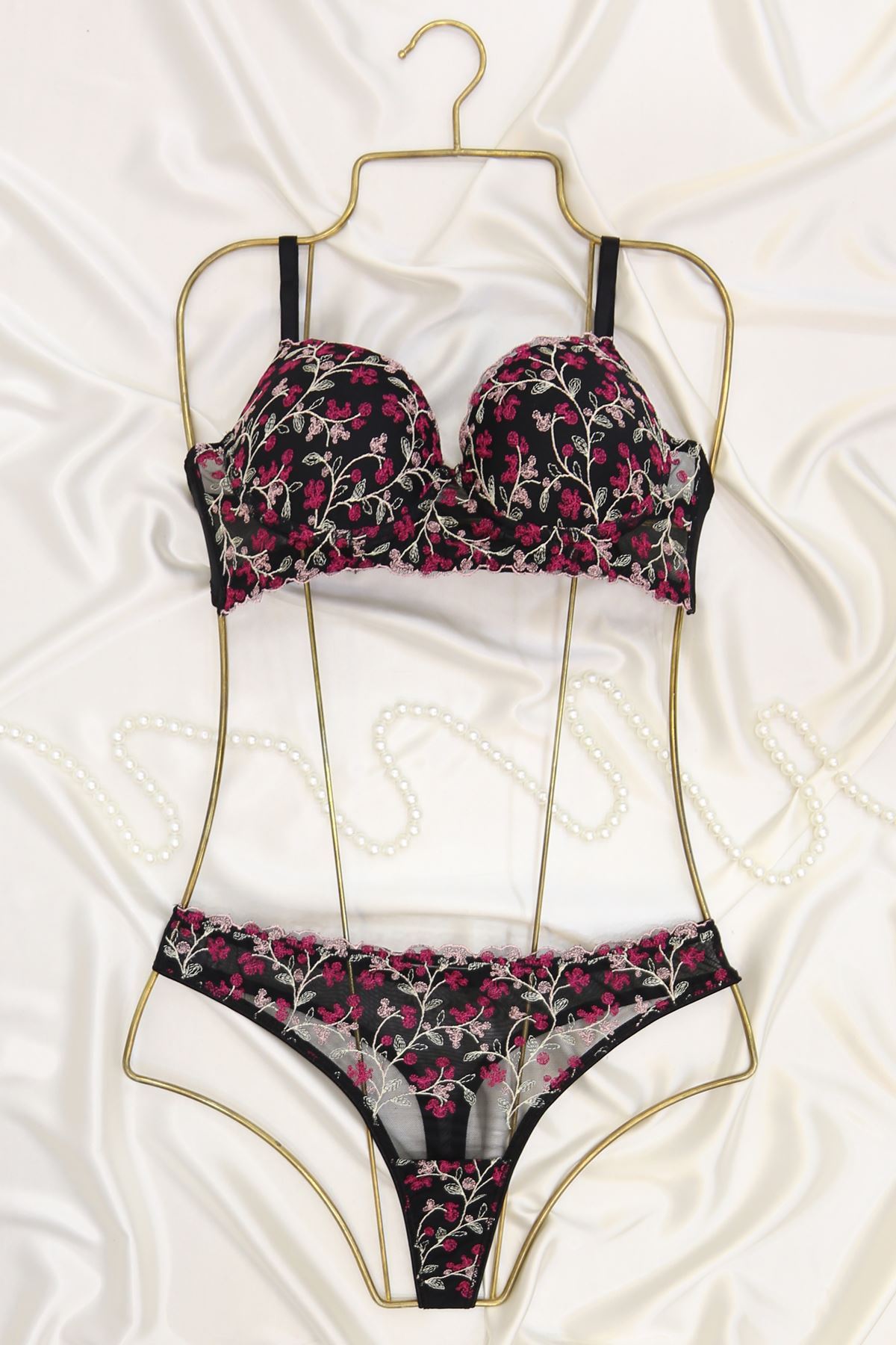 Dal Desen Sütyen Takım Dolgulu Siyah - 2564.1783.