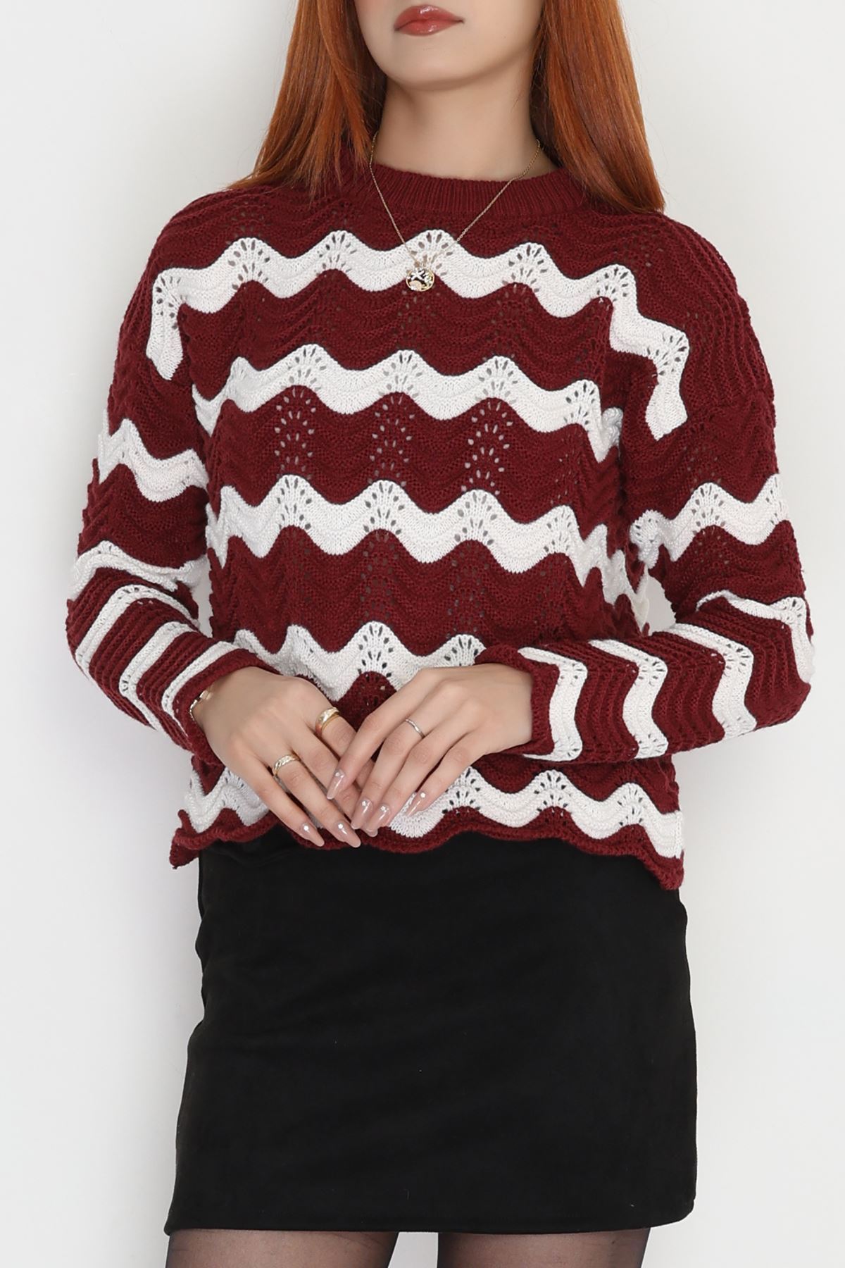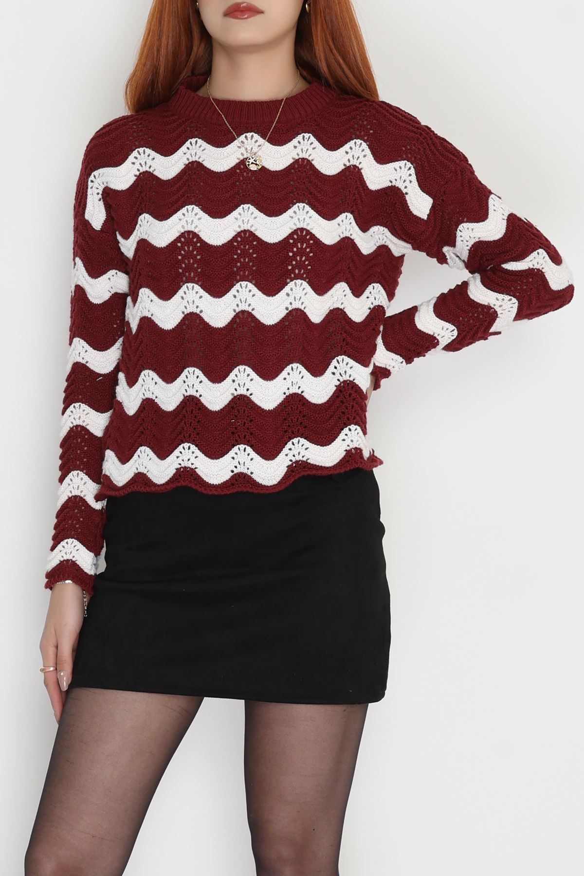 Dalga Çizgili Triko Bordolatte - 1529.1577.