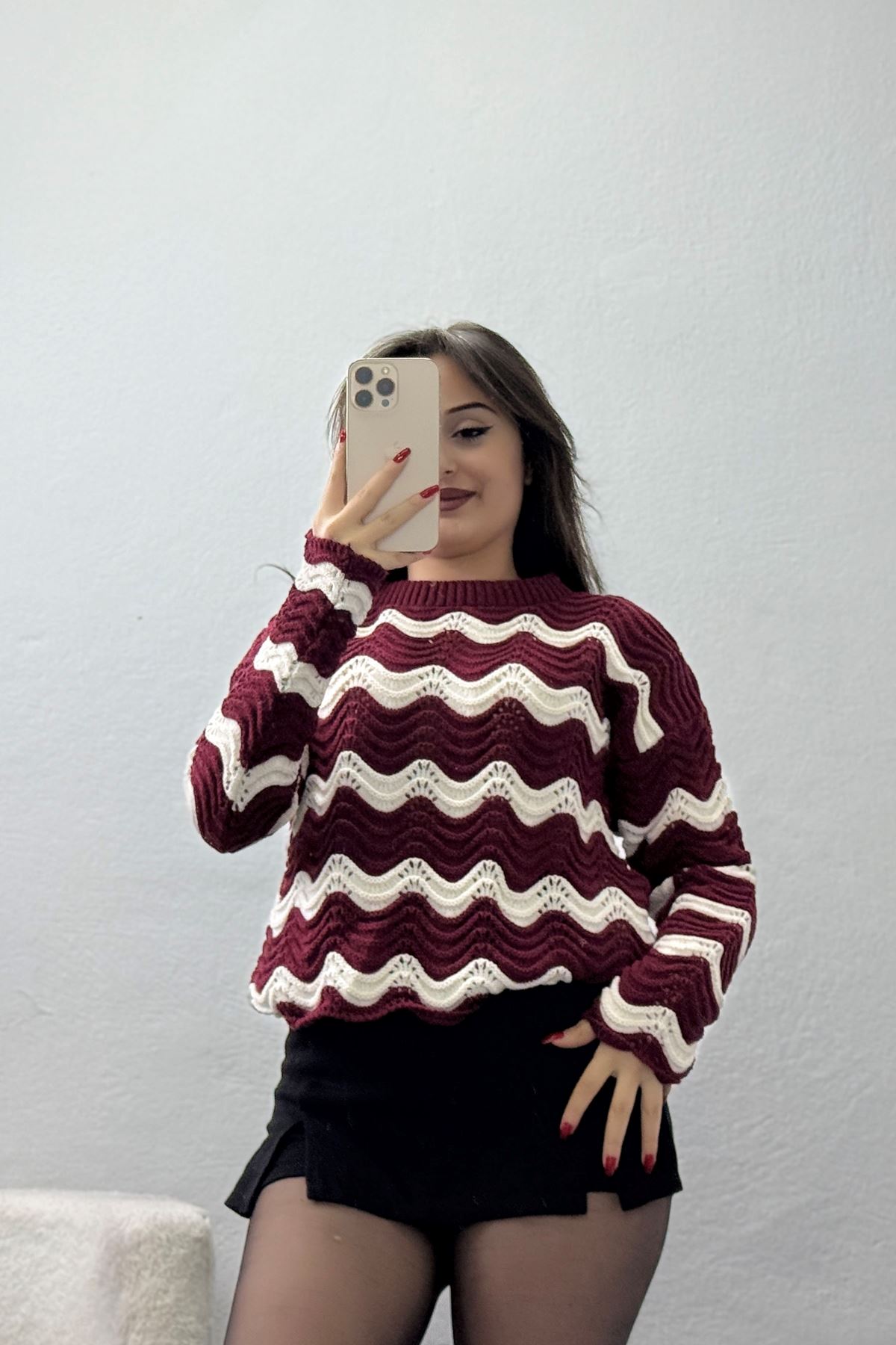 Dalga Çizgili Triko Bordolatte - 1529.1577.
