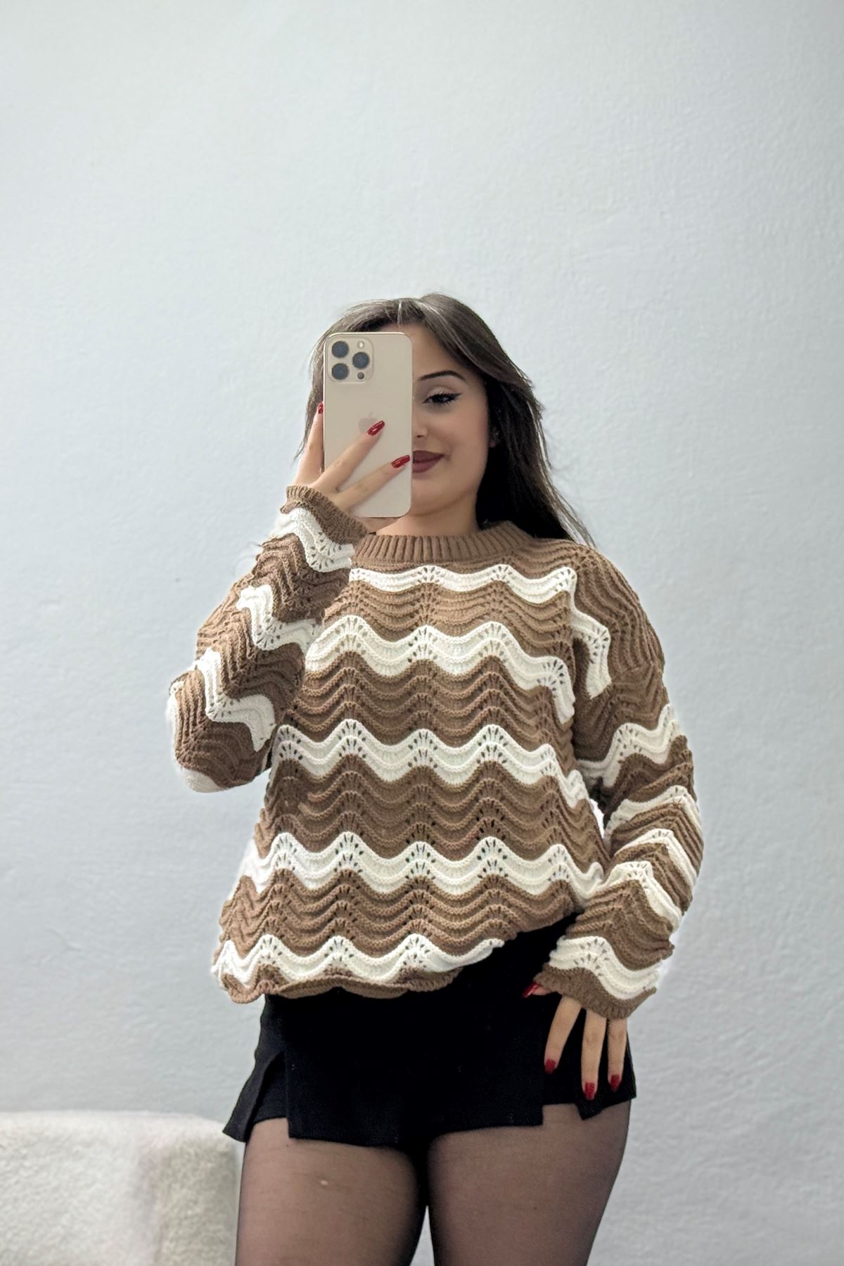 Dalga Çizgili Triko Mochalatte - 1529.1577.