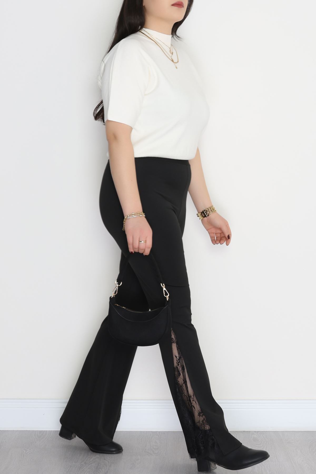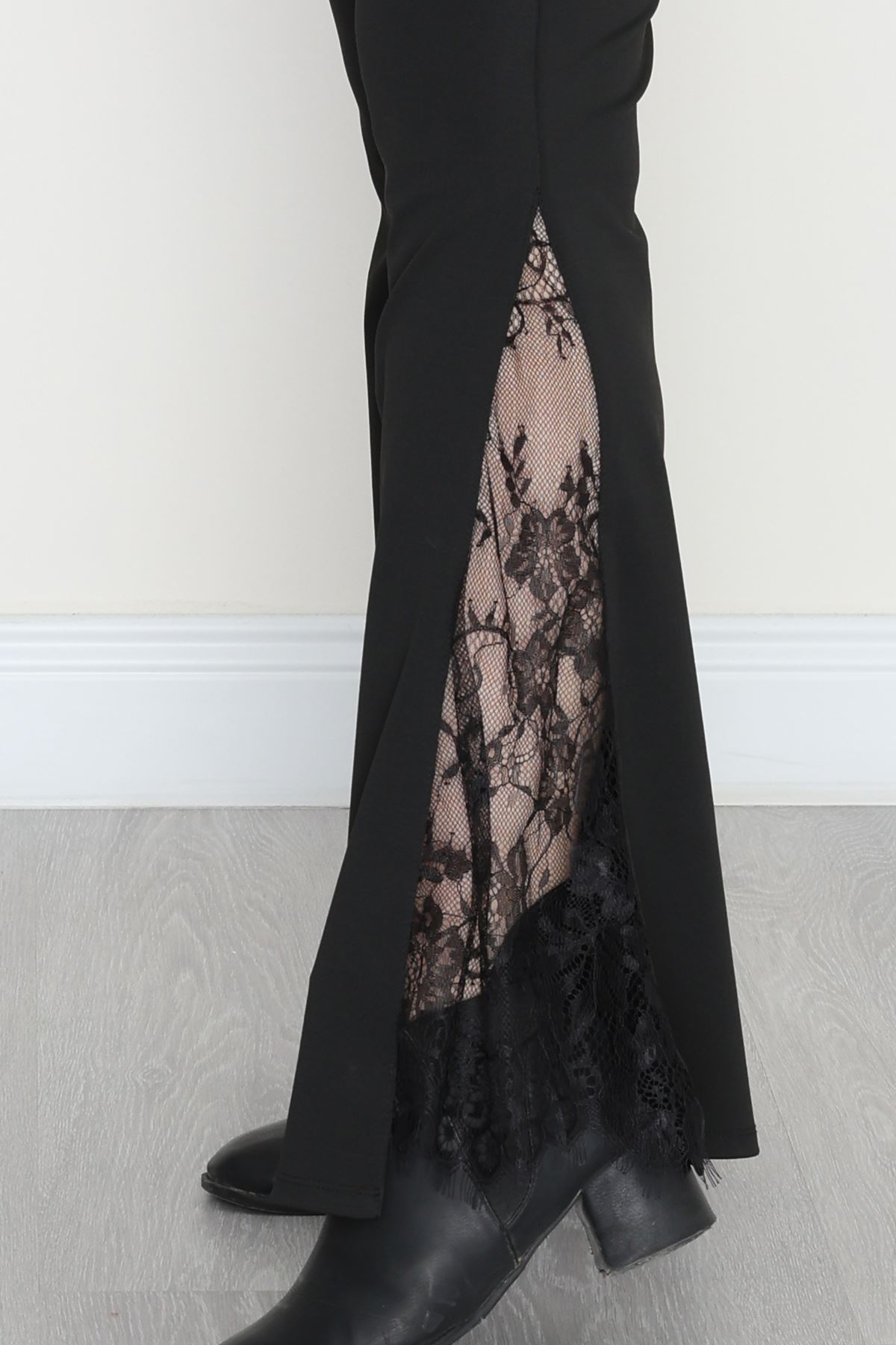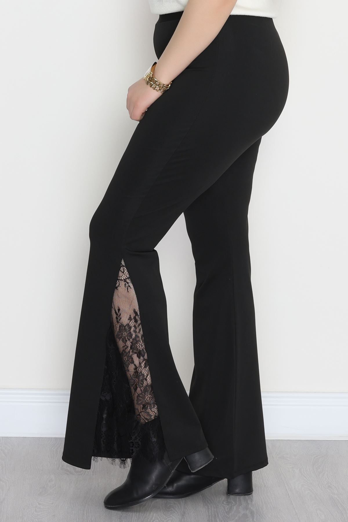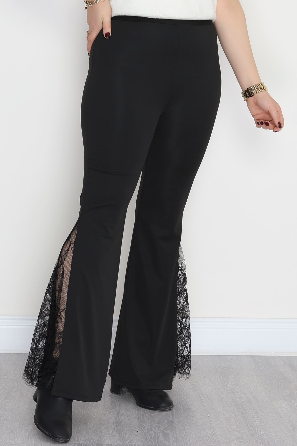Dalgıç Kumaş Büyük Beden Yanları Dantel Tayt Siyah - 50960.1905.